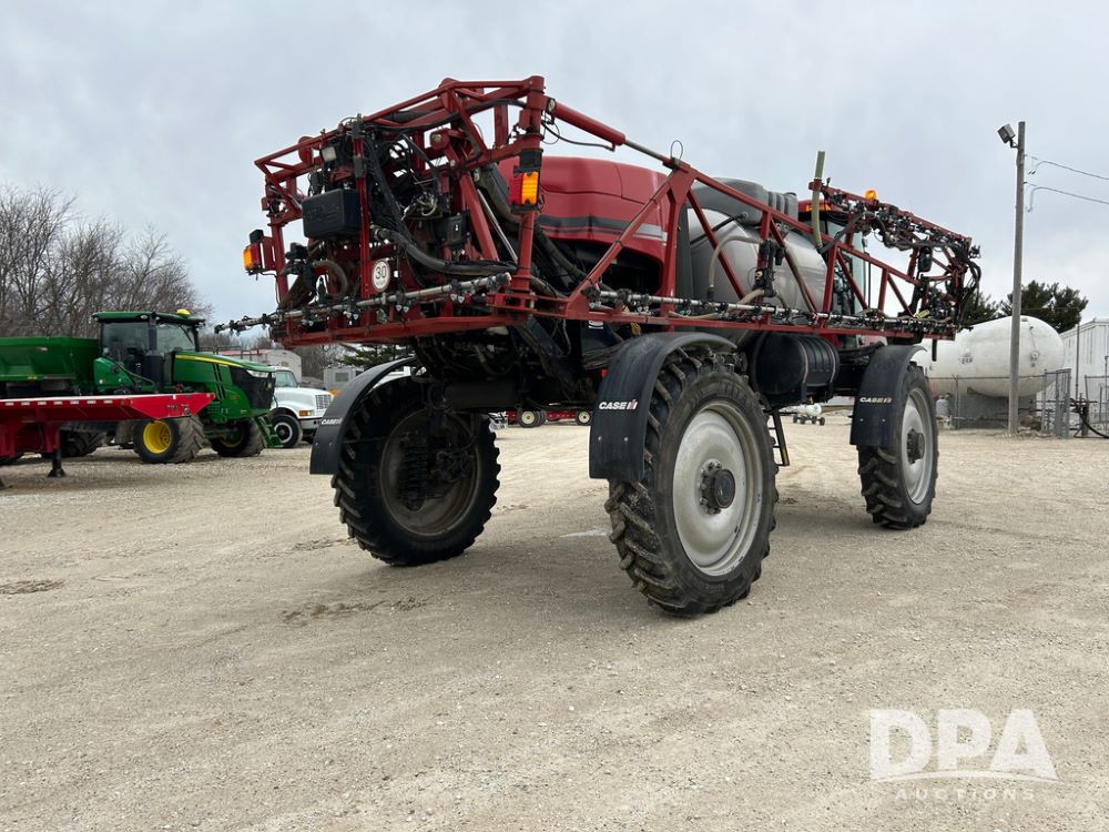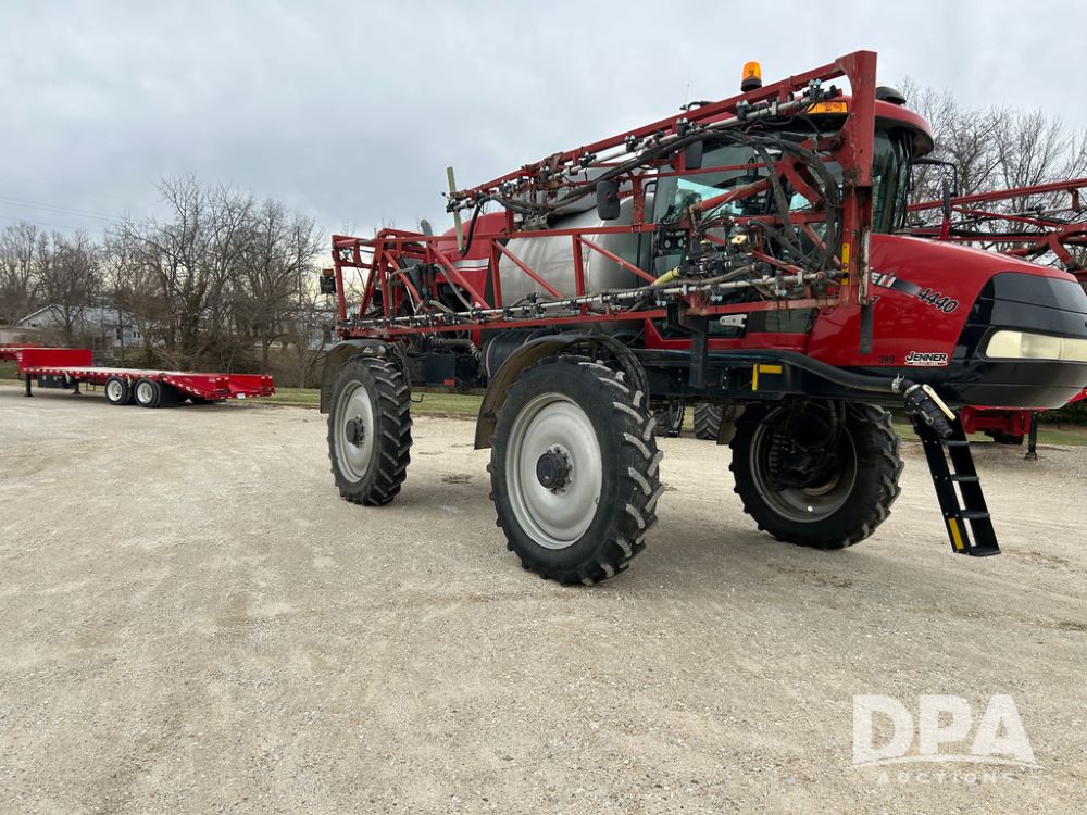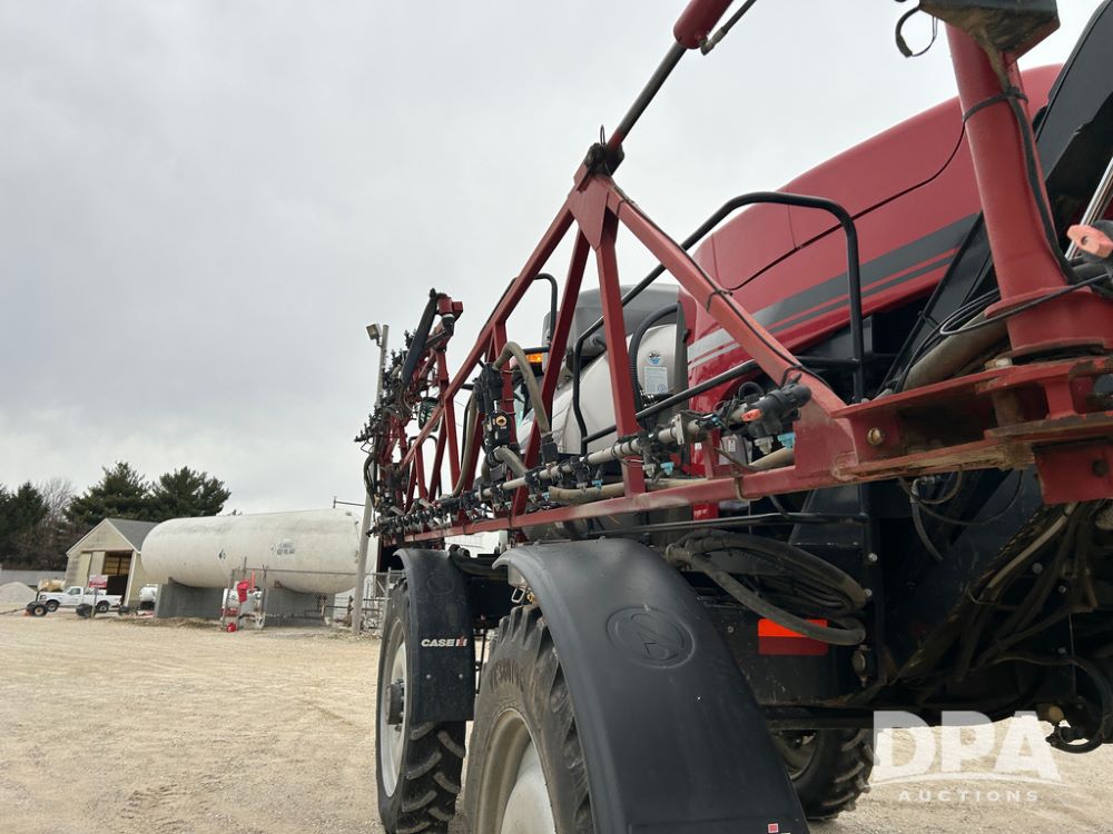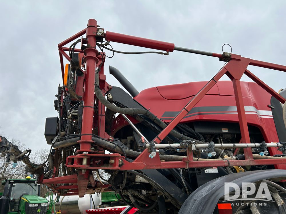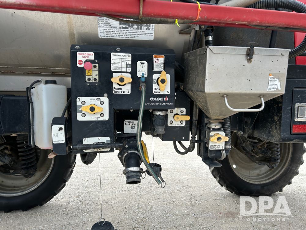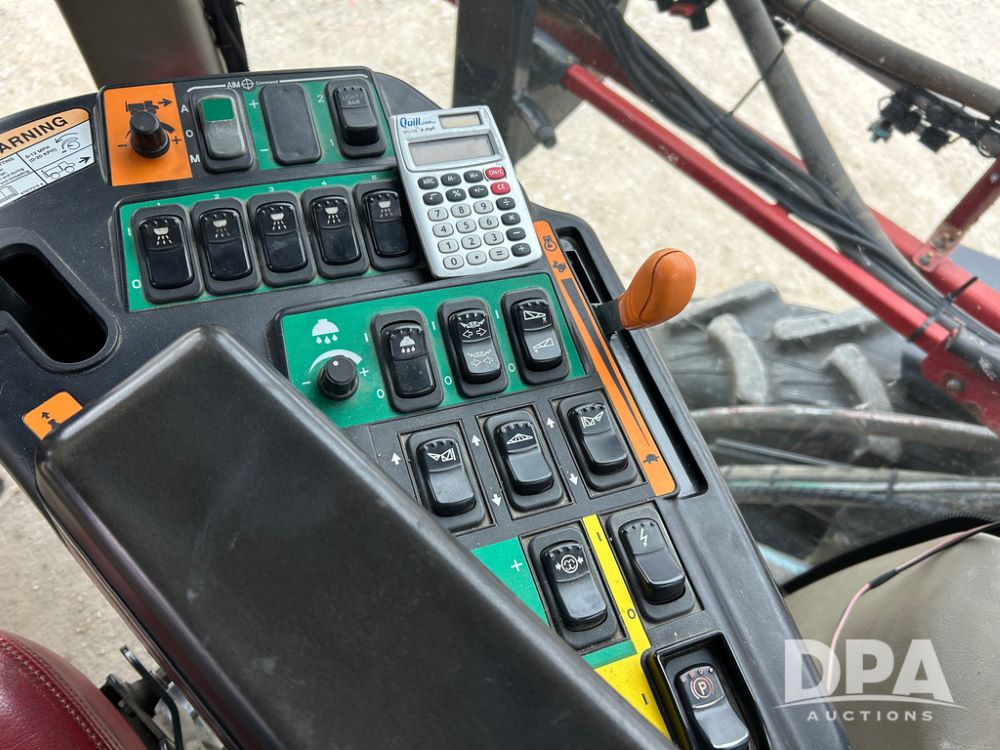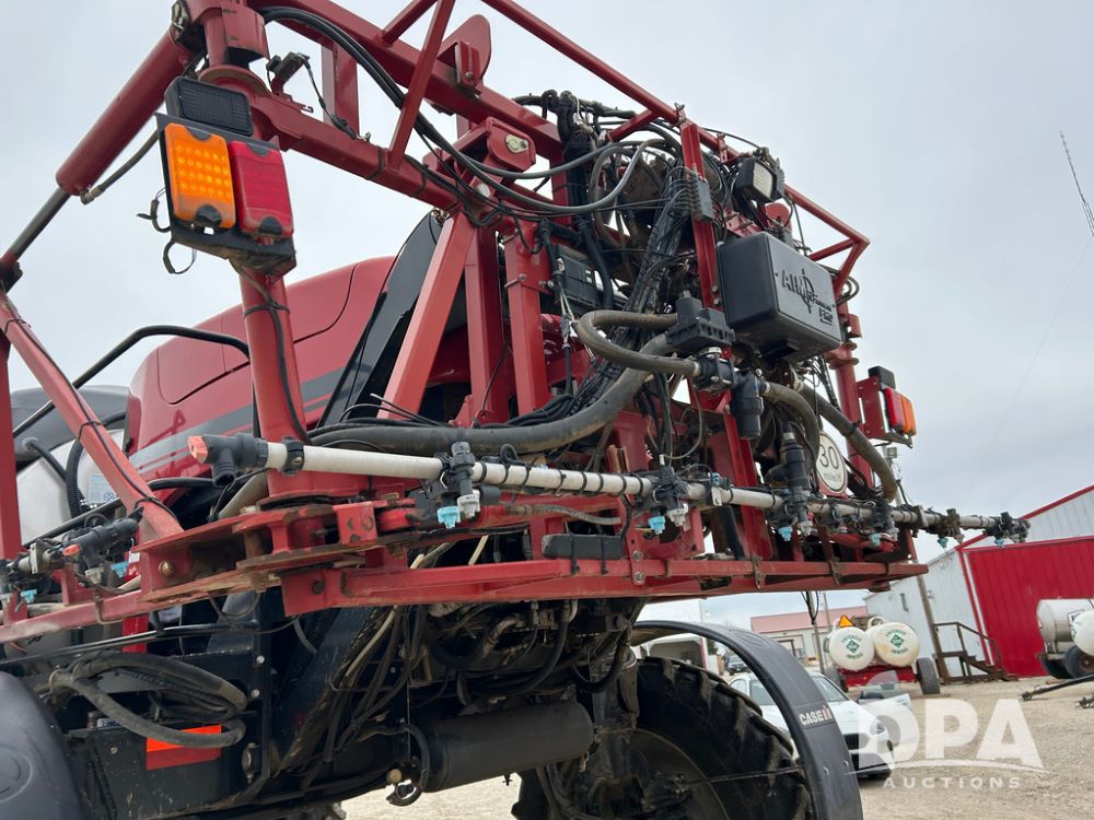 2015 CaseIH Patriot 4440 Sprayer (CP1444, Unit 399), diesel engine, hydrostatic transmission, air conditioning, heat, Am/Fm CD radio, leather seat, buddy seat, beacon light, 1200 gallon stainless steel liquid system, 90' boom, foam marker, poly foam marker tank, top poly rinse tank, stainless steel chemical inductor, front fill, Maxam - BKT - Titan 380/90R46 tires, fenders, AIM Command Pro, lightbar, NO monitor or globe, shows 4,850 hours.