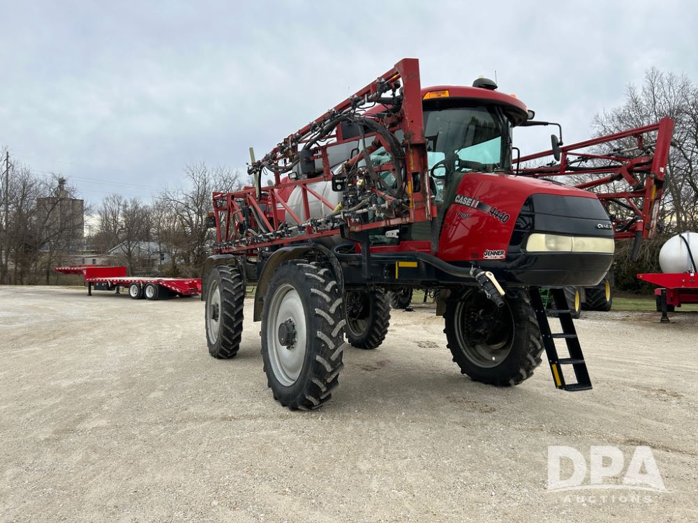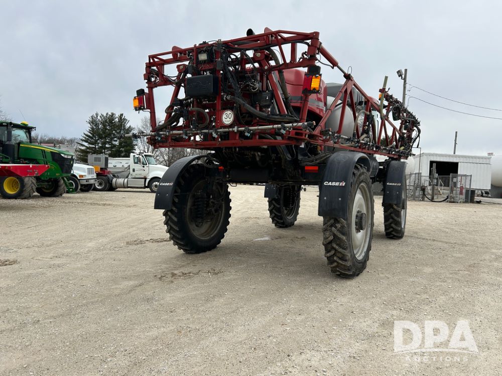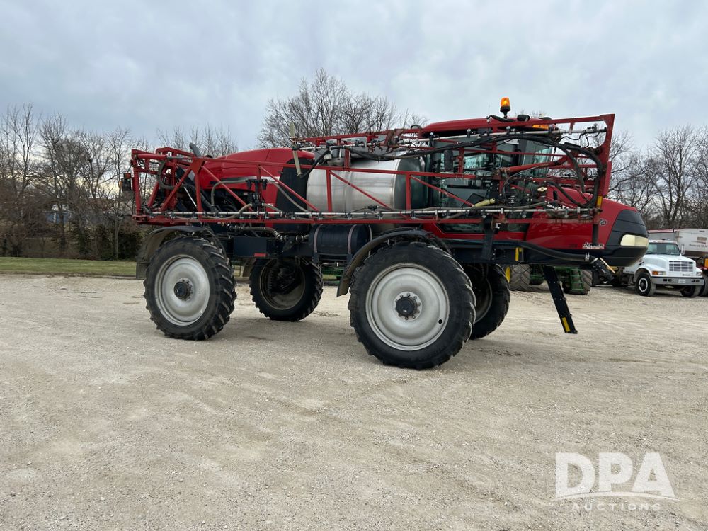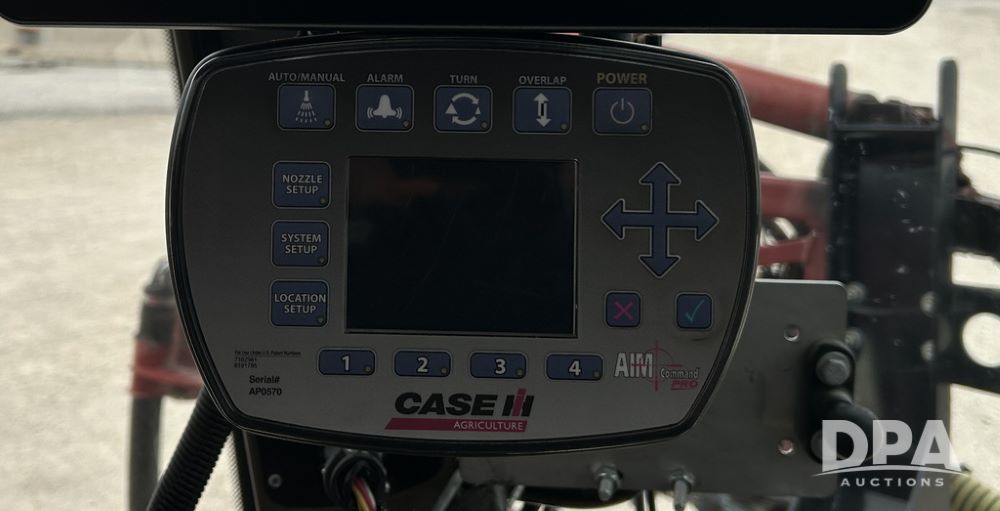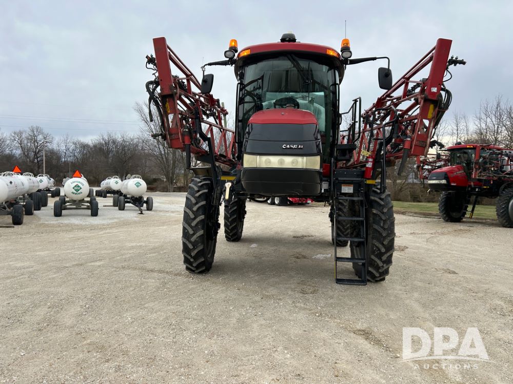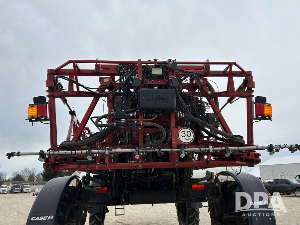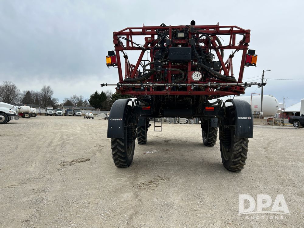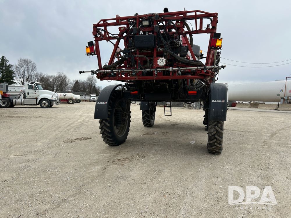 2015 CaseIH Patriot 4440 Sprayer (CP1444, Unit 399), diesel engine, hydrostatic transmission, air conditioning, heat, Am/Fm CD radio, leather seat, buddy seat, beacon light, 1200 gallon stainless steel liquid system, 90' boom, foam marker, poly foam marker tank, top poly rinse tank, stainless steel chemical inductor, front fill, Maxam - BKT - Titan 380/90R46 tires, fenders, AIM Command Pro, lightbar, NO monitor or globe, shows 4,850 hours.