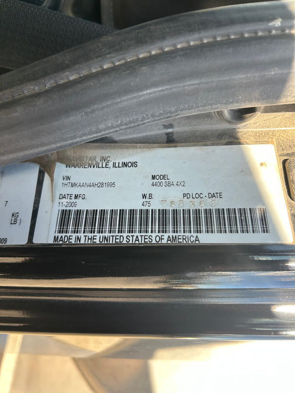 2010 IHC DuraStar 4400 Petroleum Truck (CP1456, Unit 324), Maxxforce DT diesel engine, Eaton Synchro 6 speed transmission, air conditioning, heat, Am/Fm CD radio, single axle, 2010 Amthor 2500 gallon 4 compartment (800-700-600-400) aluminum petroleum tank (S/N 10T12), 2 - LectroCoutnt LCR-II meters, 2 - electric hose reels, 2 - cargo boxes, 11R22.5 tires, aluminum rims, shows 171,339 miles.