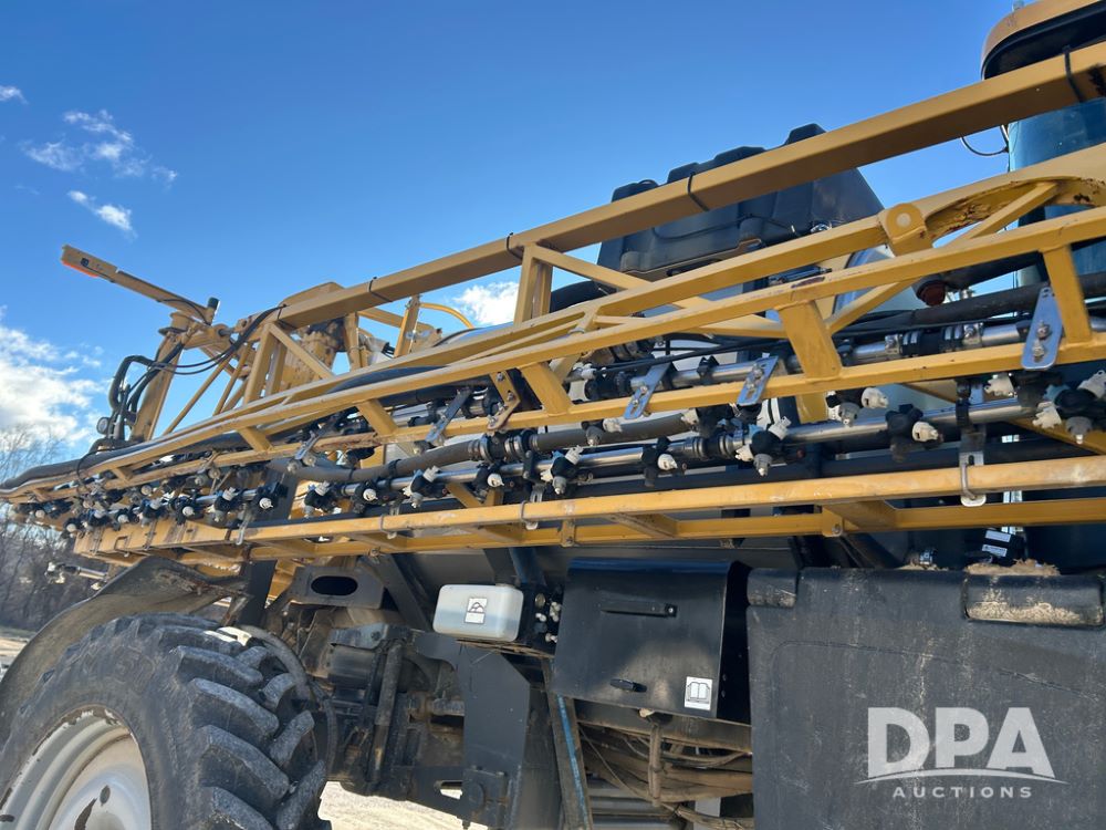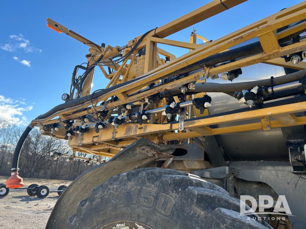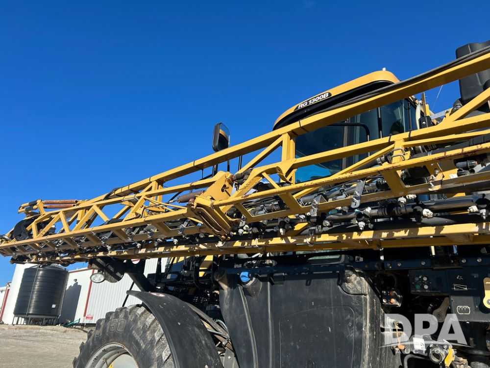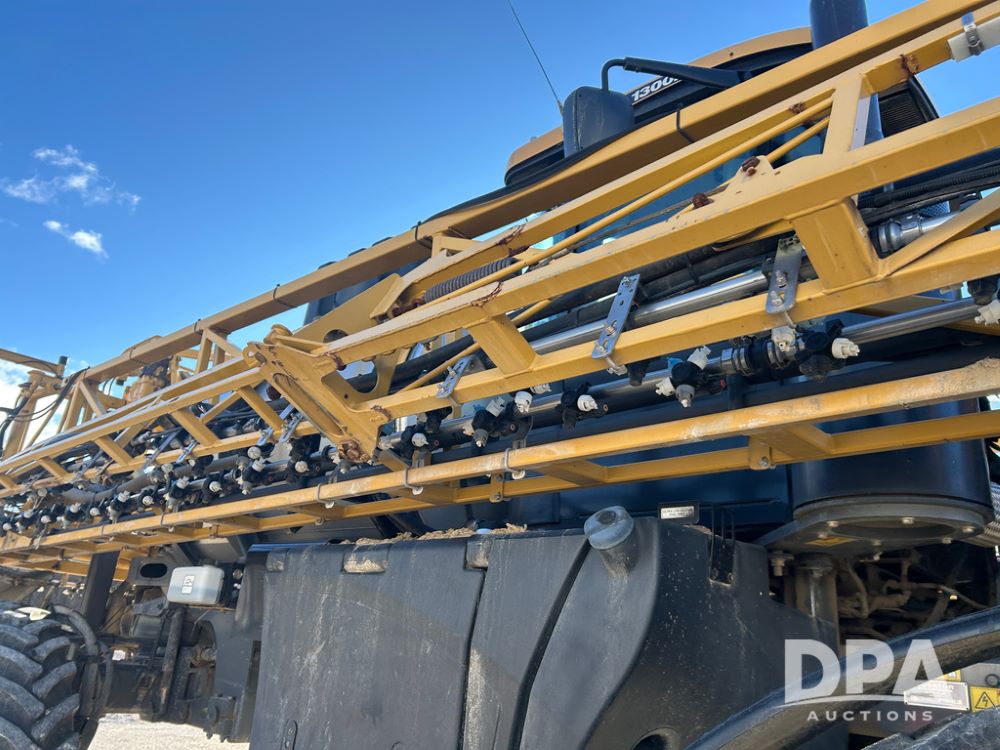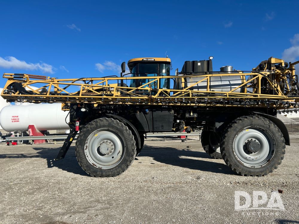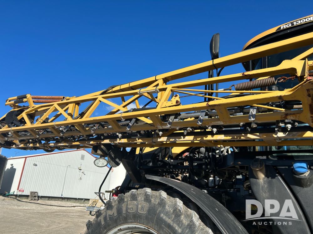 2015 RoGator 1300B Sprayer (CP1458, Unit 391), AGCO diesel engine, hydrostatic transmission, air conditioning, heat, Am/Fm CD radio, leather seat, buddy seat, beacon light, 1300 gallon stainless steel liquid system, 120' boom, top poly rinse tank, front fill, Trelleborg TM150 & Michelin VF380/90R46 tires, fenders, lightbar, slingshot field hub, Raven Viper Pro monitor, shows 4,439 hours.