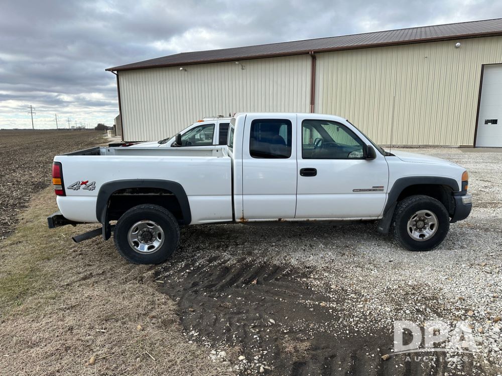 2004 GMC 2500HD Extended Cab Pickup (CP1469, Unit 185), 4x4, Duramax 6.6L Turbo diesel engine, automatic transmission, air conditioning, heat, Am/Fm radio, cruise control, power windows & locks, rear hitch, LT265/75R16 tires, shows 238,062 miles.