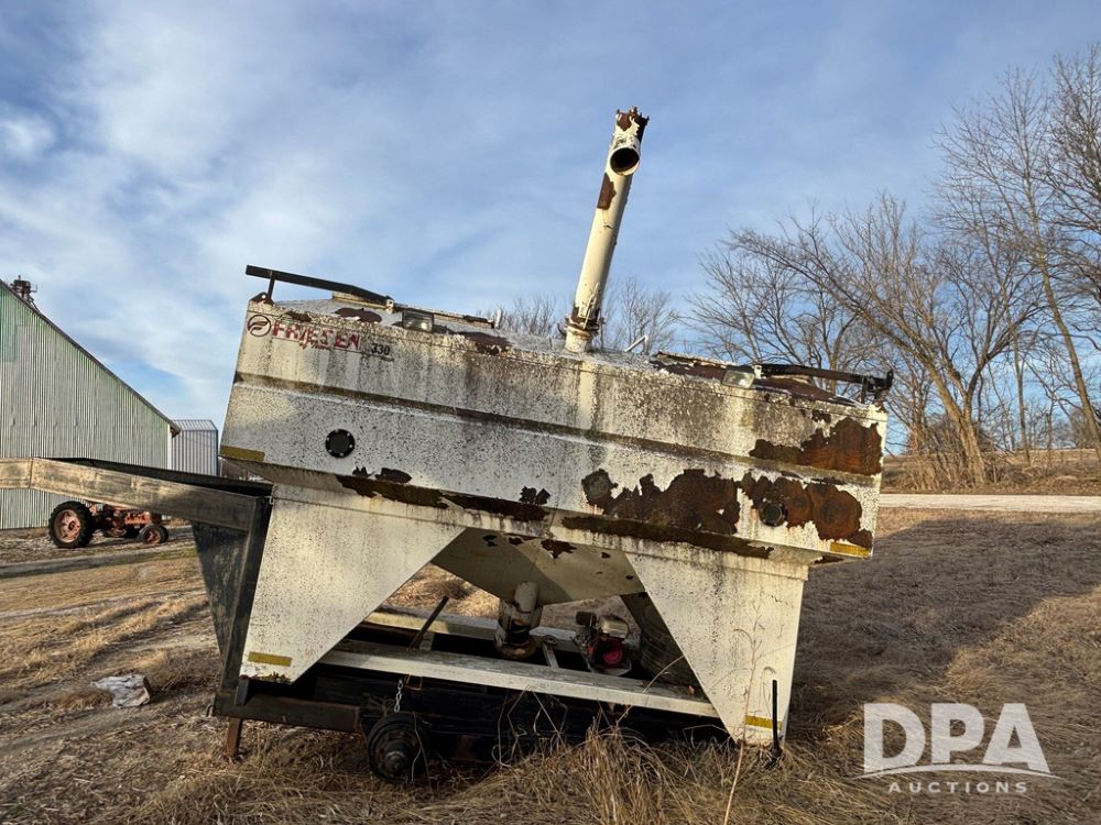 Friesen 330 Bulk Seed Tender (GP12498), Friesen 330 bulk seed tender, gas engine, ladder, gooseneck tandem axle gear, no tires.