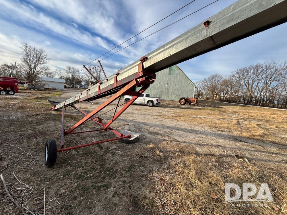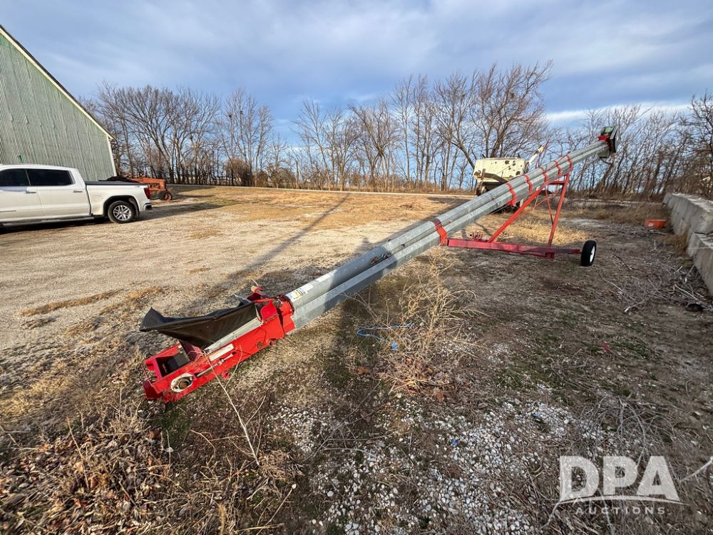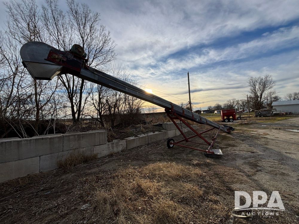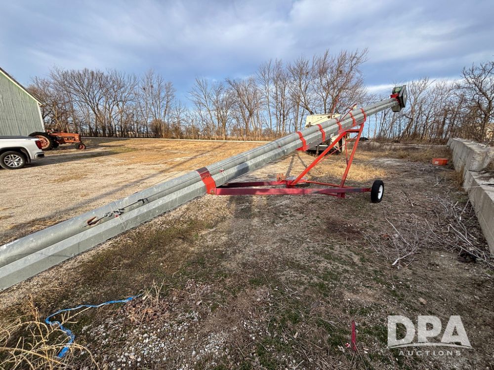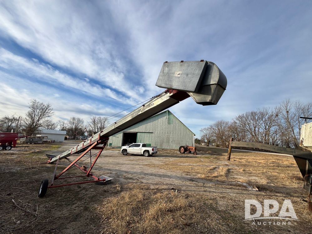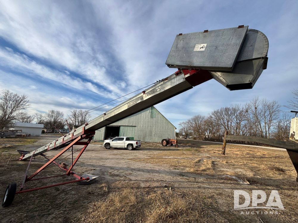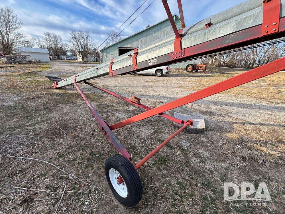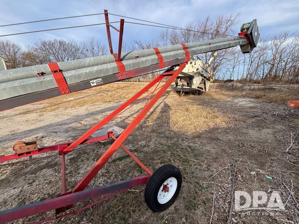 KSI Seed Conveyor (GP12499), KSI model 1208-45 seed conveyor, Leeson electric motor, portable, ST175/80R13 tires.