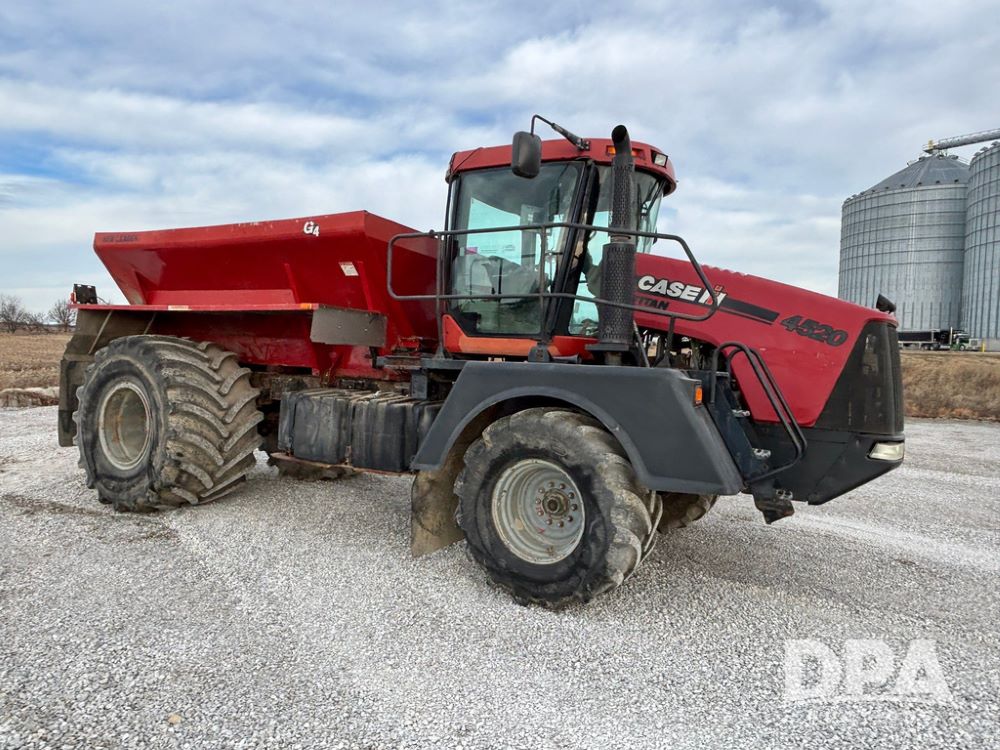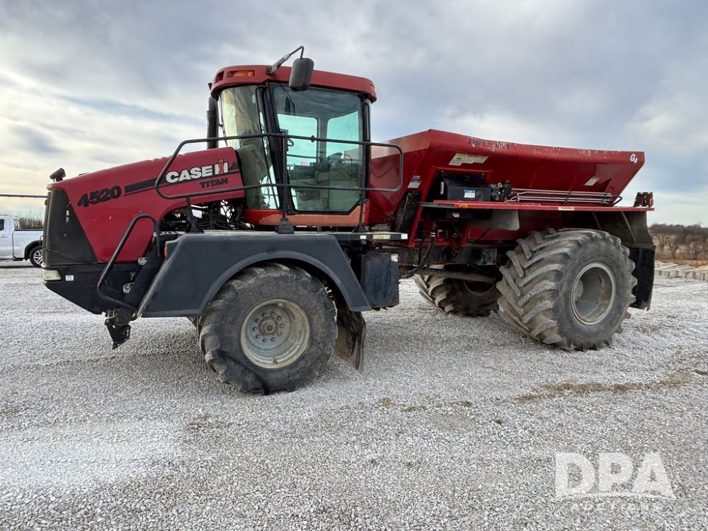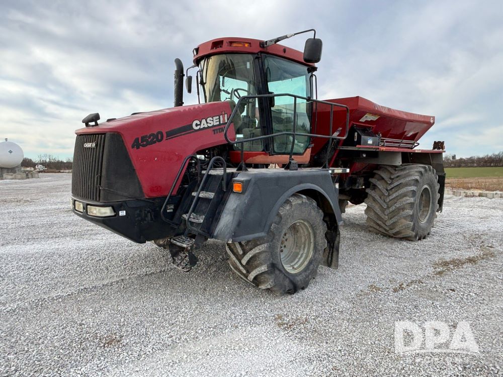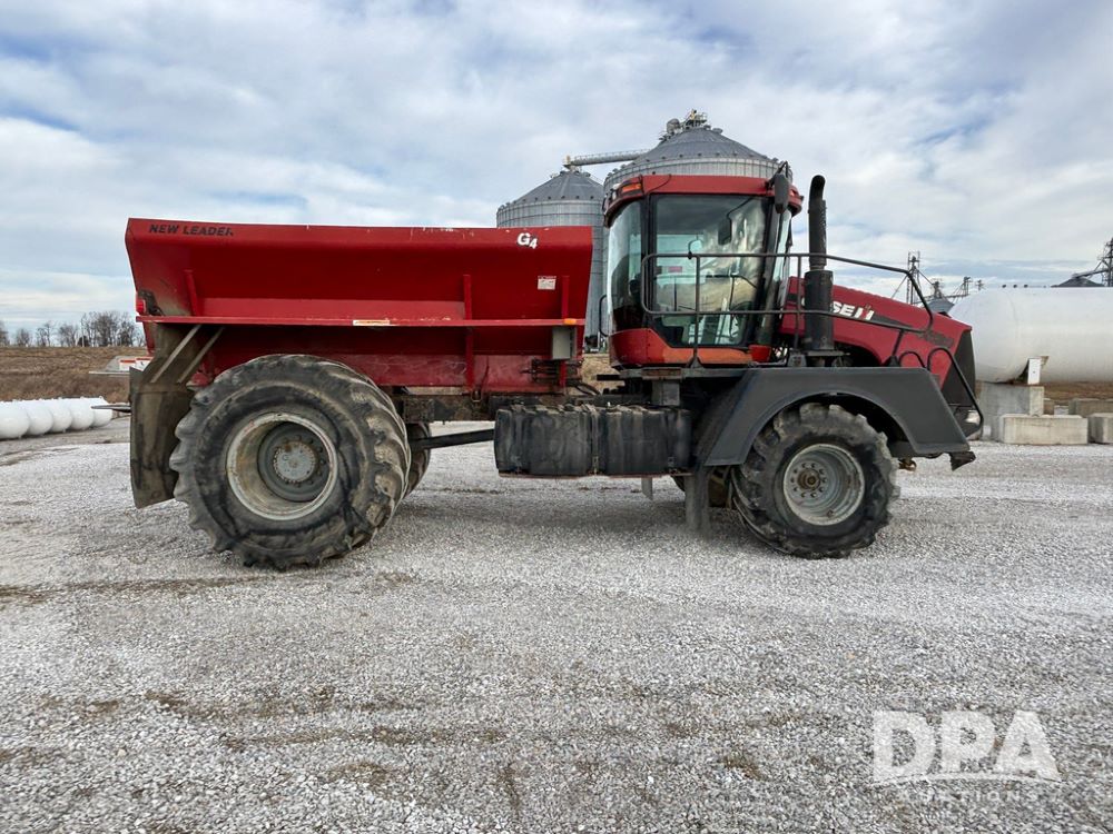 2011 CaseIH Titan 4520 Dry Floater (GP12501, Unit 637), diesel engine, Allison automatic transmission, air conditioning, heat, Am/Fm CD radio, cruise control, buddy seat, New Leader L3020 G4 - 13' stainless steel dry spreader box (S/N 129141), twin spinner, all hydraulic, Alliance Agriflex 377 VF750/50R26 front tires, Good Year VA1050/50R32 rear tires, Cab camera, lightbar, Raven Viper 4 monitor, shows 4,957 hours.