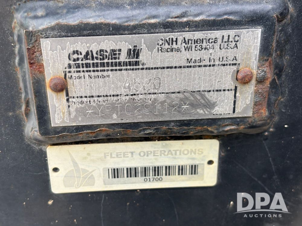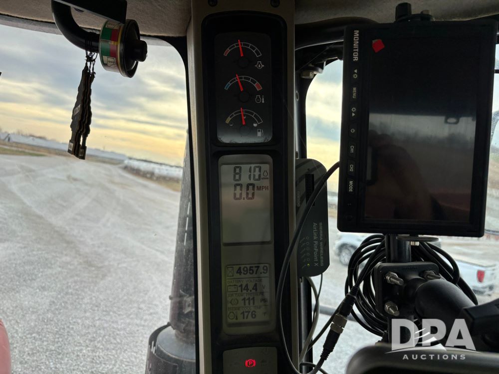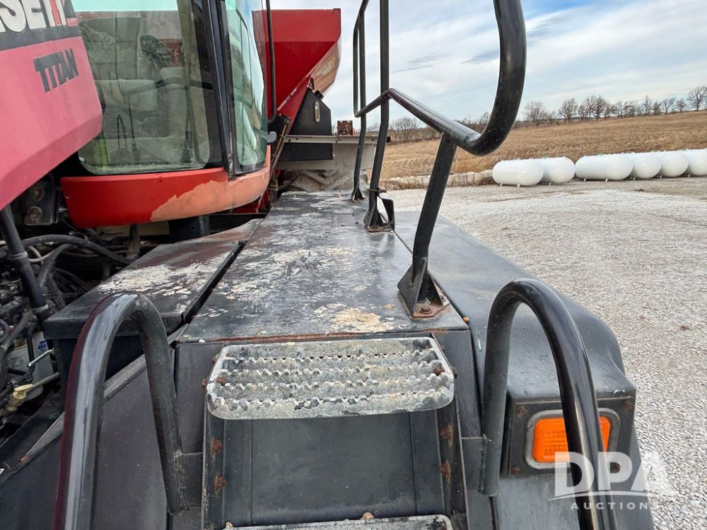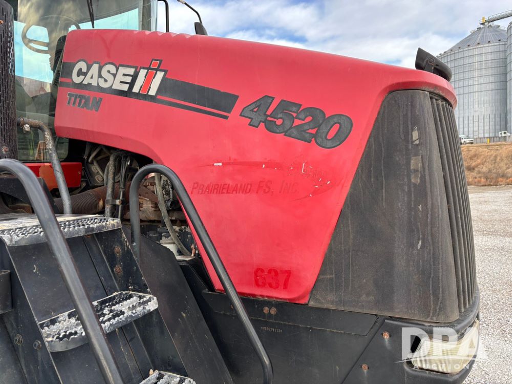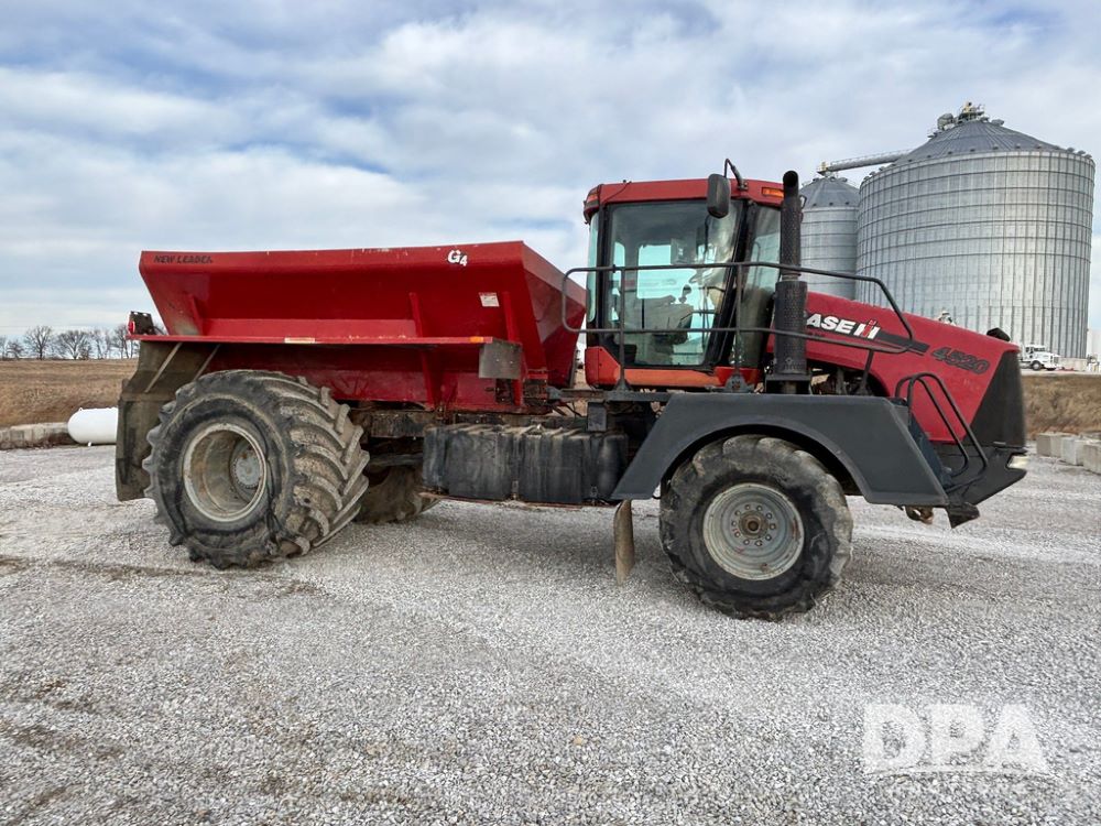 2011 CaseIH Titan 4520 Dry Floater (GP12501, Unit 637), diesel engine, Allison automatic transmission, air conditioning, heat, Am/Fm CD radio, cruise control, buddy seat, New Leader L3020 G4 - 13' stainless steel dry spreader box (S/N 129141), twin spinner, all hydraulic, Alliance Agriflex 377 VF750/50R26 front tires, Good Year VA1050/50R32 rear tires, Cab camera, lightbar, Raven Viper 4 monitor, shows 4,957 hours.