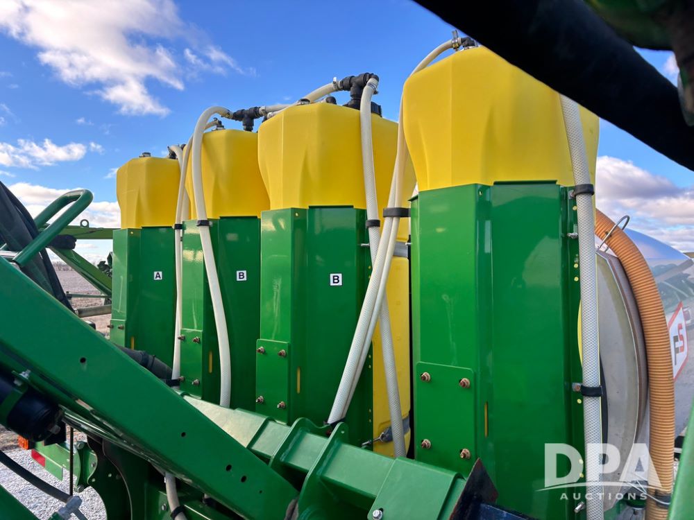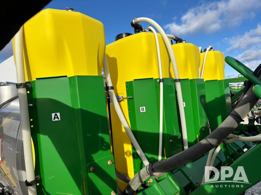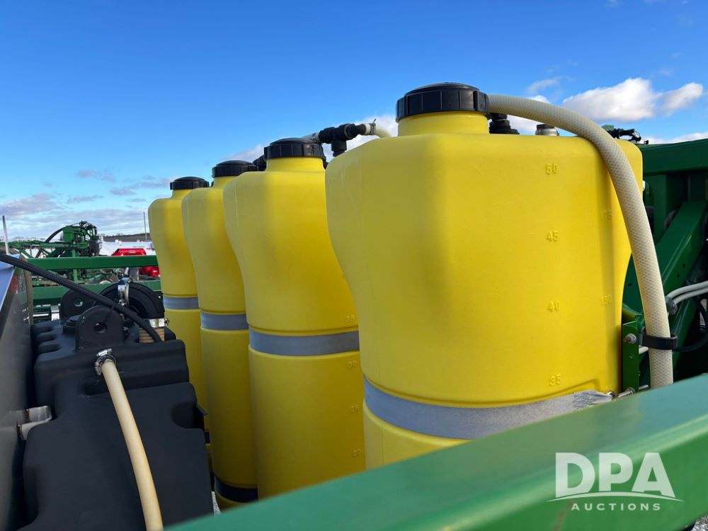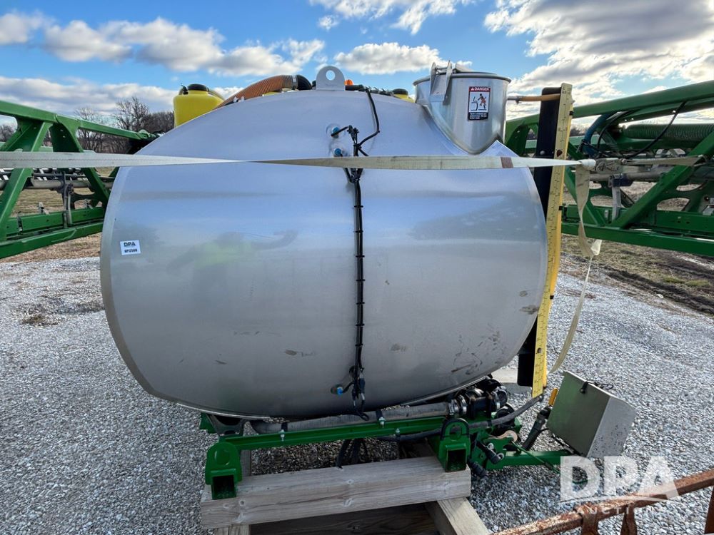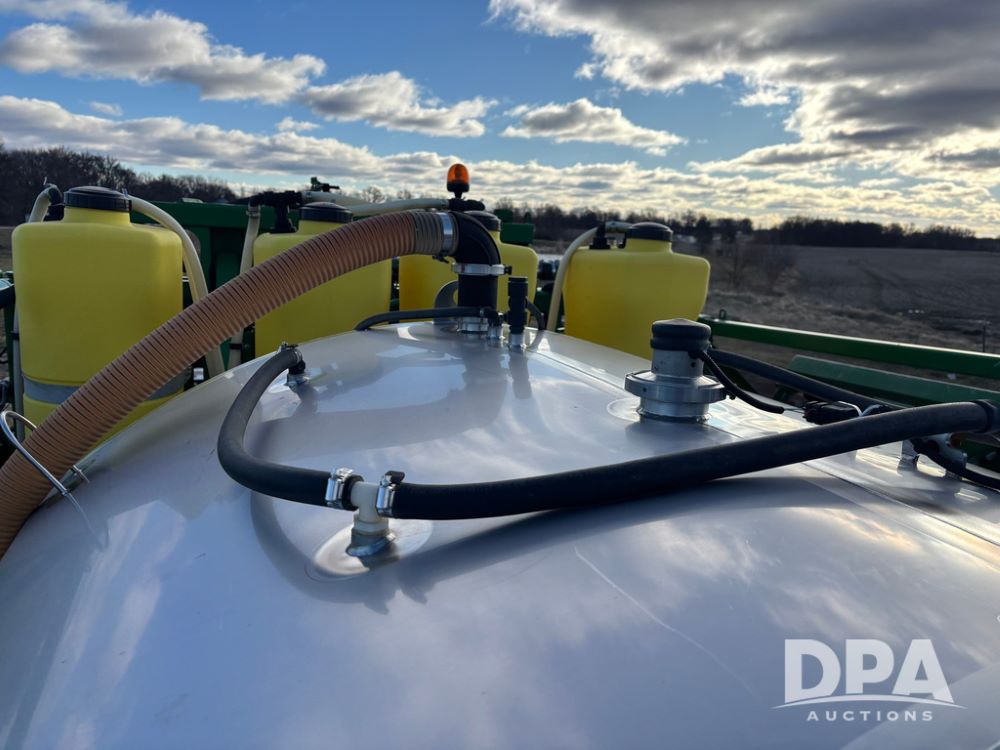 John Deere Liquid System (GP12509), John Deere 1000 gallon stainless steel liquid system, 100' boom, rear poly rinse tank, stainless steel chemical inductor, automatic solution control, 4 - 50 gallon poly direct injection tanks, 2 - Raven Sidekick Pro pumps, beacon light,