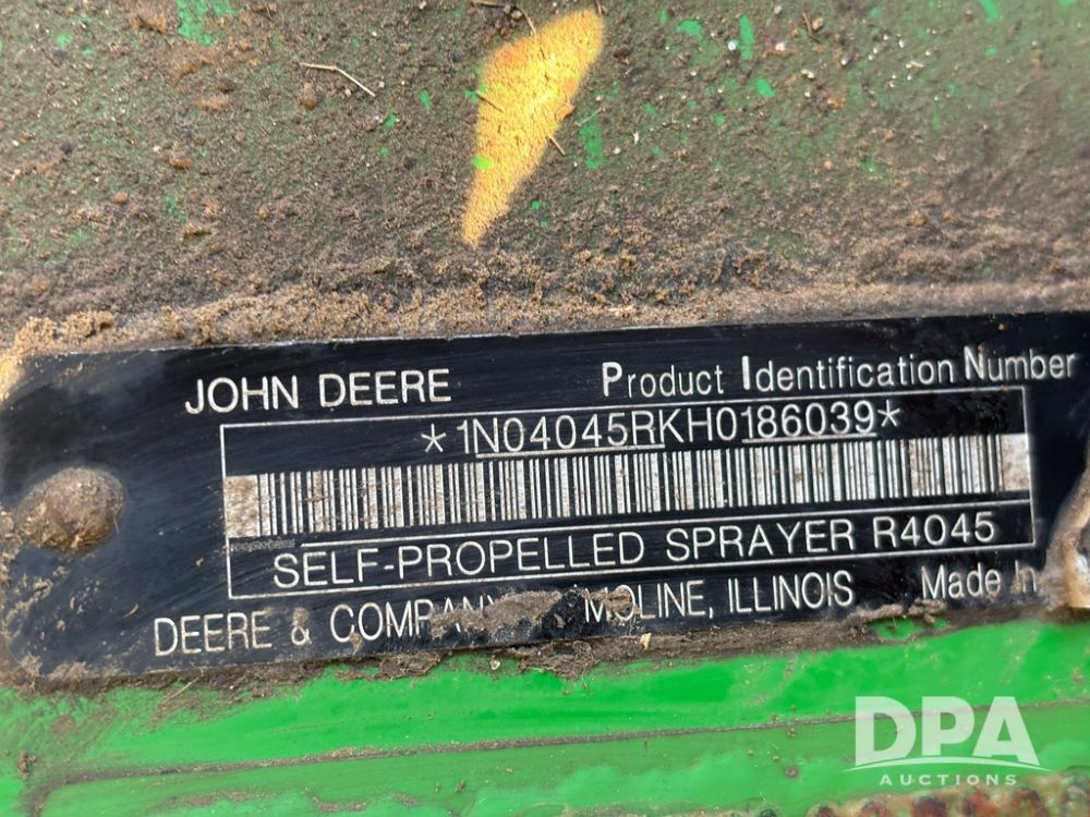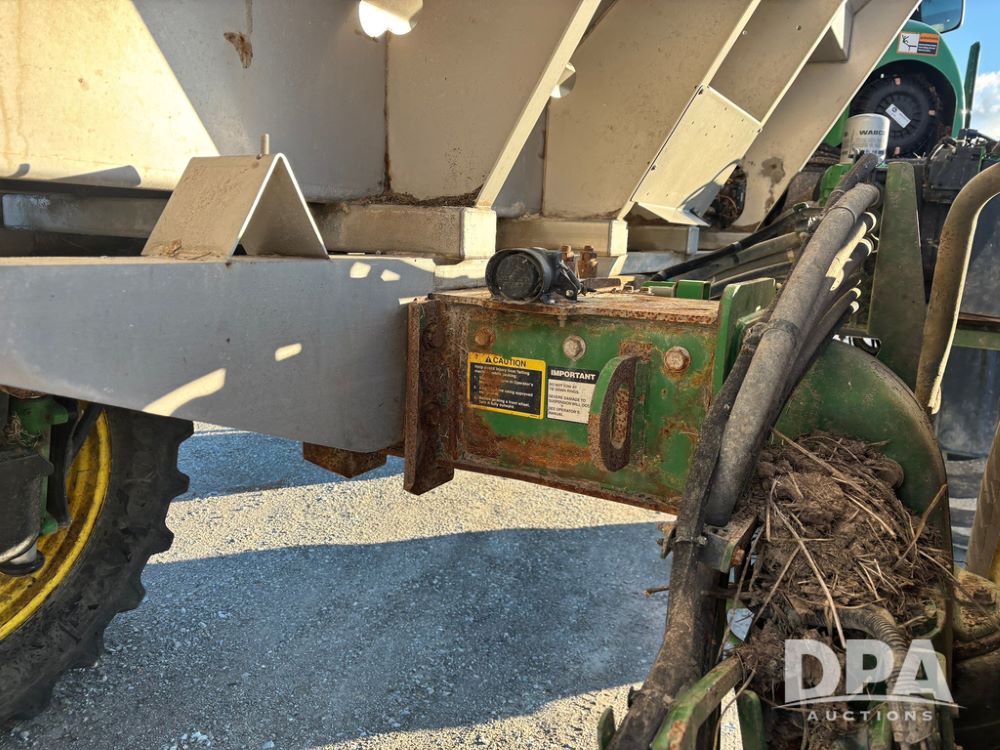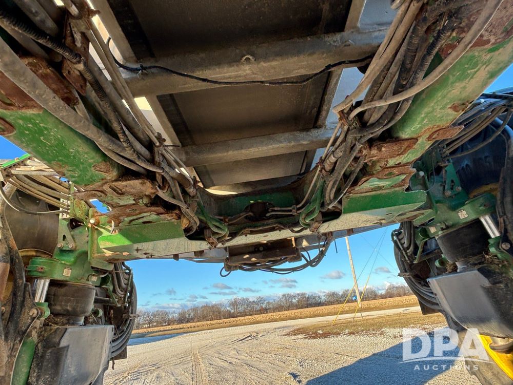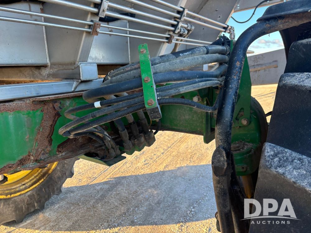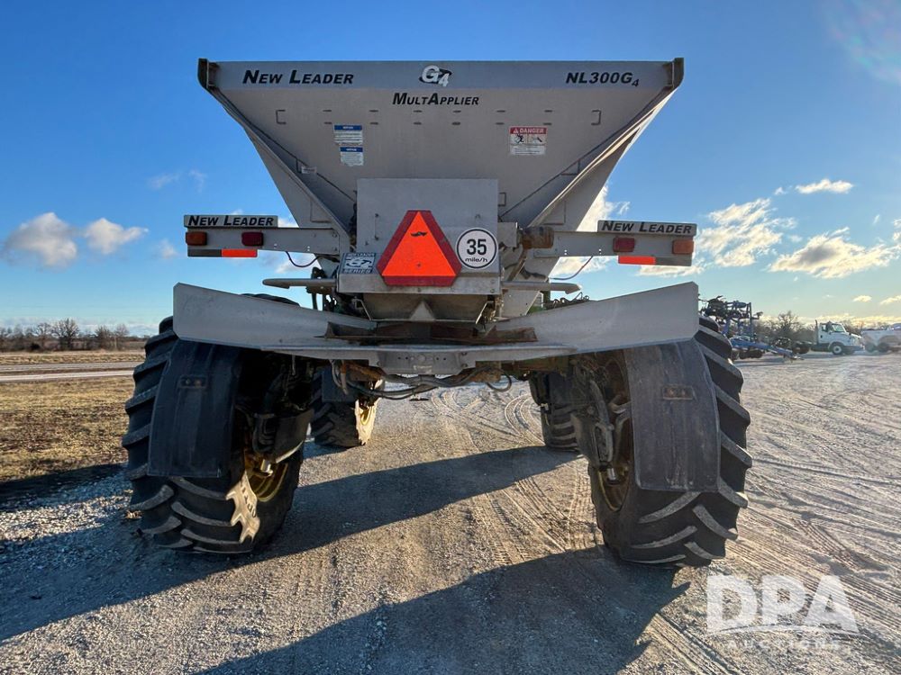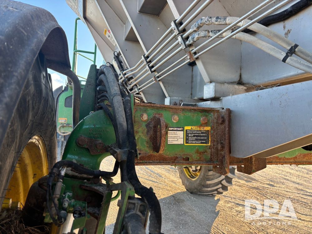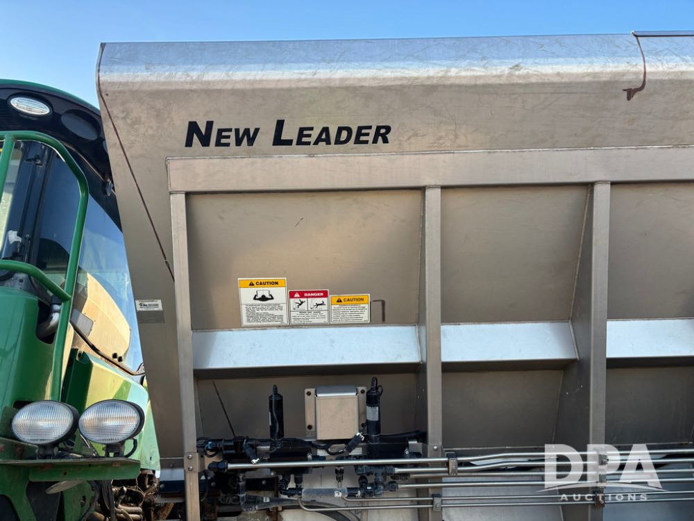 2018 John Deere R4045 Dry Machine (GP12506, Unit 27), John Deere diesel engine, hydrostatic transmission, air conditioning, heat, Am/Fm CD radio, leather seat, buddy seat, beacon light, New Leader NL300 G4 - 11' stainless steel dry spreader box (S/N 503959), twin spinner, all hydraulic, New Leader stainless steel insert, MItas SFT & Good Year LSW 710/65R46 tires, fenders, John Deere monitor, shows 4,920 hours.