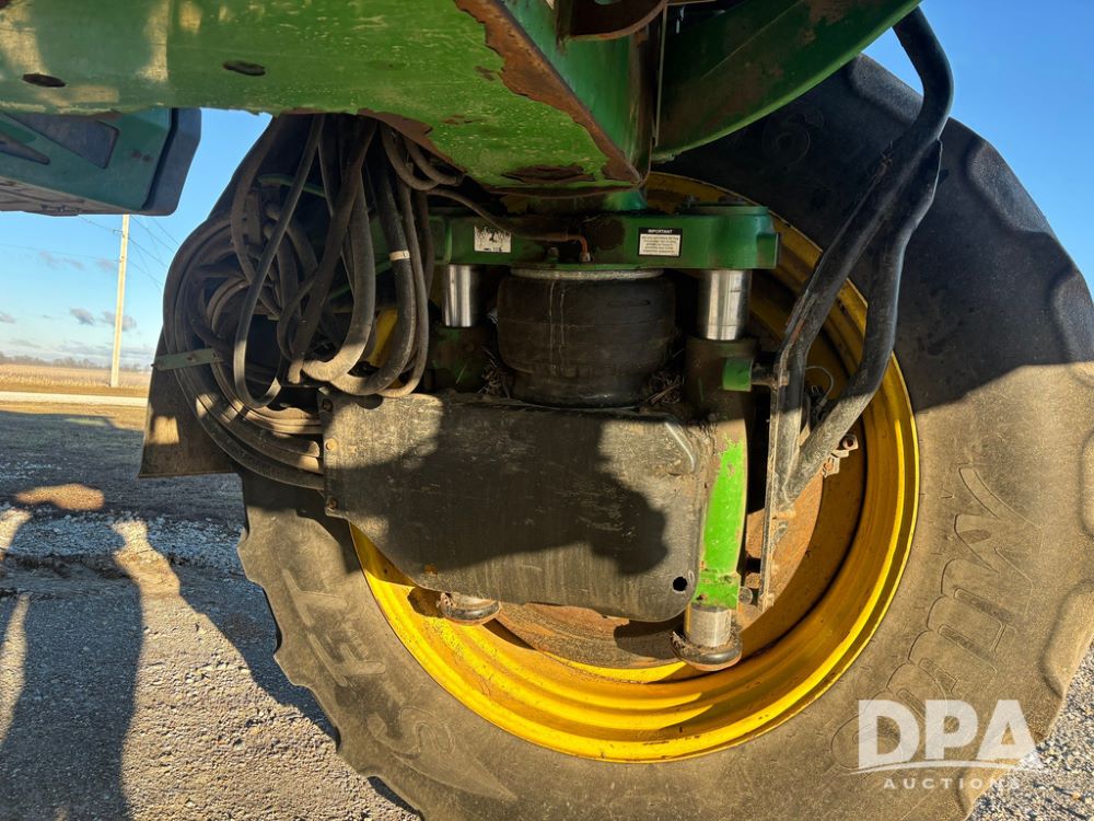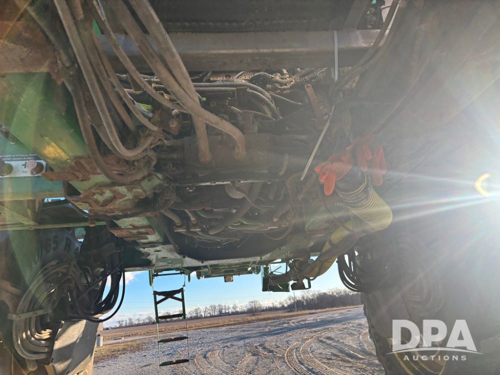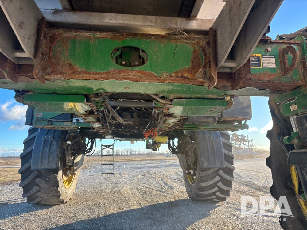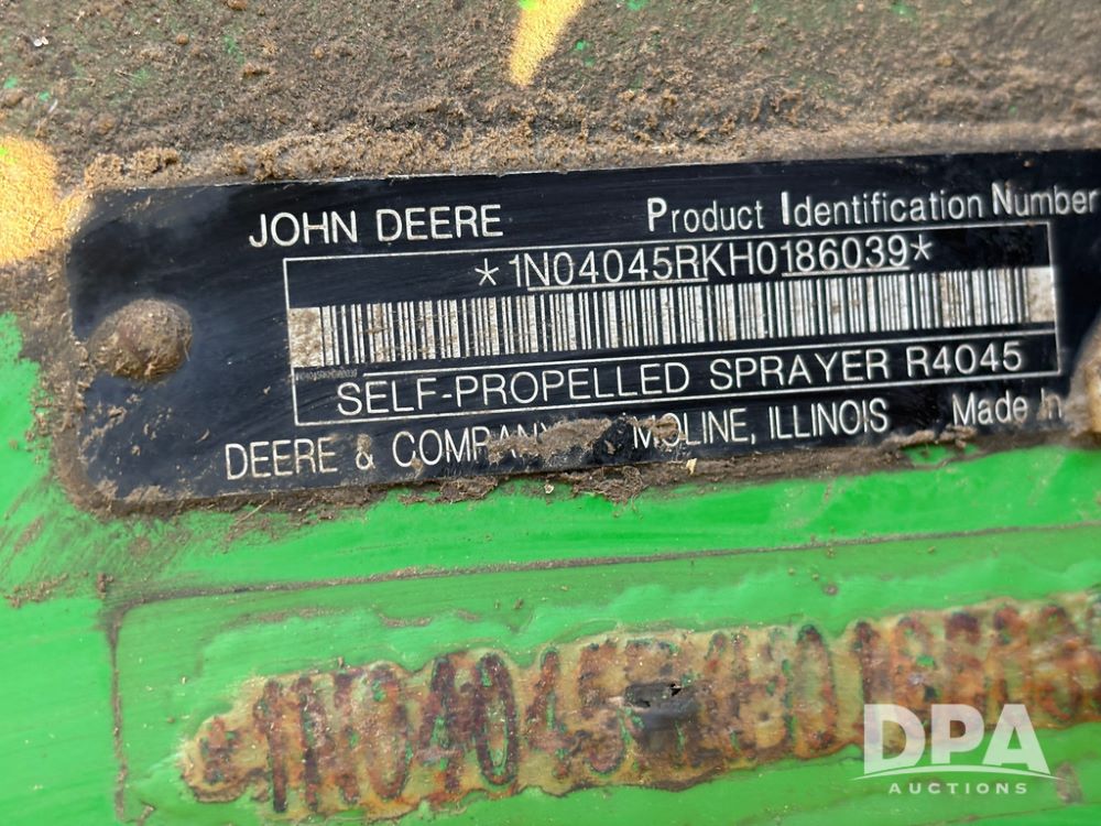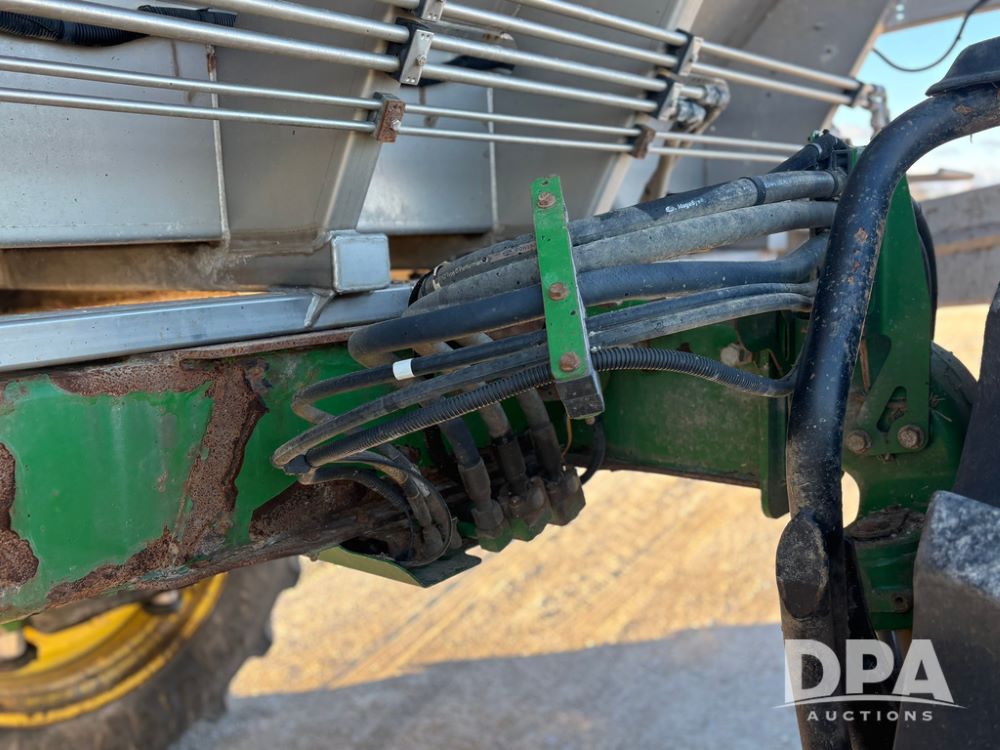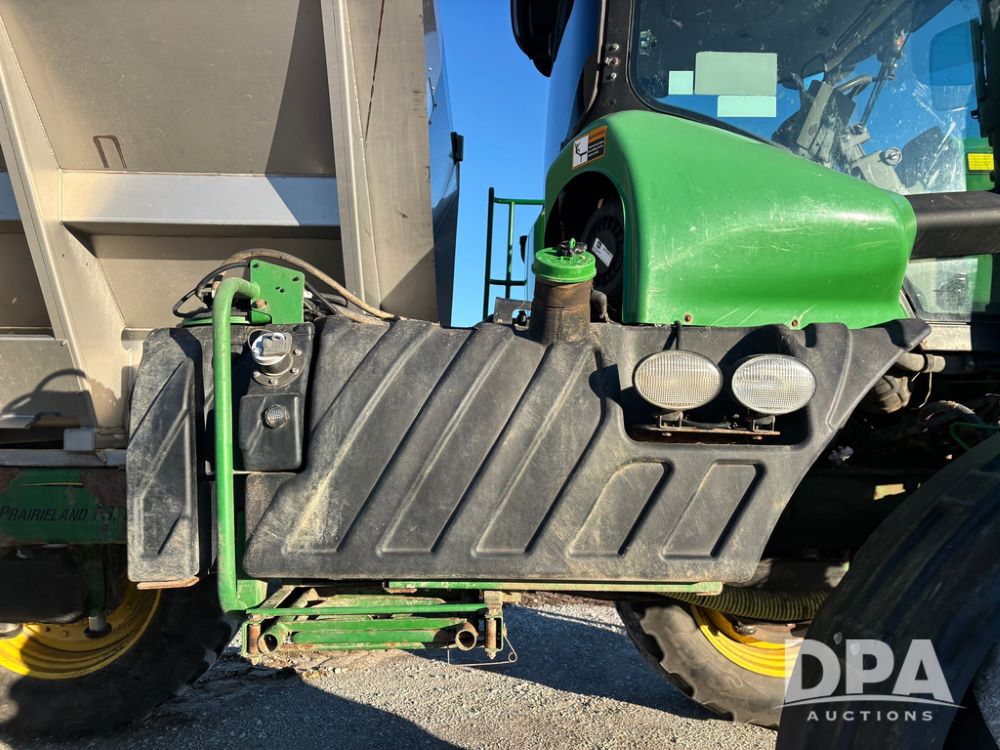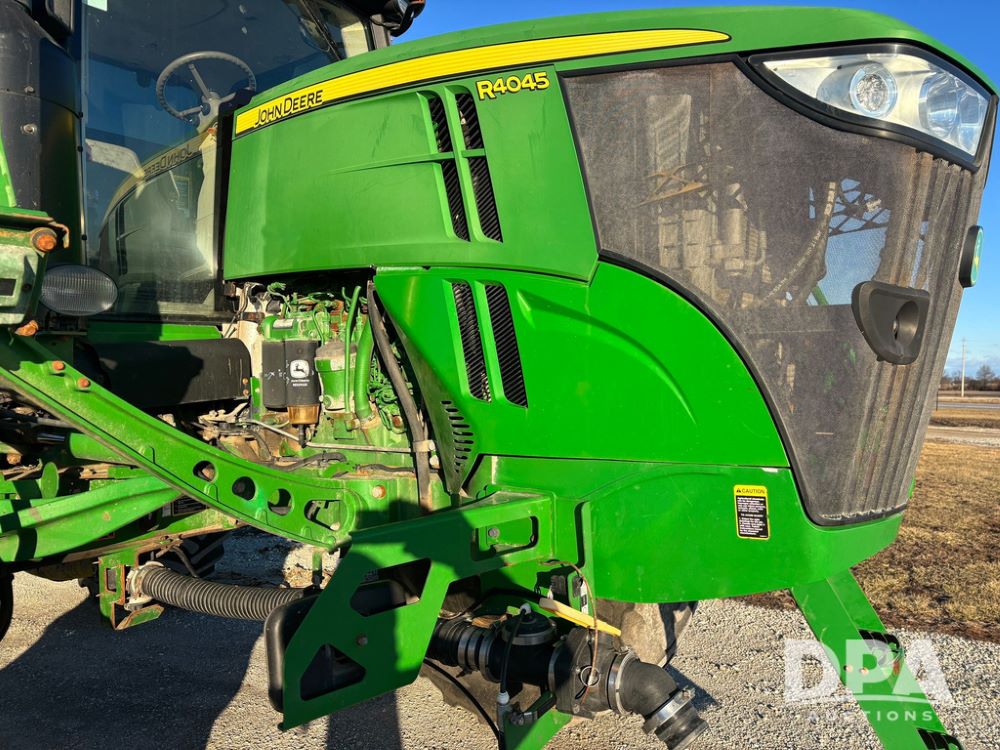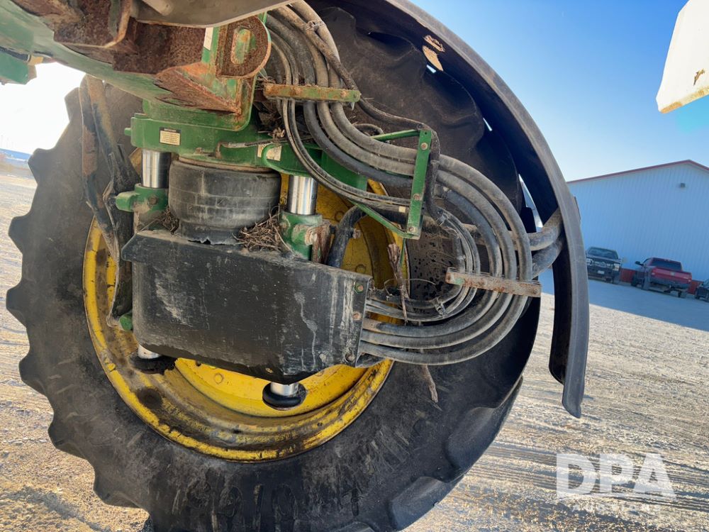 2018 John Deere R4045 Dry Machine (GP12506, Unit 27), John Deere diesel engine, hydrostatic transmission, air conditioning, heat, Am/Fm CD radio, leather seat, buddy seat, beacon light, New Leader NL300 G4 - 11' stainless steel dry spreader box (S/N 503959), twin spinner, all hydraulic, New Leader stainless steel insert, MItas SFT & Good Year LSW 710/65R46 tires, fenders, John Deere monitor, shows 4,920 hours.
