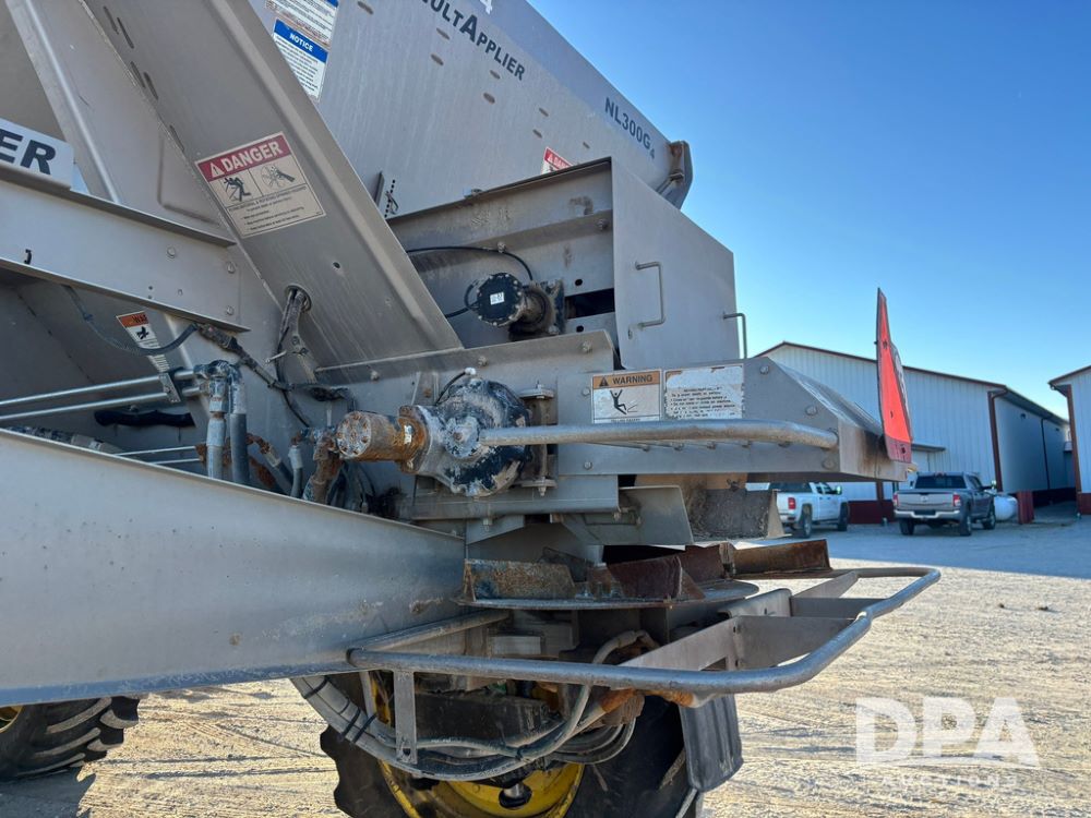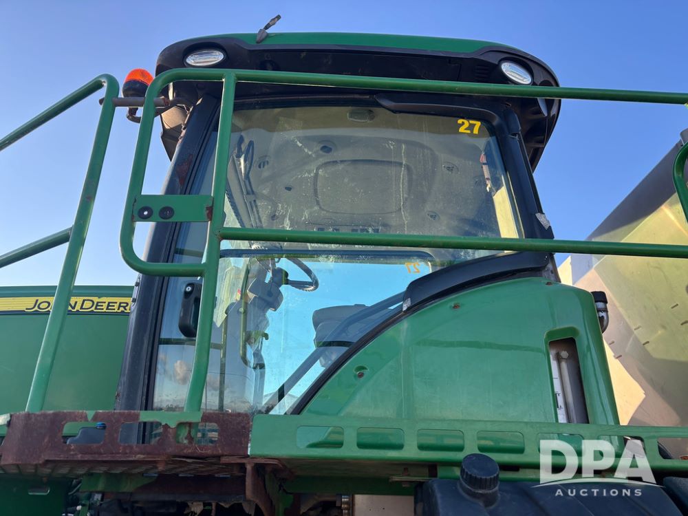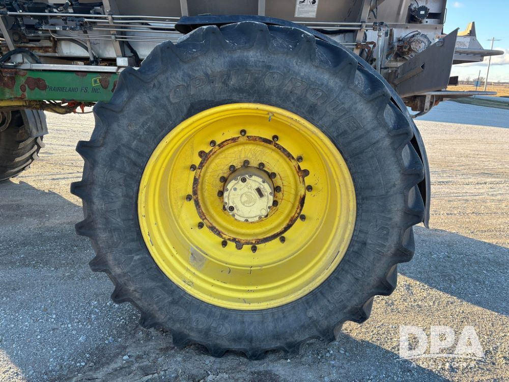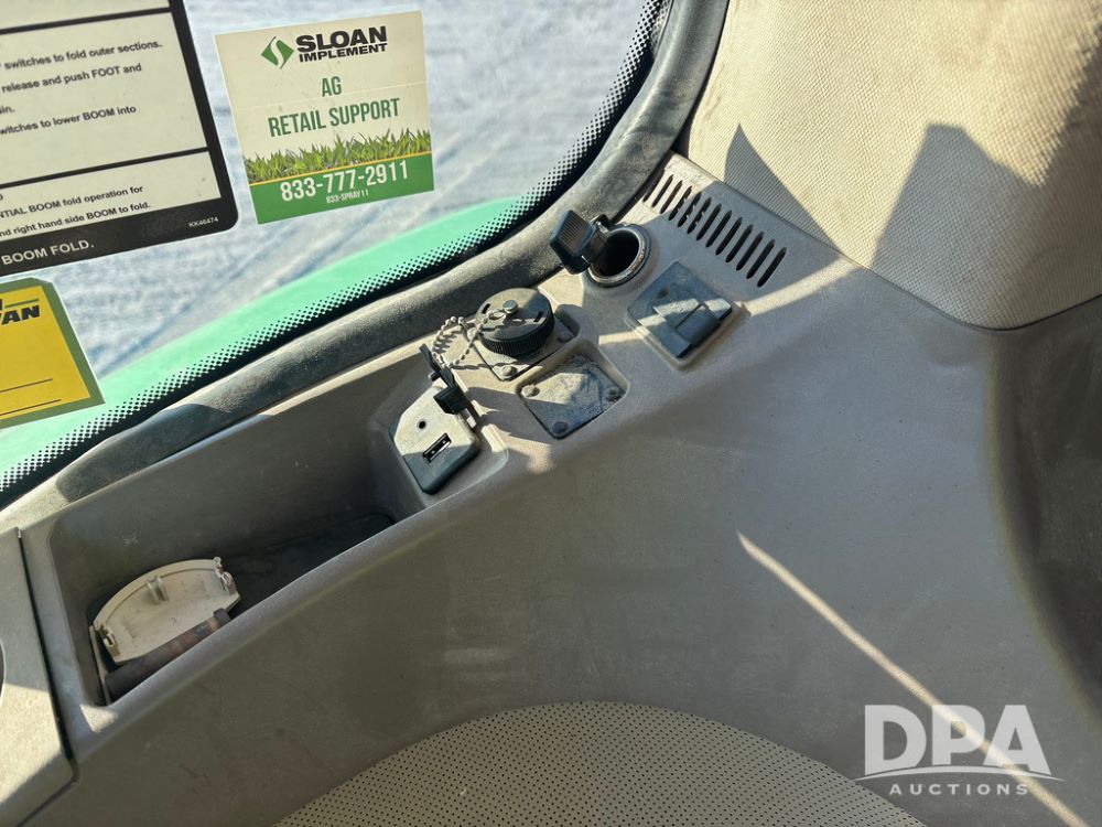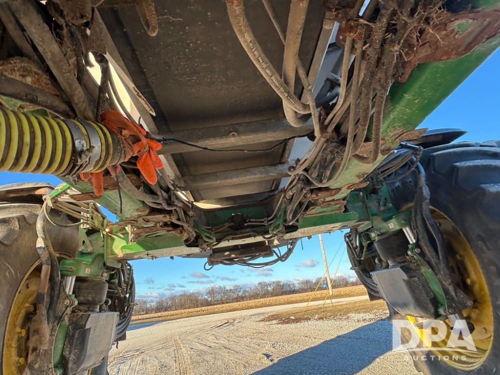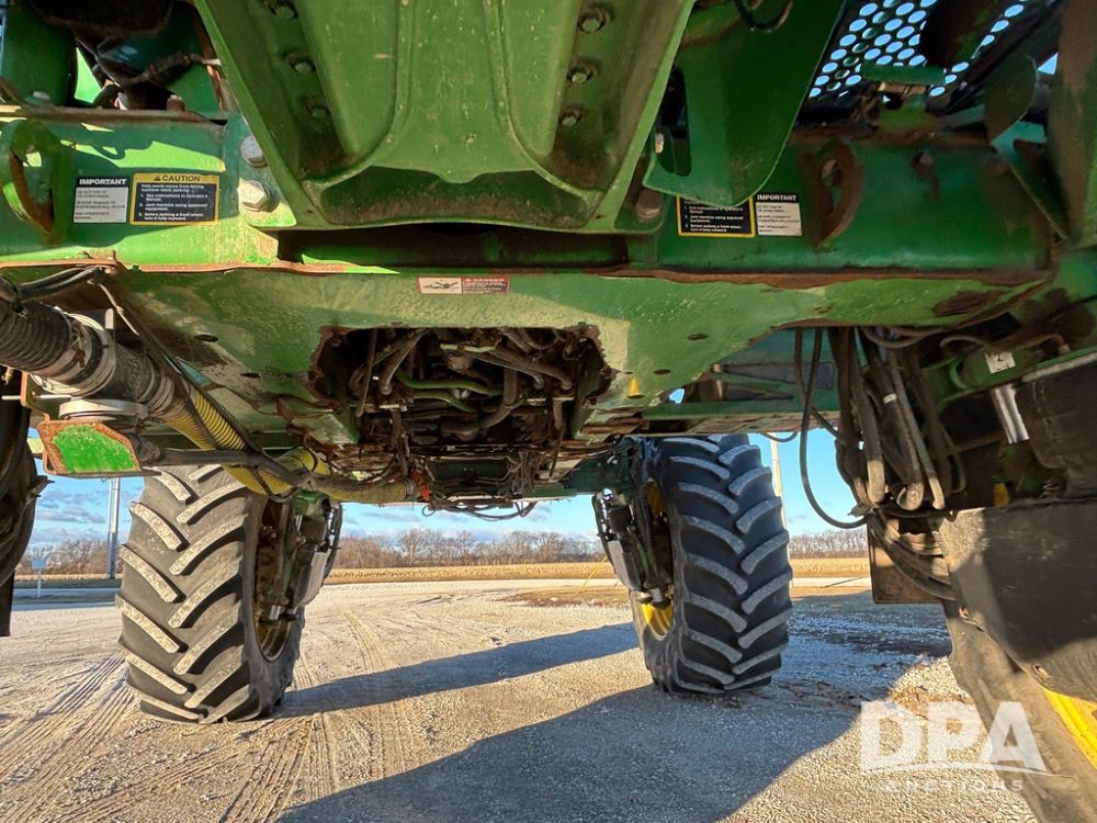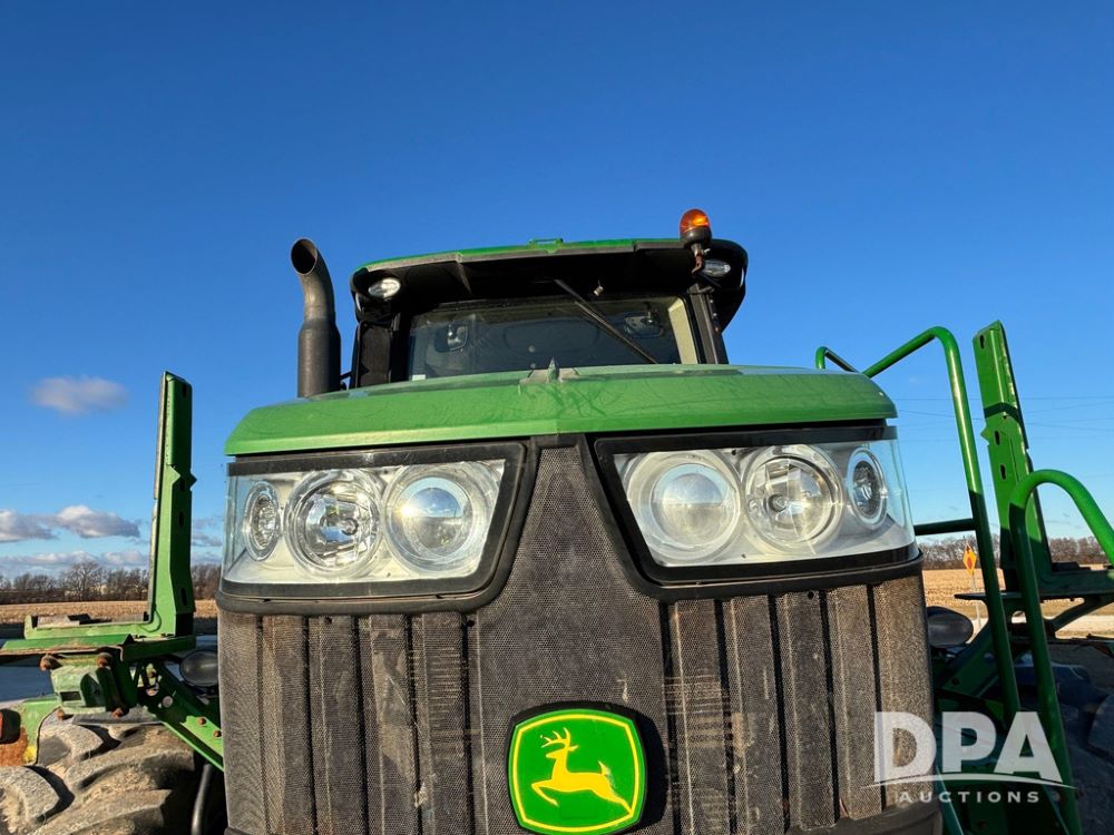 2018 John Deere R4045 Dry Machine (GP12506, Unit 27), John Deere diesel engine, hydrostatic transmission, air conditioning, heat, Am/Fm CD radio, leather seat, buddy seat, beacon light, New Leader NL300 G4 - 11' stainless steel dry spreader box (S/N 503959), twin spinner, all hydraulic, New Leader stainless steel insert, MItas SFT & Good Year LSW 710/65R46 tires, fenders, John Deere monitor, shows 4,920 hours.