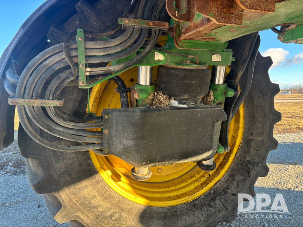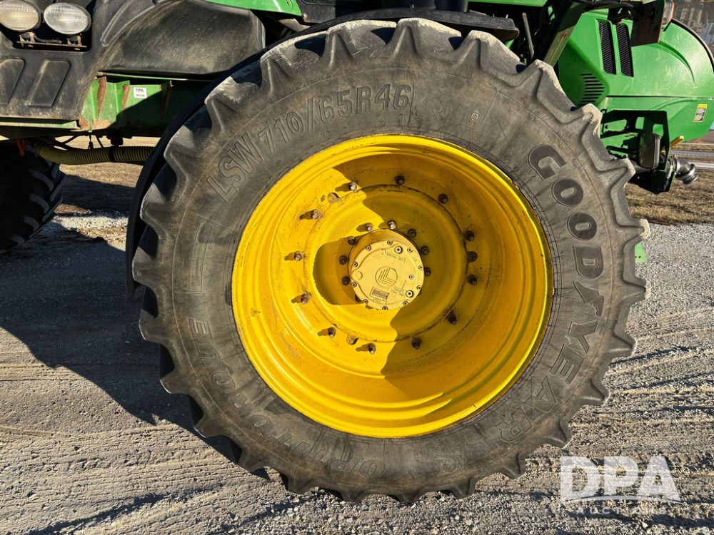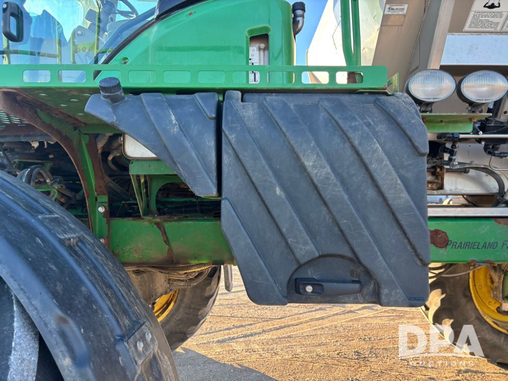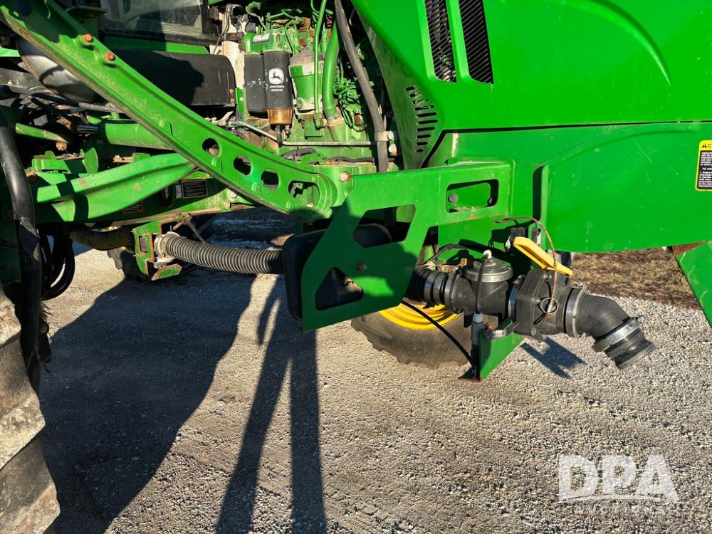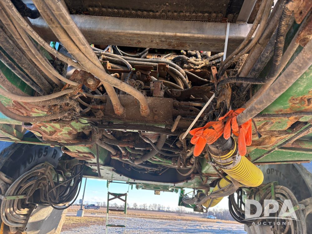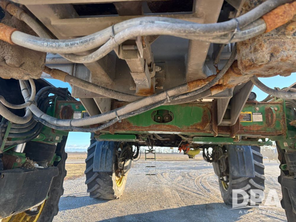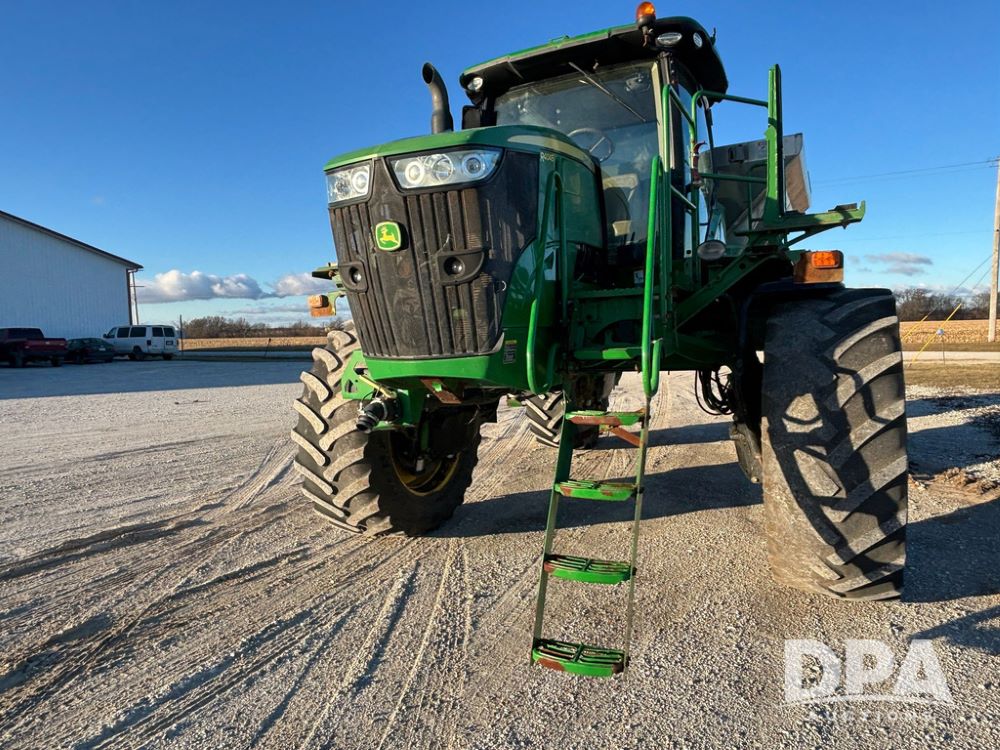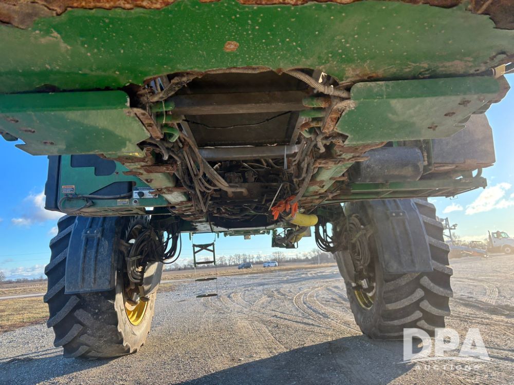 2018 John Deere R4045 Dry Machine (GP12506, Unit 27), John Deere diesel engine, hydrostatic transmission, air conditioning, heat, Am/Fm CD radio, leather seat, buddy seat, beacon light, New Leader NL300 G4 - 11' stainless steel dry spreader box (S/N 503959), twin spinner, all hydraulic, New Leader stainless steel insert, MItas SFT & Good Year LSW 710/65R46 tires, fenders, John Deere monitor, shows 4,920 hours.