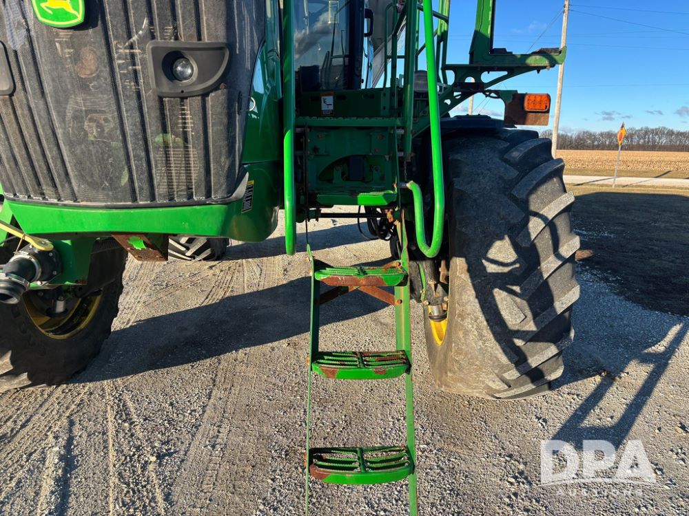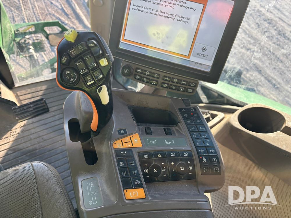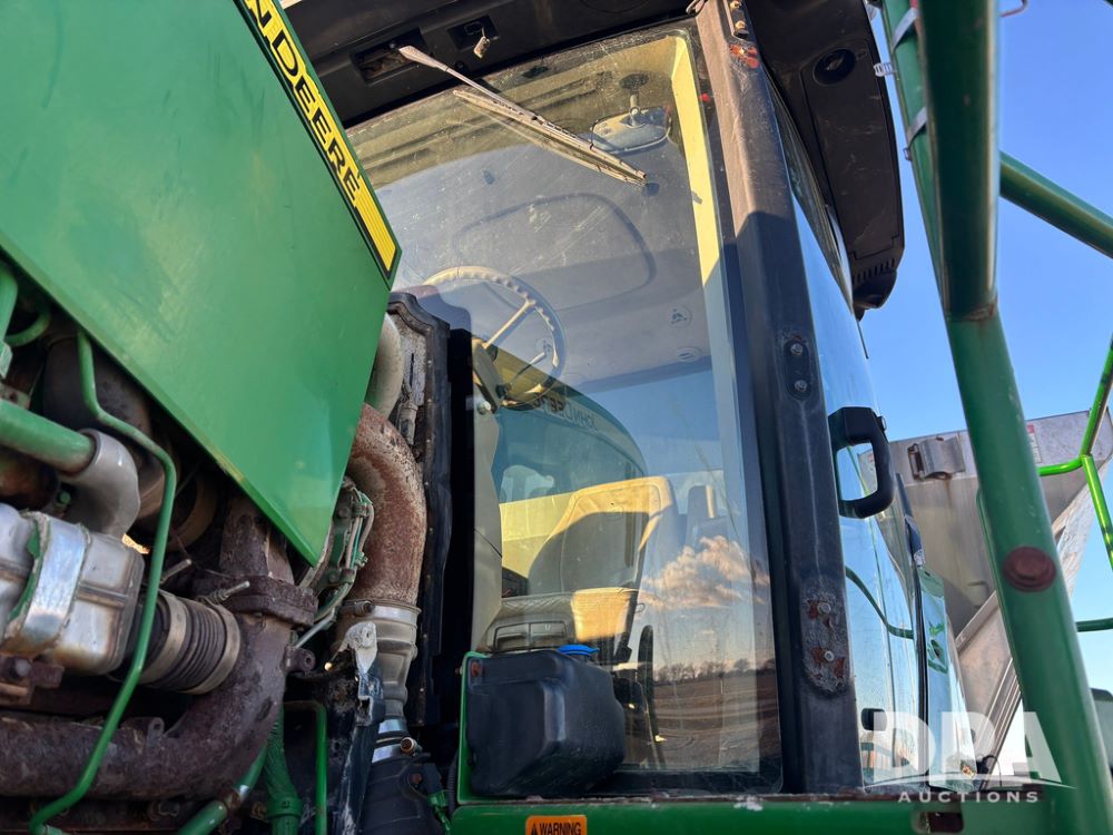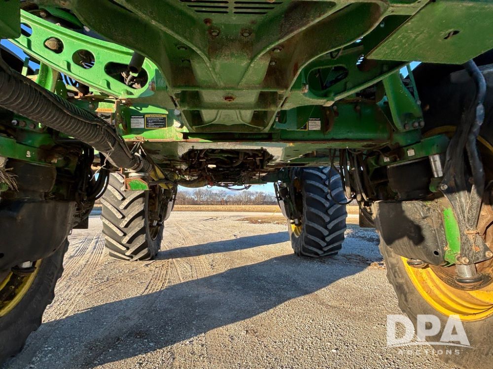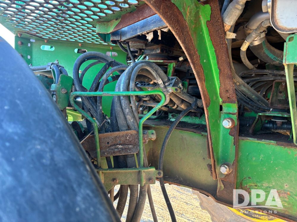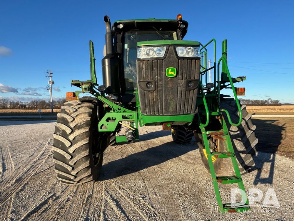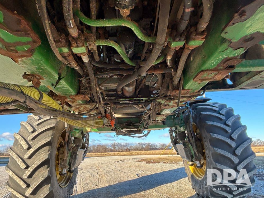 2018 John Deere R4045 Dry Machine (GP12506, Unit 27), John Deere diesel engine, hydrostatic transmission, air conditioning, heat, Am/Fm CD radio, leather seat, buddy seat, beacon light, New Leader NL300 G4 - 11' stainless steel dry spreader box (S/N 503959), twin spinner, all hydraulic, New Leader stainless steel insert, MItas SFT & Good Year LSW 710/65R46 tires, fenders, John Deere monitor, shows 4,920 hours.