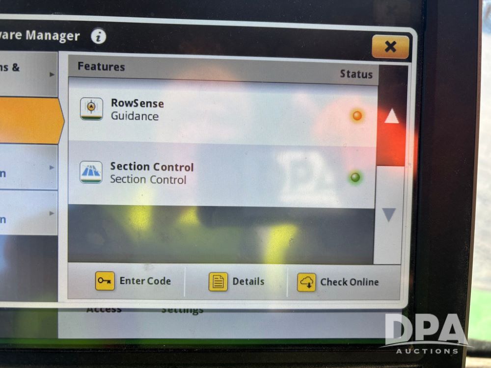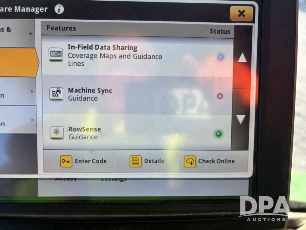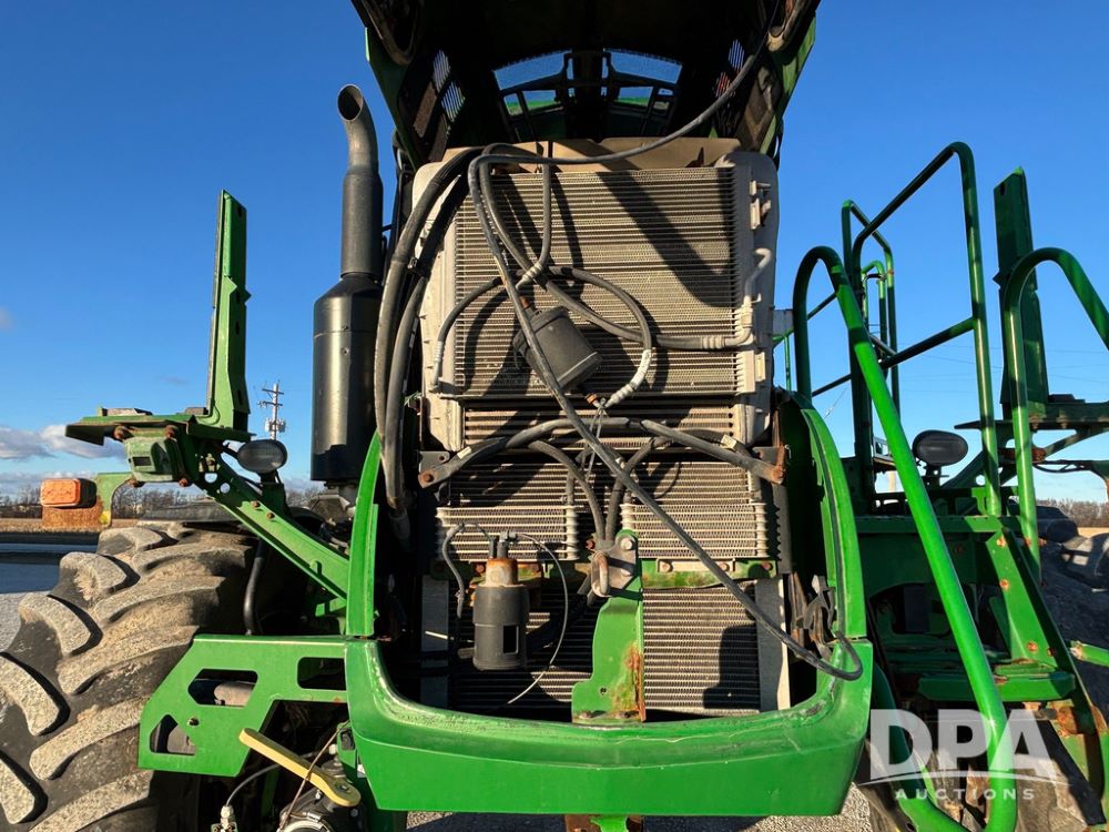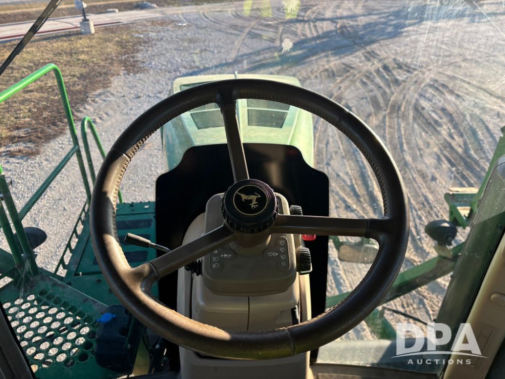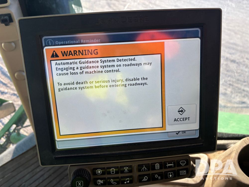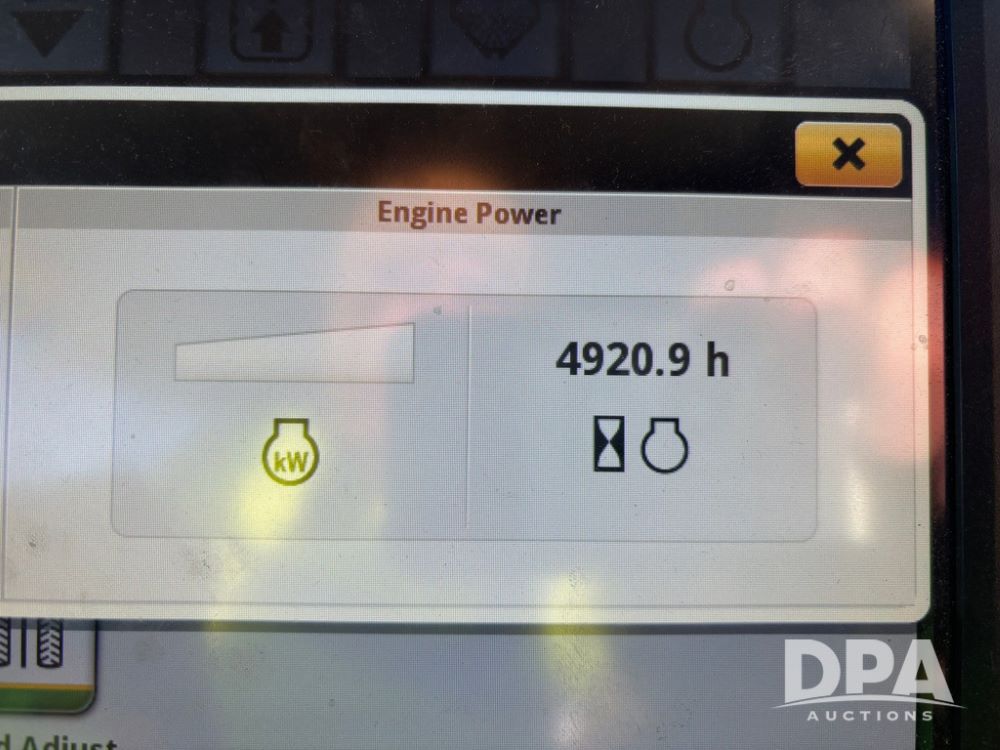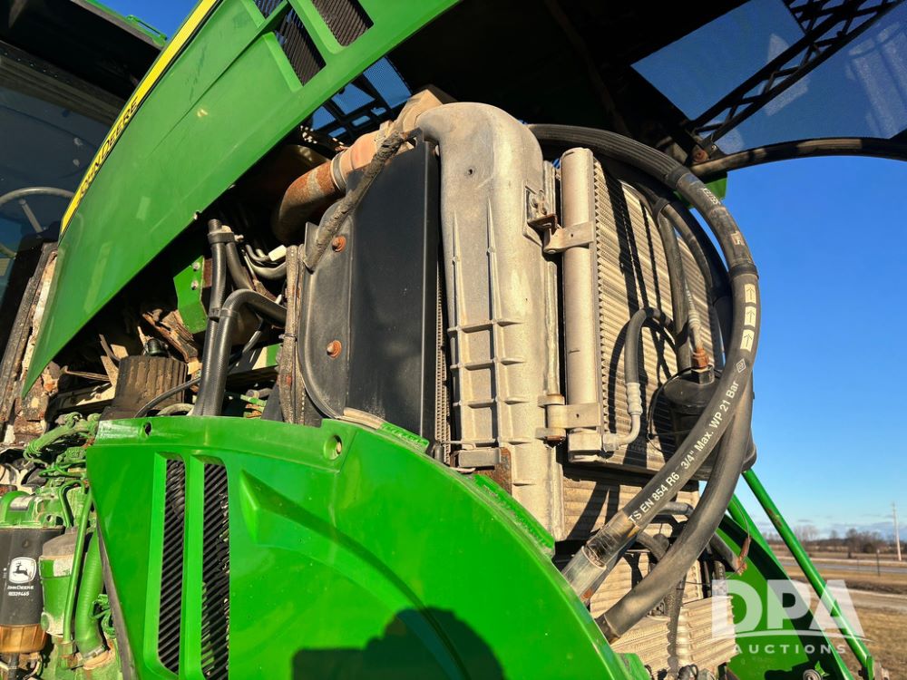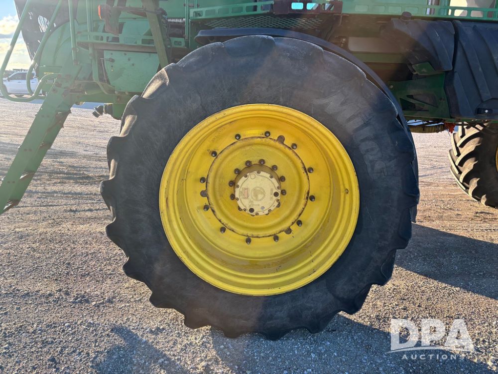 2018 John Deere R4045 Dry Machine (GP12506, Unit 27), John Deere diesel engine, hydrostatic transmission, air conditioning, heat, Am/Fm CD radio, leather seat, buddy seat, beacon light, New Leader NL300 G4 - 11' stainless steel dry spreader box (S/N 503959), twin spinner, all hydraulic, New Leader stainless steel insert, MItas SFT & Good Year LSW 710/65R46 tires, fenders, John Deere monitor, shows 4,920 hours.