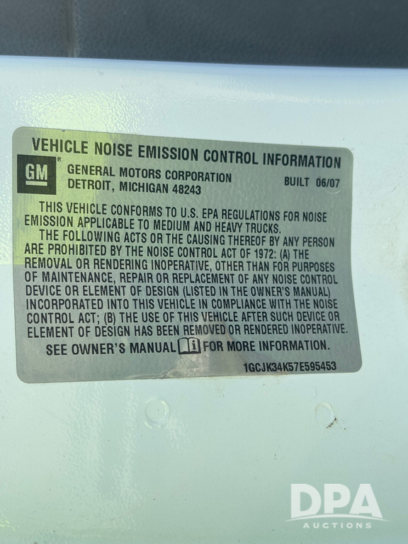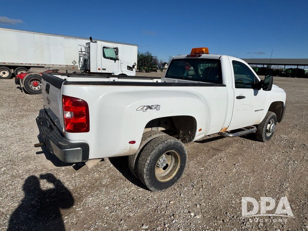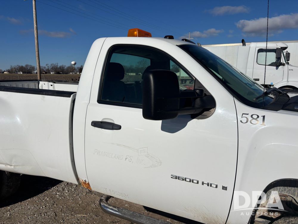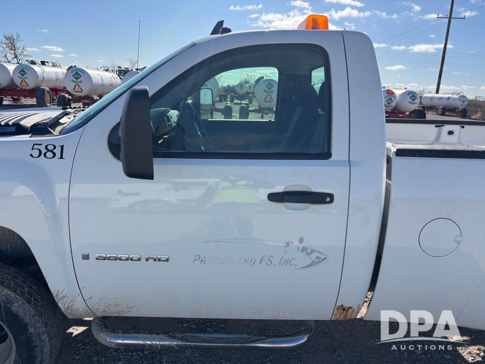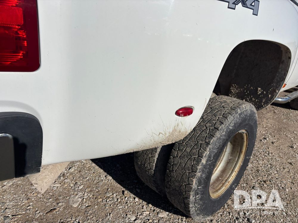 2007 Chevrolet 3500HD Dually Pickup (GP12523, Unit 581), 4x4, Vortec gas engine, automatic transmission, air conditioning, heat, Am/Fm radio, cruise control, running boards, 5th wheel, rear hitch, LT215/85R16 tires, shows 68,804 miles.