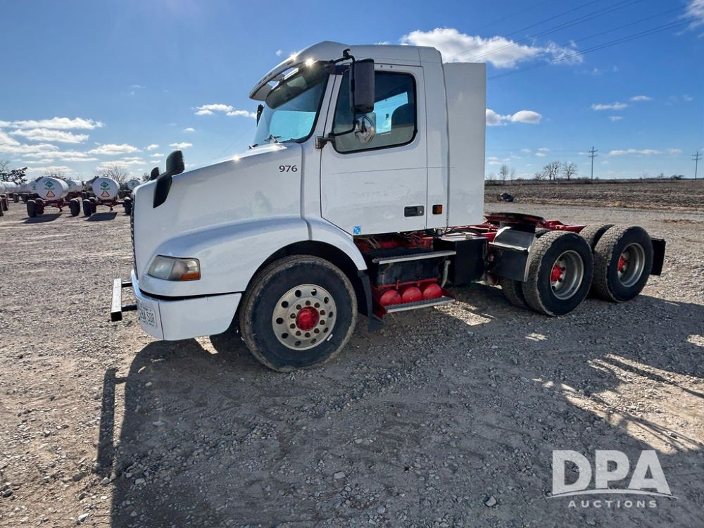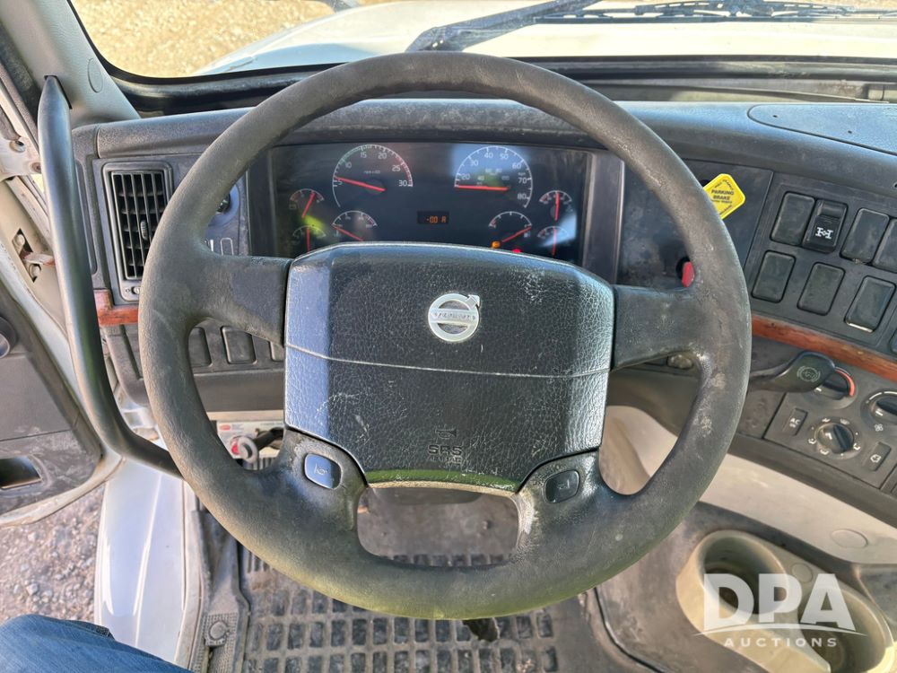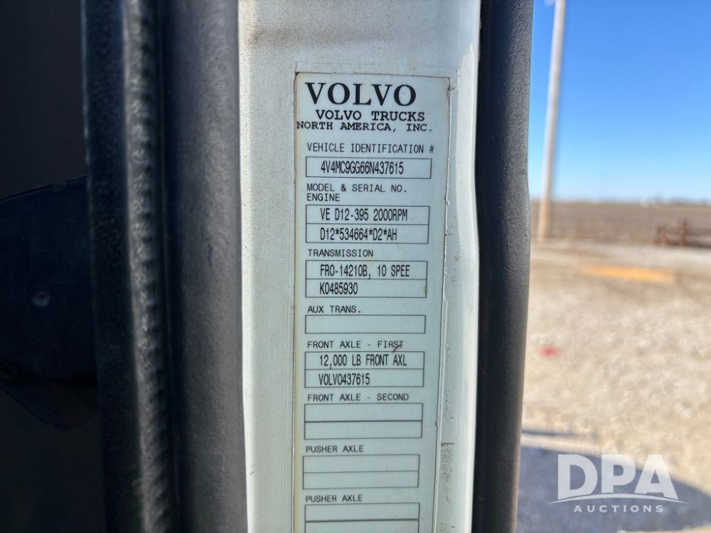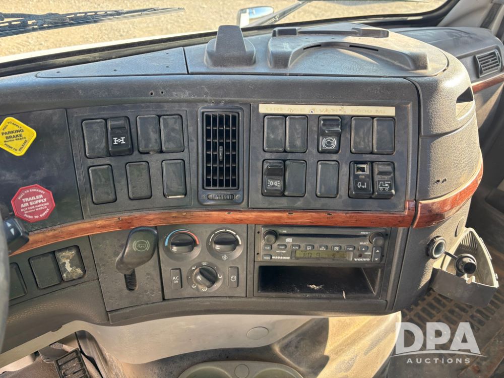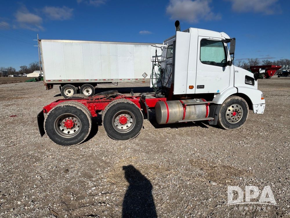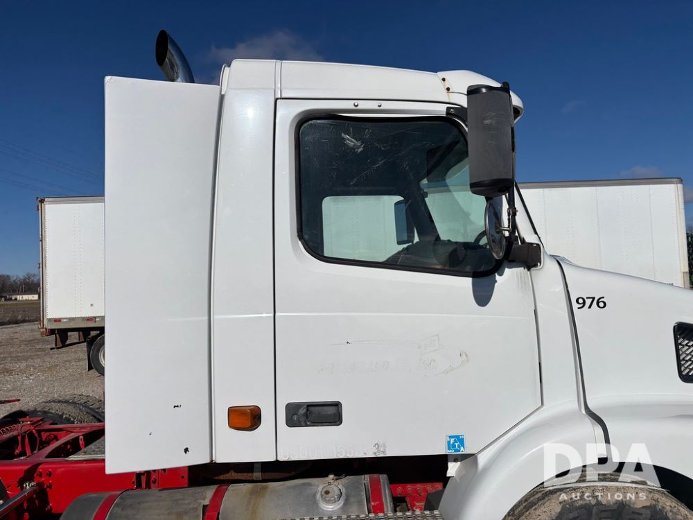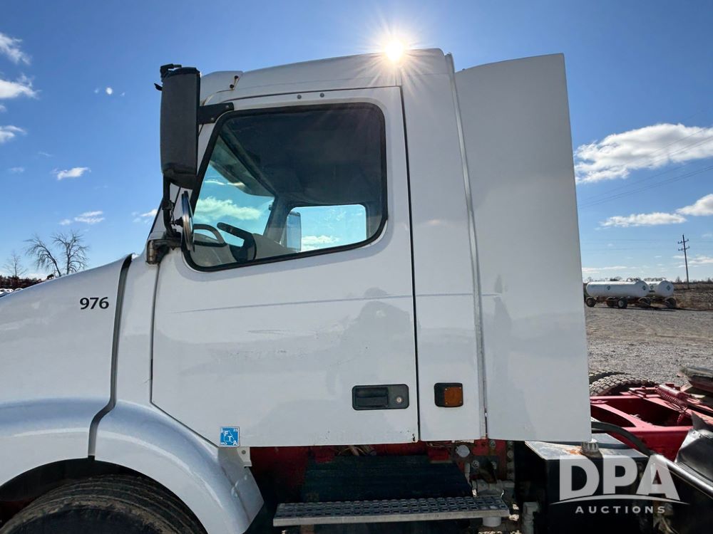2006 Volvo Day Cab Truck (GP12524, Unit 976), Volvo VE D12-395 diesel engine, Eaton Fuller 10 speed transmission, air conditioning, heat, Am/Fm CD radio, power windows & locks, tandem axle, full screw, air ride suspension, 5th wheel, wet kit, 11R22.5 tires, shows 626,787 miles.
