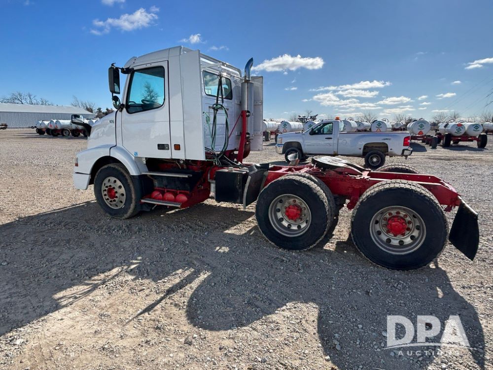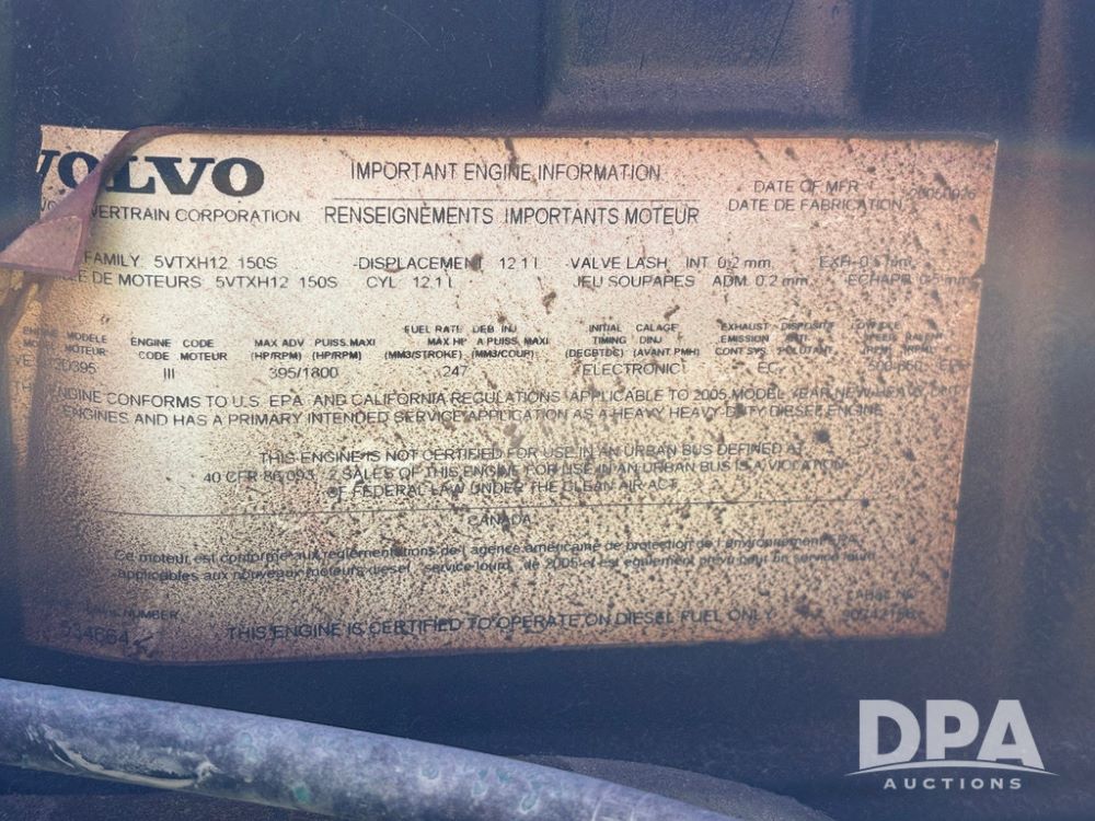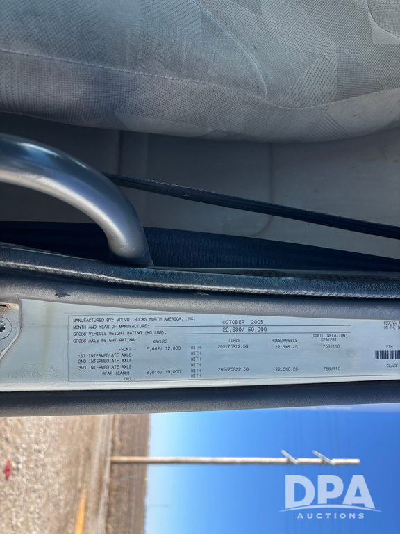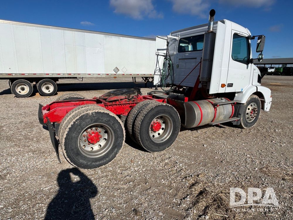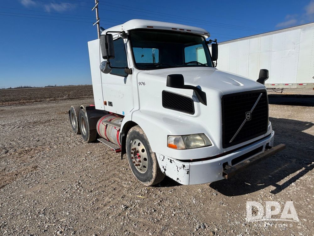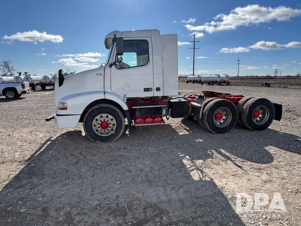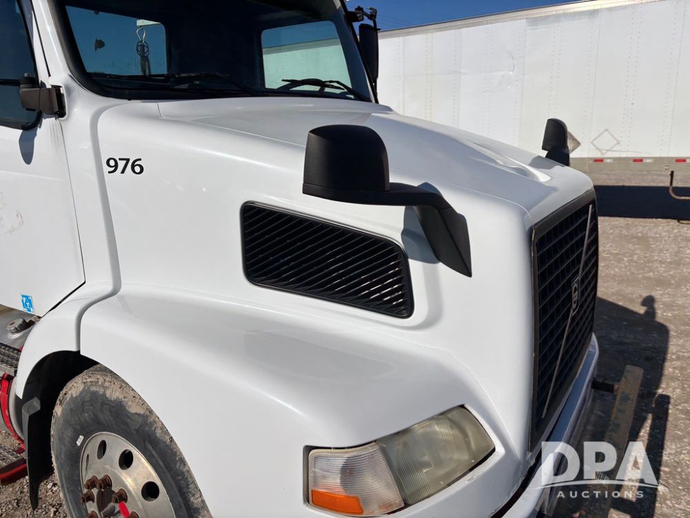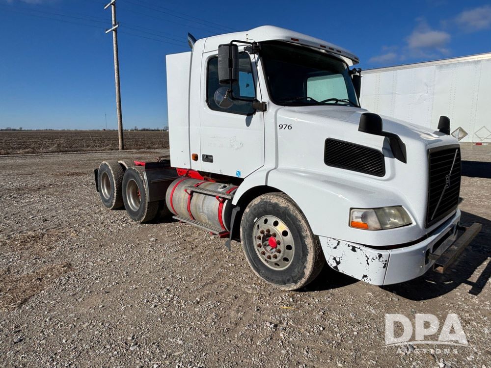 2006 Volvo Day Cab Truck (GP12524, Unit 976), Volvo VE D12-395 diesel engine, Eaton Fuller 10 speed transmission, air conditioning, heat, Am/Fm CD radio, power windows & locks, tandem axle, full screw, air ride suspension, 5th wheel, wet kit, 11R22.5 tires, shows 626,787 miles.