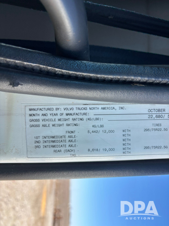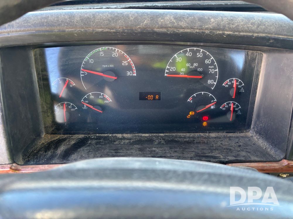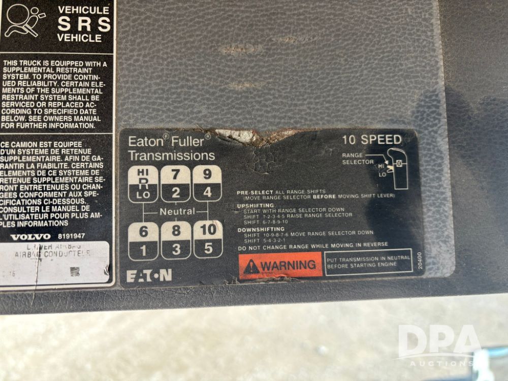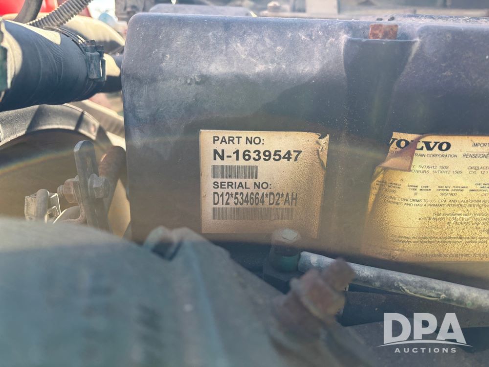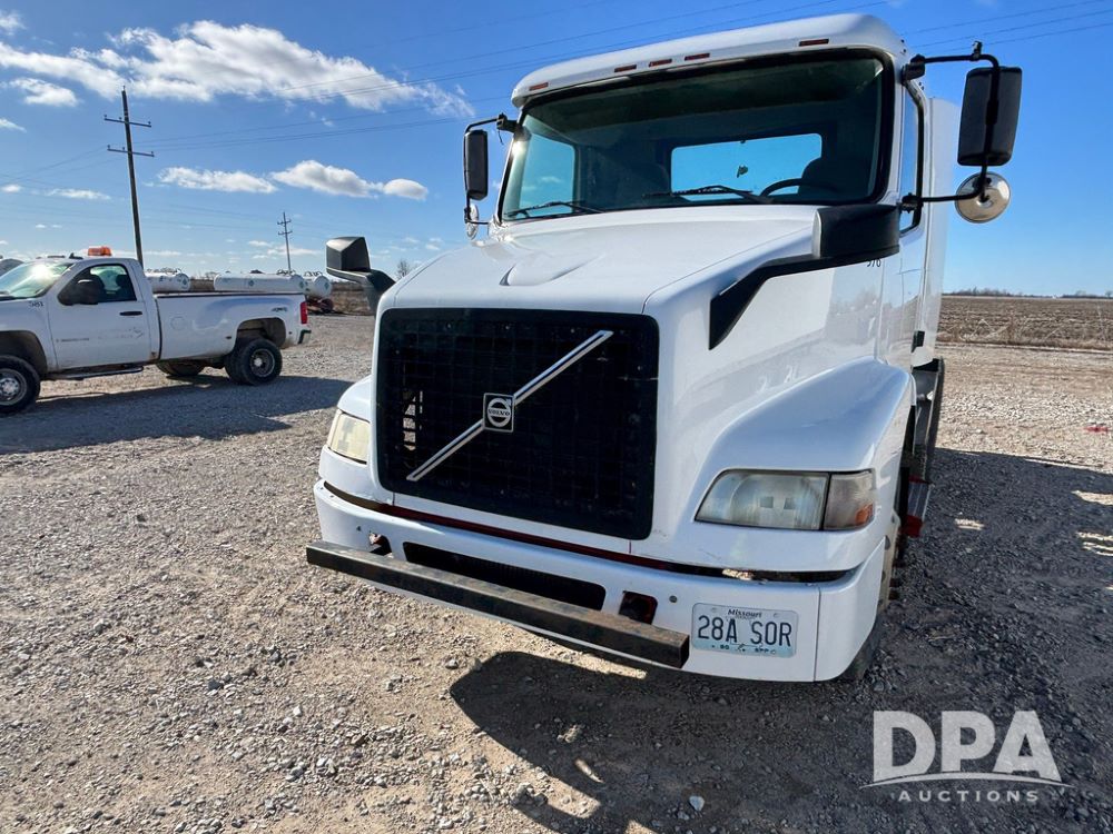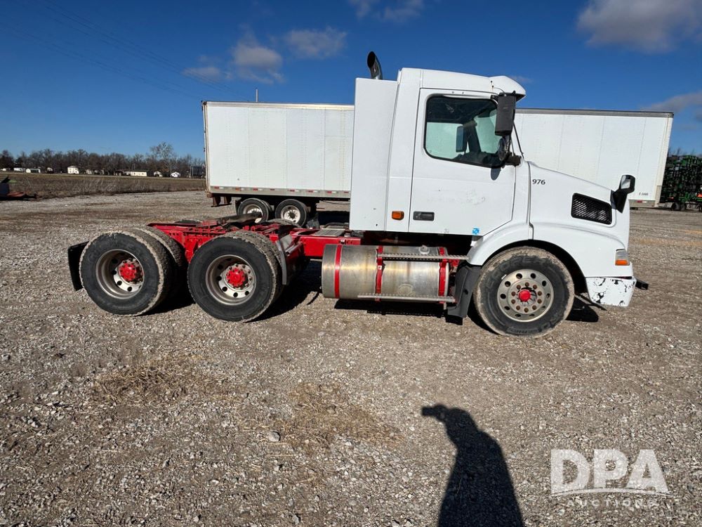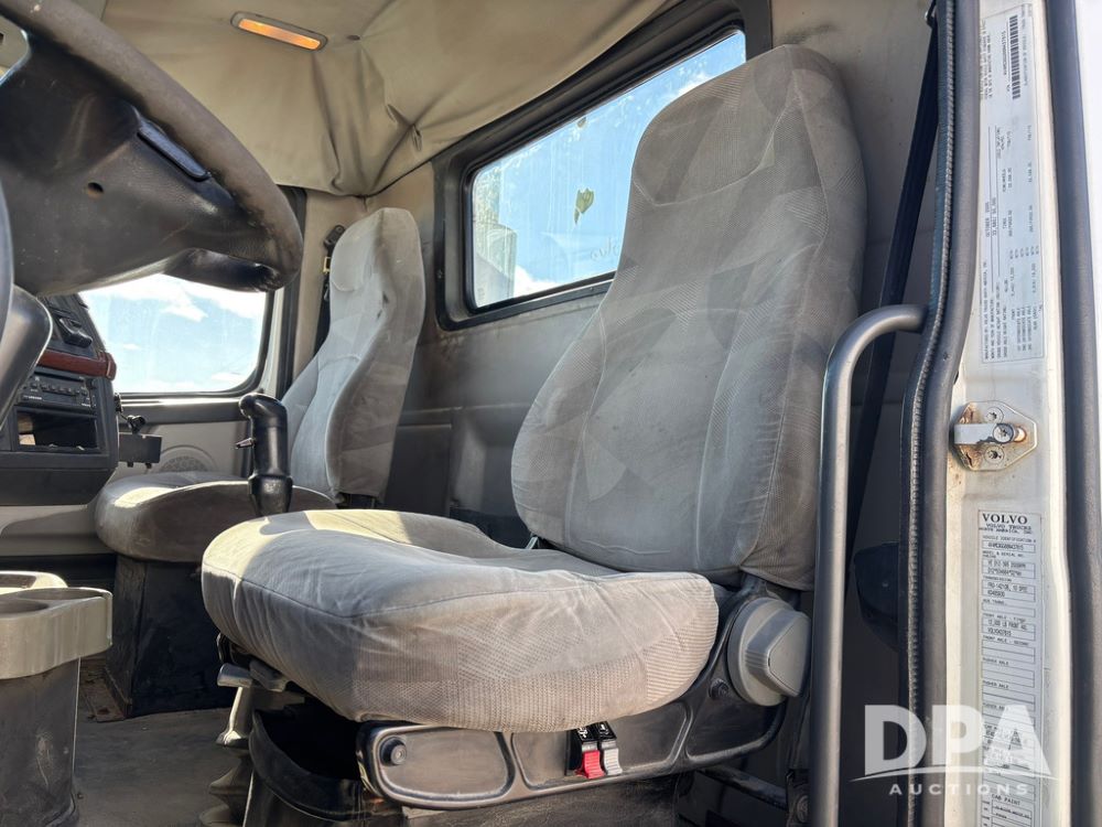 2006 Volvo Day Cab Truck (GP12524, Unit 976), Volvo VE D12-395 diesel engine, Eaton Fuller 10 speed transmission, air conditioning, heat, Am/Fm CD radio, power windows & locks, tandem axle, full screw, air ride suspension, 5th wheel, wet kit, 11R22.5 tires, shows 626,787 miles.