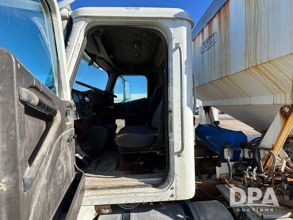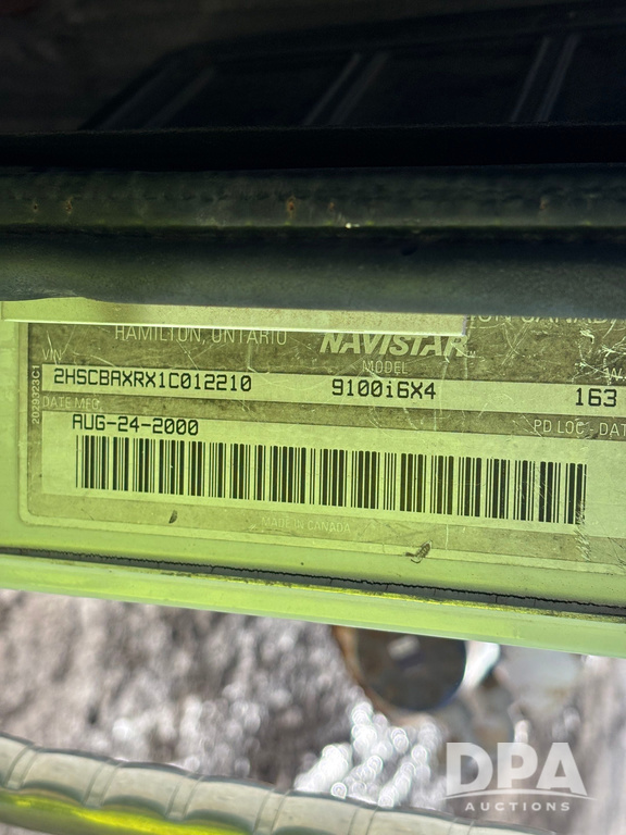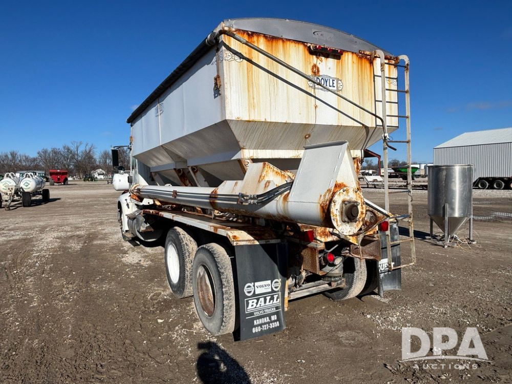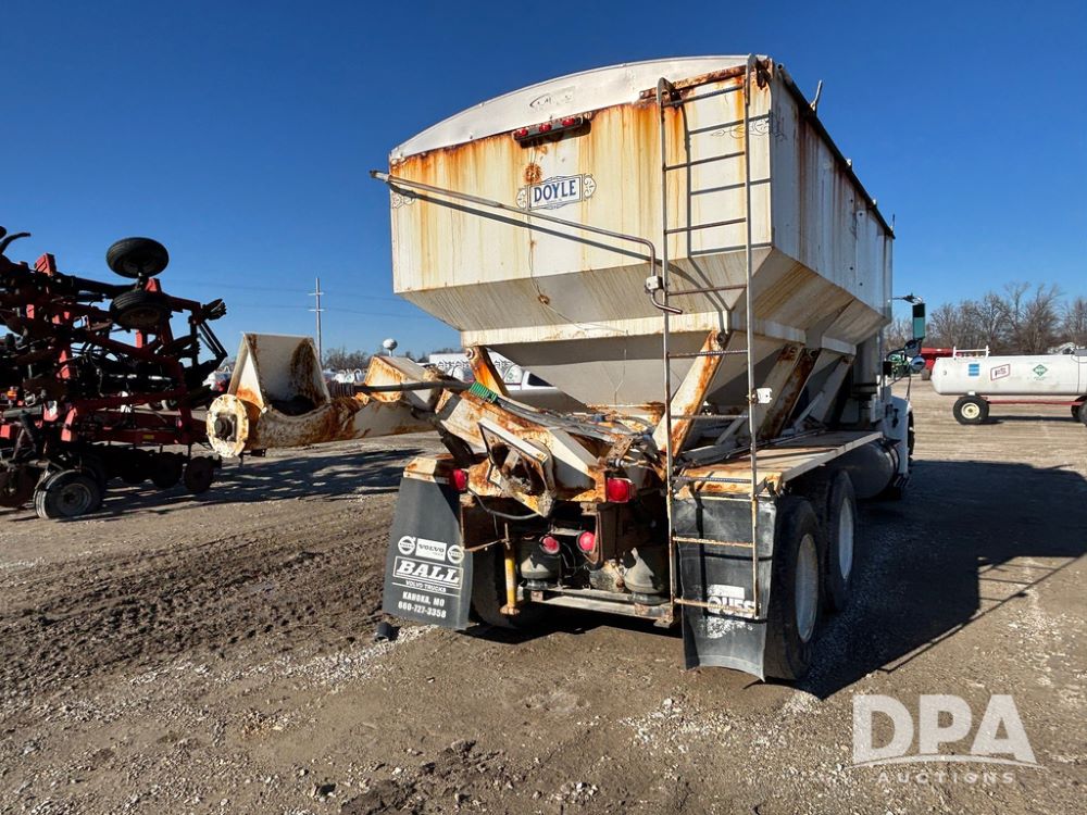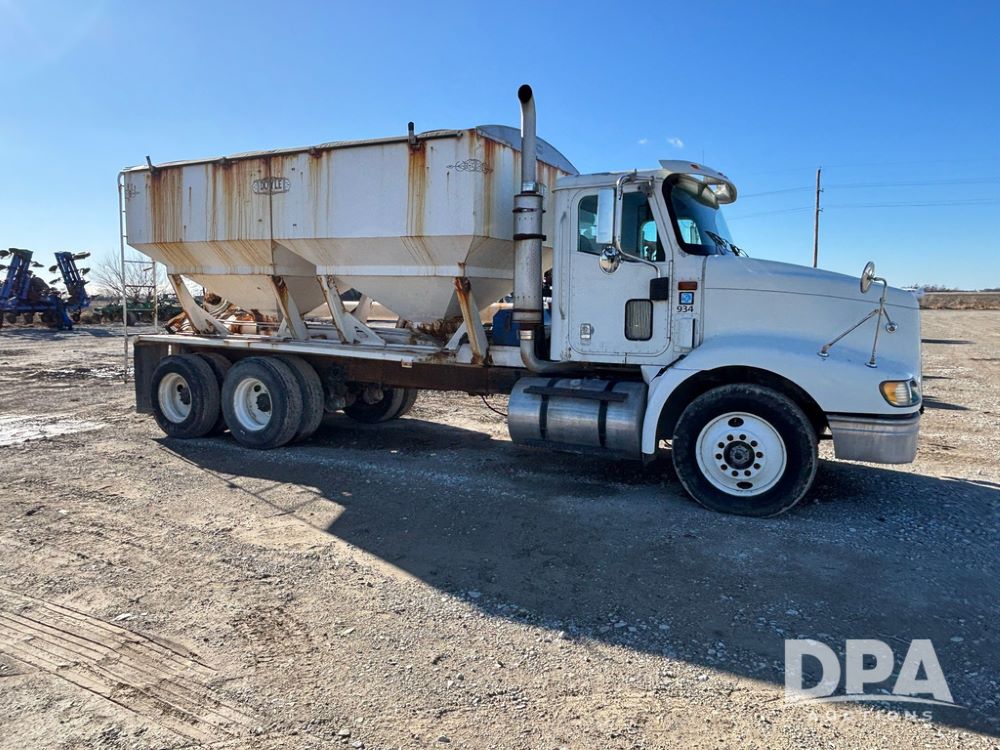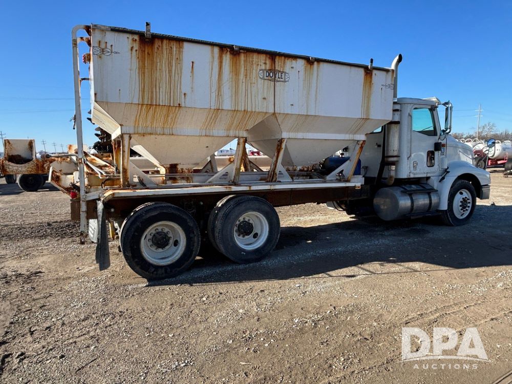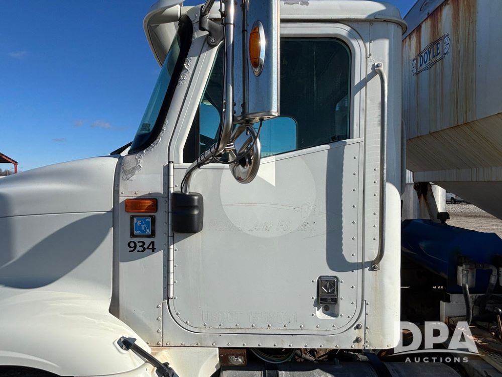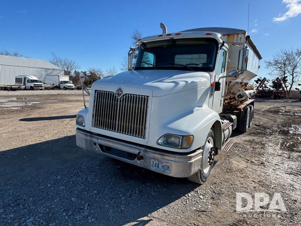 2001 IHC 9100i Dry Tender Truck (GP12521, Unit 934), Cat C-12 diesel engine, Eaton Fuller 10 speed transmission, air conditioning, heat, Am/Fm radio, cruise control, engine brake, tandem axle, full screw, air ride suspension, Doyle 16 ton dry tender box, side discharge auger, all hydraulic, roll over tarp, 285/75R24.5 tires, shows 537,809 miles.