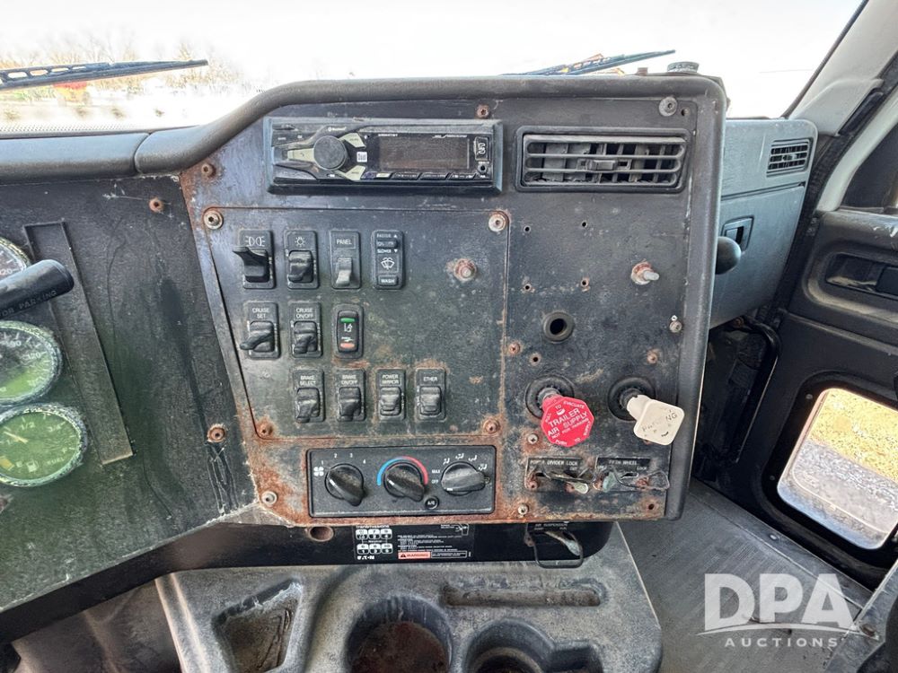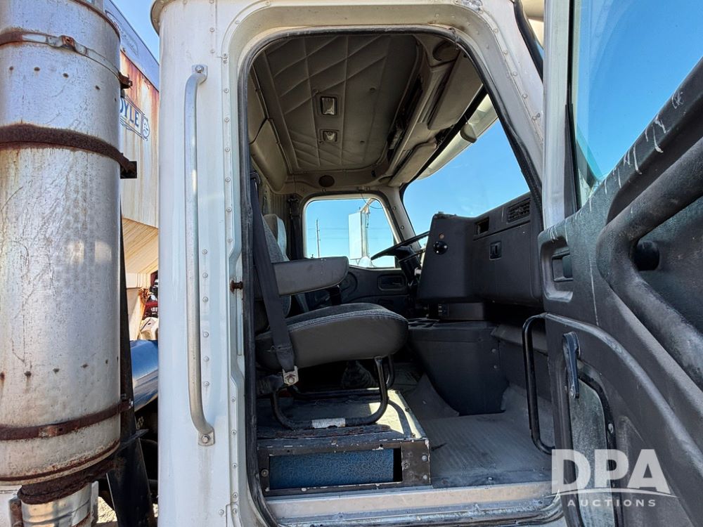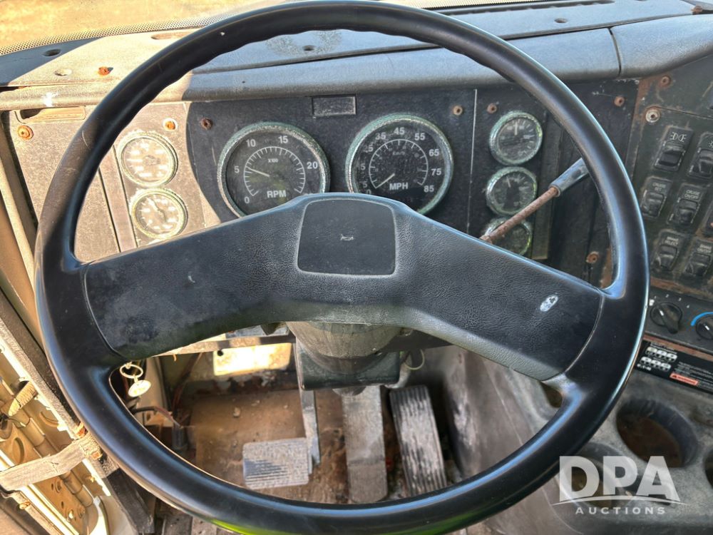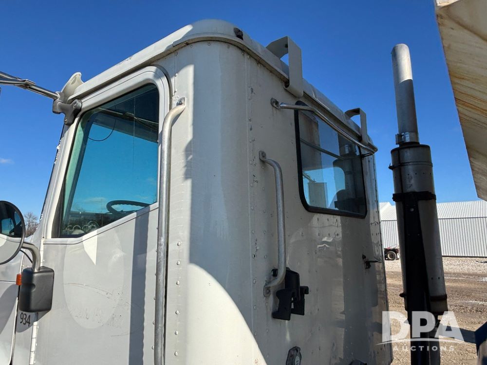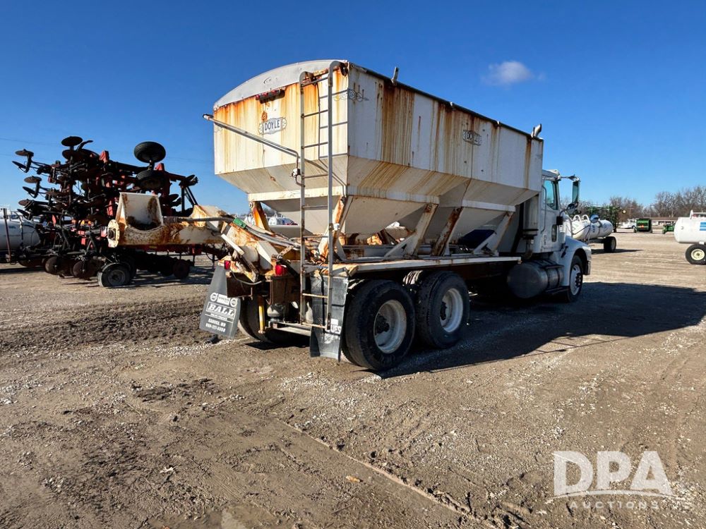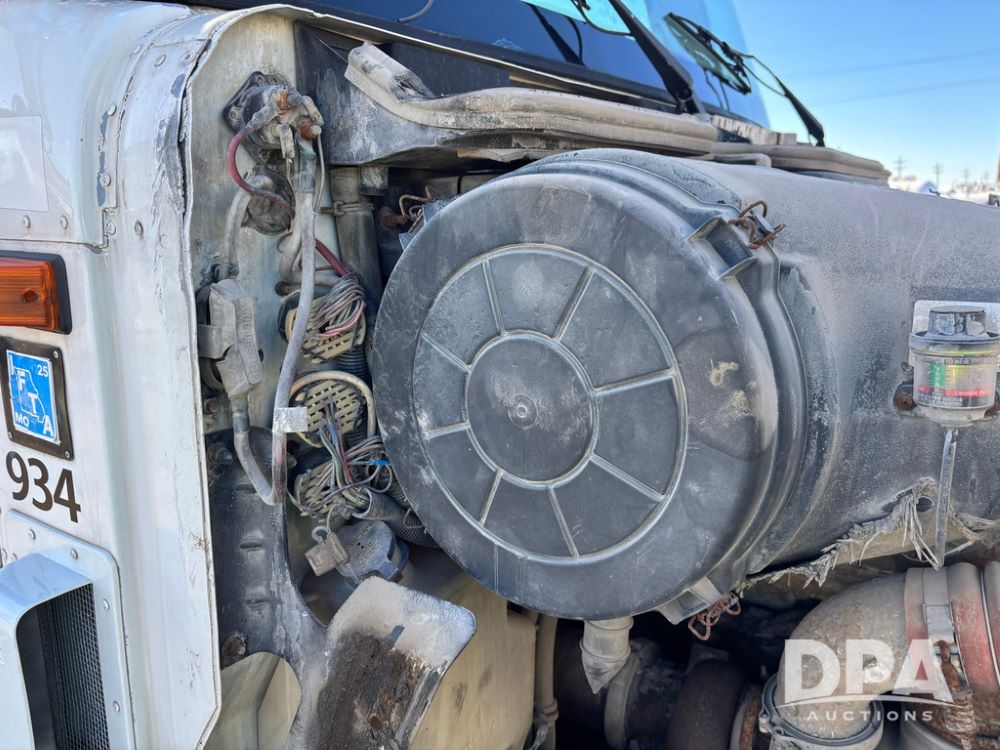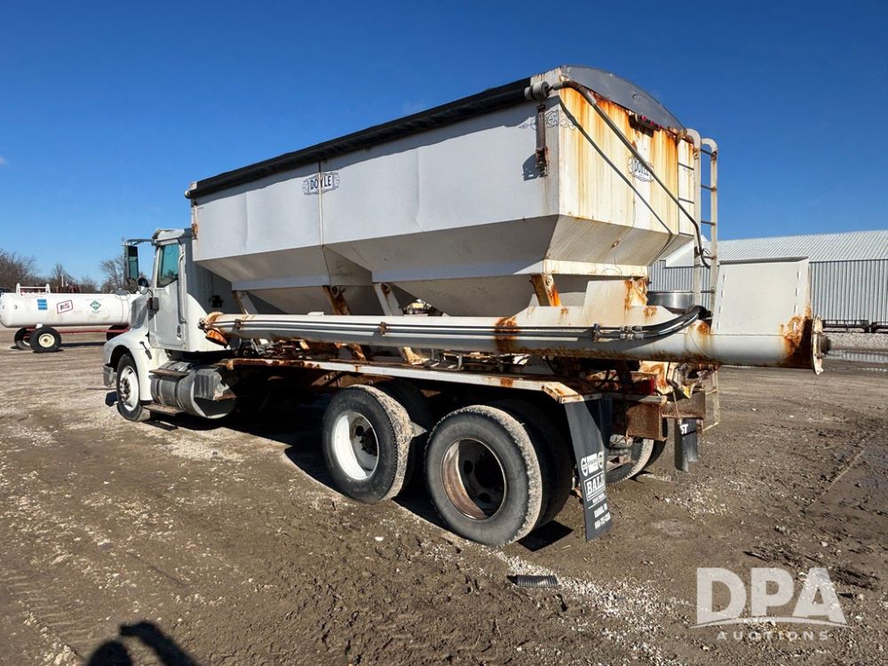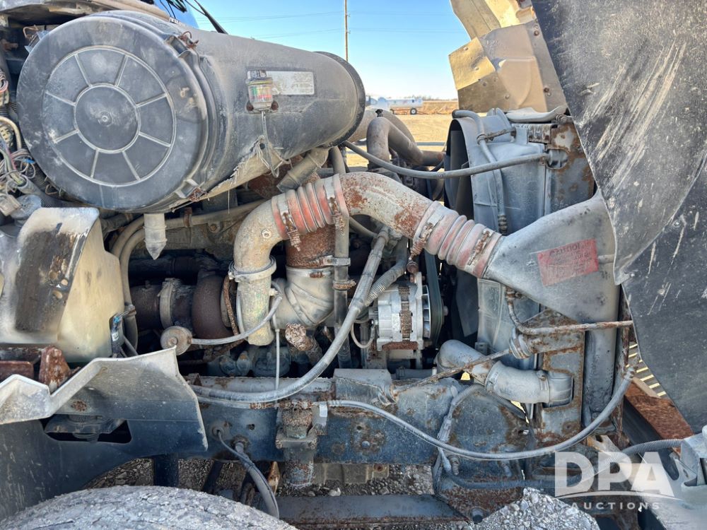 2001 IHC 9100i Dry Tender Truck (GP12521, Unit 934), Cat C-12 diesel engine, Eaton Fuller 10 speed transmission, air conditioning, heat, Am/Fm radio, cruise control, engine brake, tandem axle, full screw, air ride suspension, Doyle 16 ton dry tender box, side discharge auger, all hydraulic, roll over tarp, 285/75R24.5 tires, shows 537,809 miles.