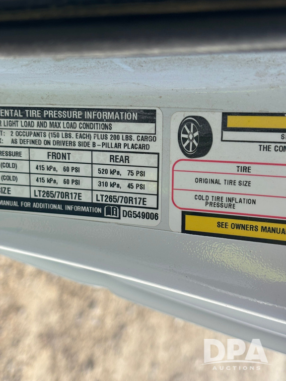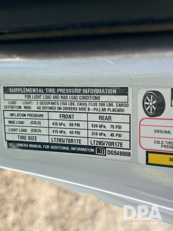 2013 Dodge Pickup (GP12529, Unit 828), 4x4, Hemi 5.7L gas engine, automatic transmission, air conditioning, heat, Am/Fm radio, cruise control, power windows & locks, running boards, rear hitch, LT285/70R17 tires, shows 120,220 miles.