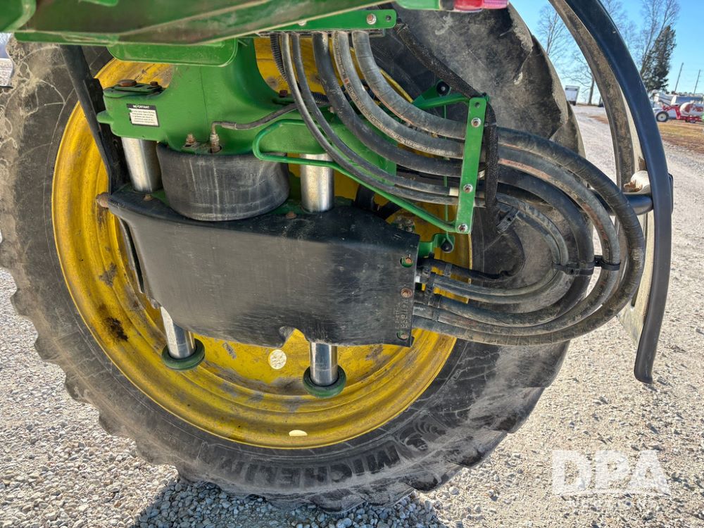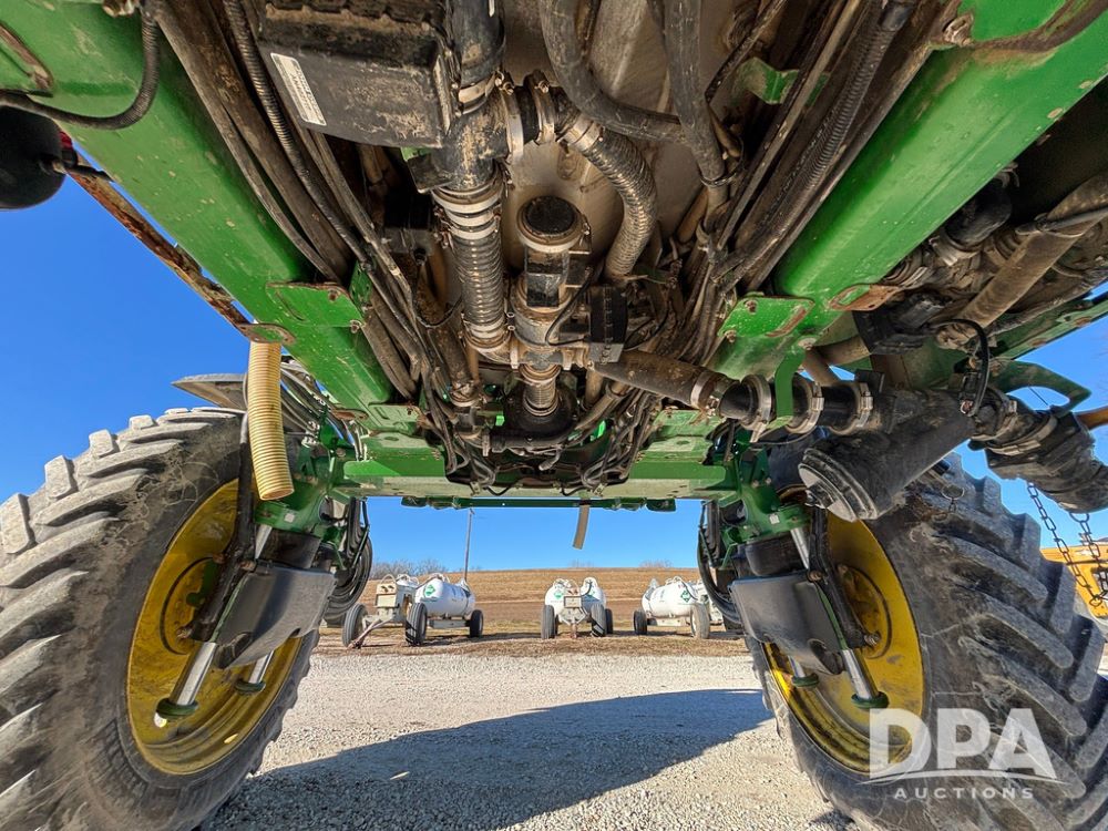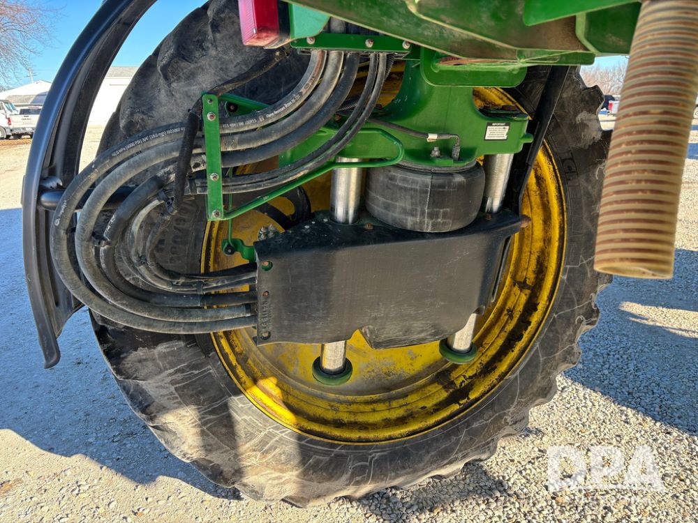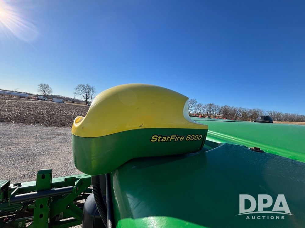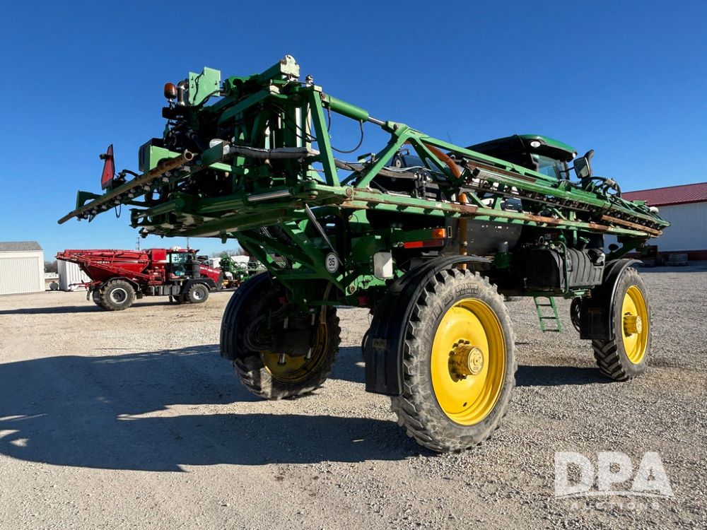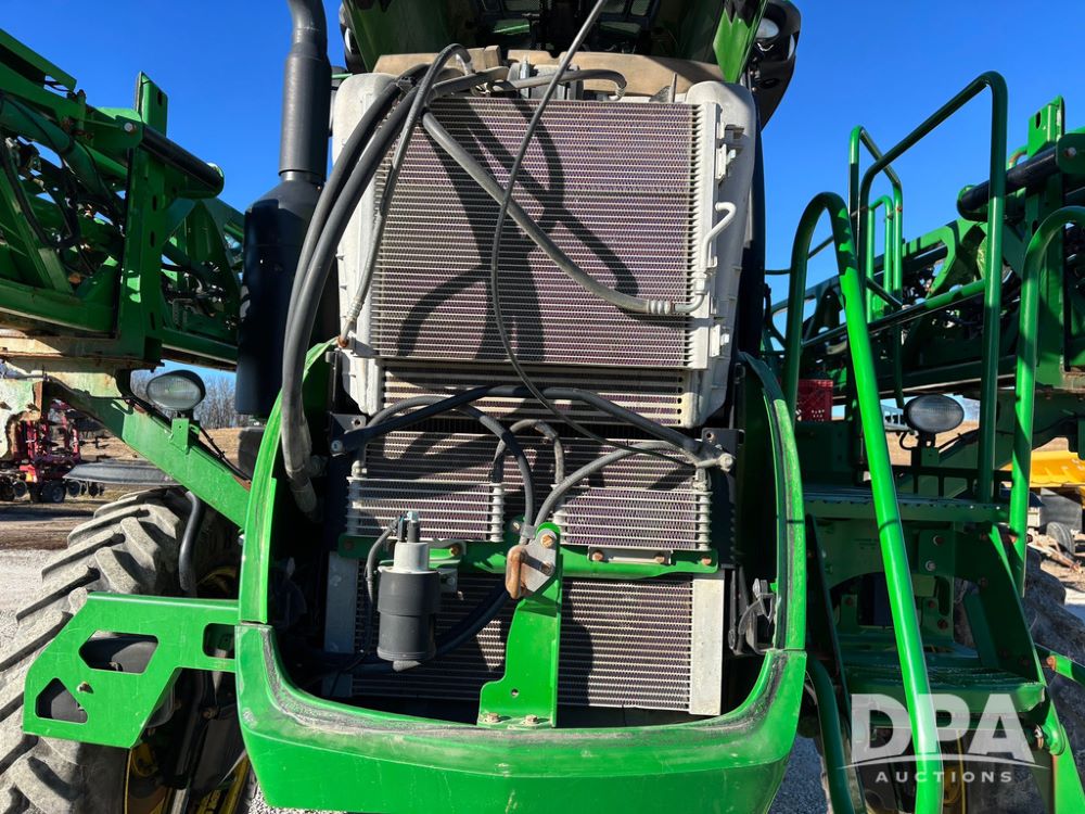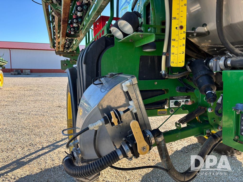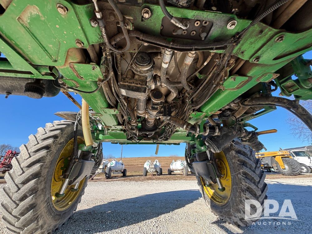2015 John Deere R4038 Sprayer (GP12538, Unit 362), John Deere diesel engine, hydrostatic transmission, air conditioning, heat, Am/Fm radio, beacon light, 1000 gallon stainless steel liquid system, 100' boom, rear poly rinse tank, stainless steel chemical inductor, automatic solution control, Mitas HC1000 & Michelin VF380/90R46 tires, fenders, John Deere StarFire 6000 globe, John Deere monitor, shows 4,050 hours.