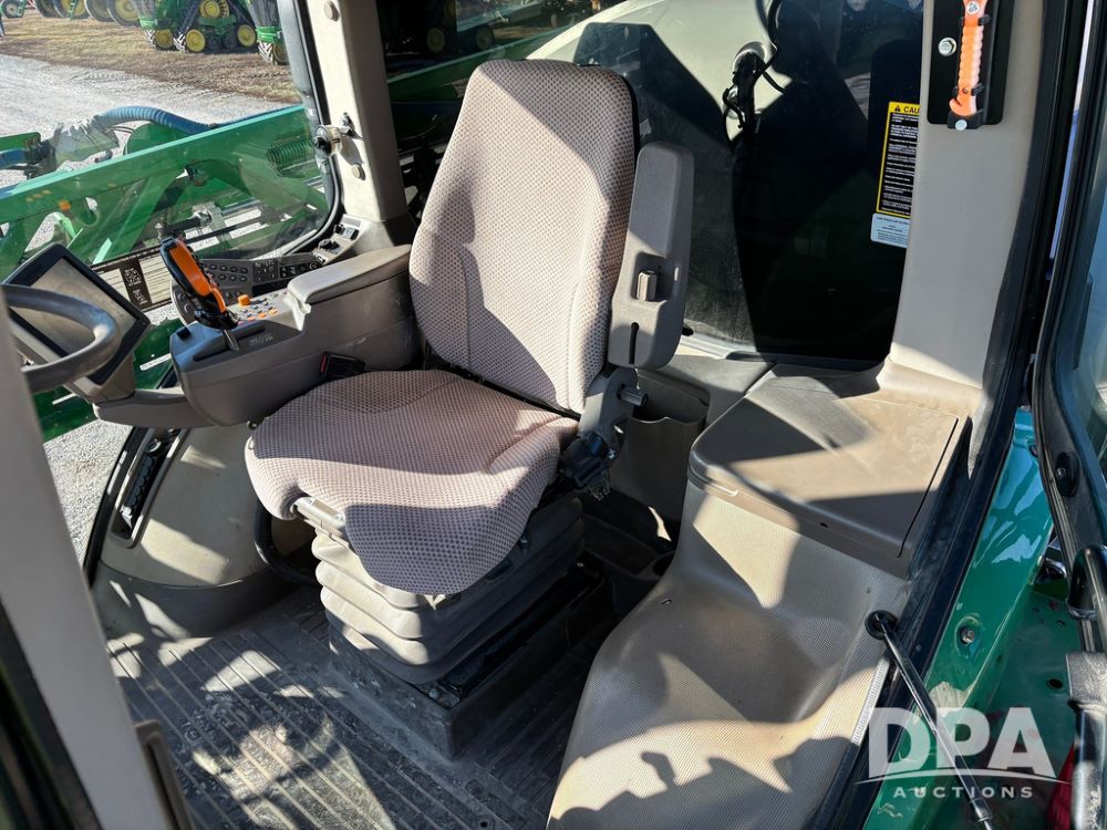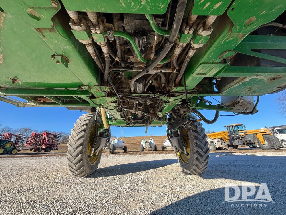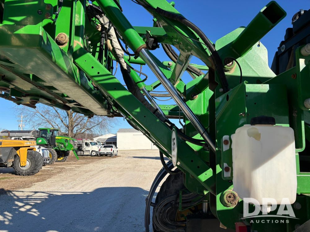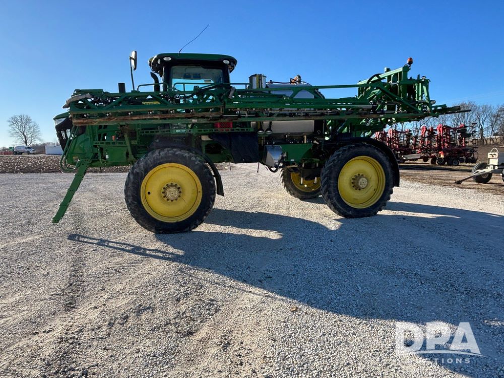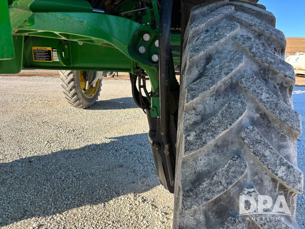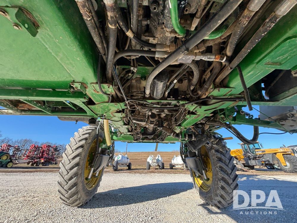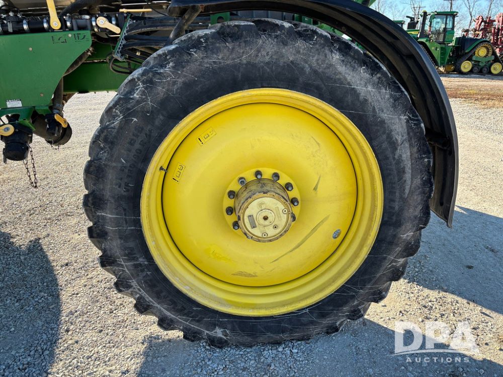 2015 John Deere R4038 Sprayer (GP12538, Unit 362), John Deere diesel engine, hydrostatic transmission, air conditioning, heat, Am/Fm radio, beacon light, 1000 gallon stainless steel liquid system, 100' boom, rear poly rinse tank, stainless steel chemical inductor, automatic solution control, Mitas HC1000 & Michelin VF380/90R46 tires, fenders, John Deere StarFire 6000 globe, John Deere monitor, shows 4,050 hours.