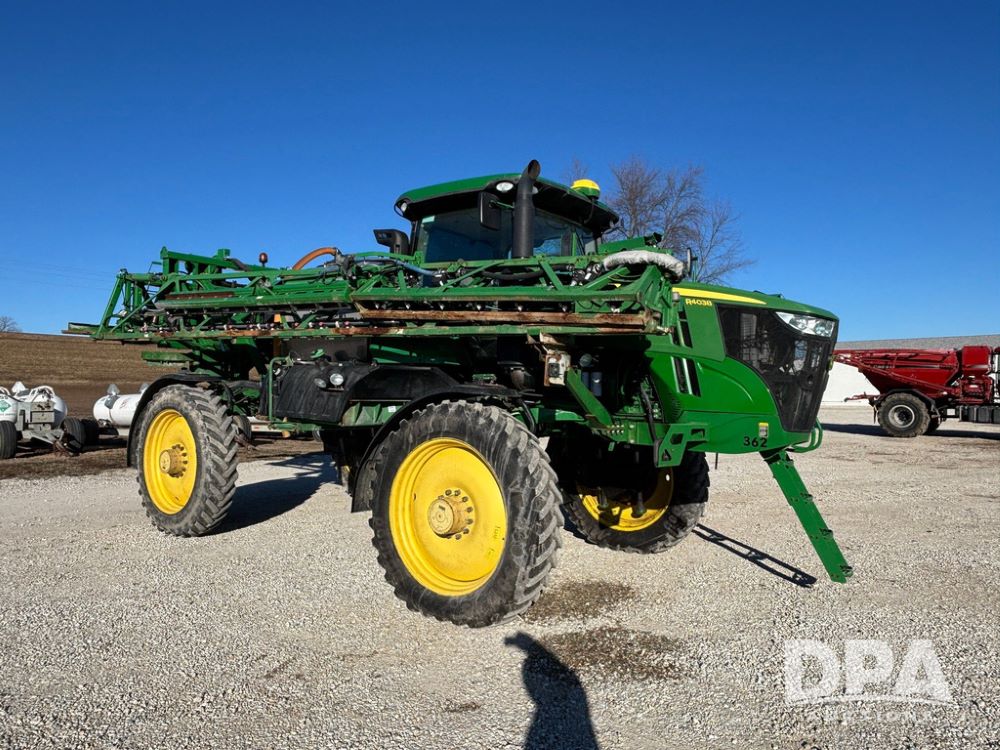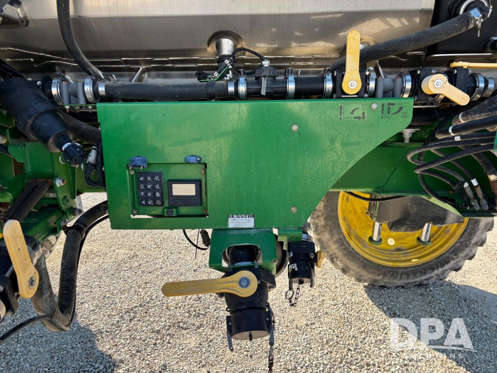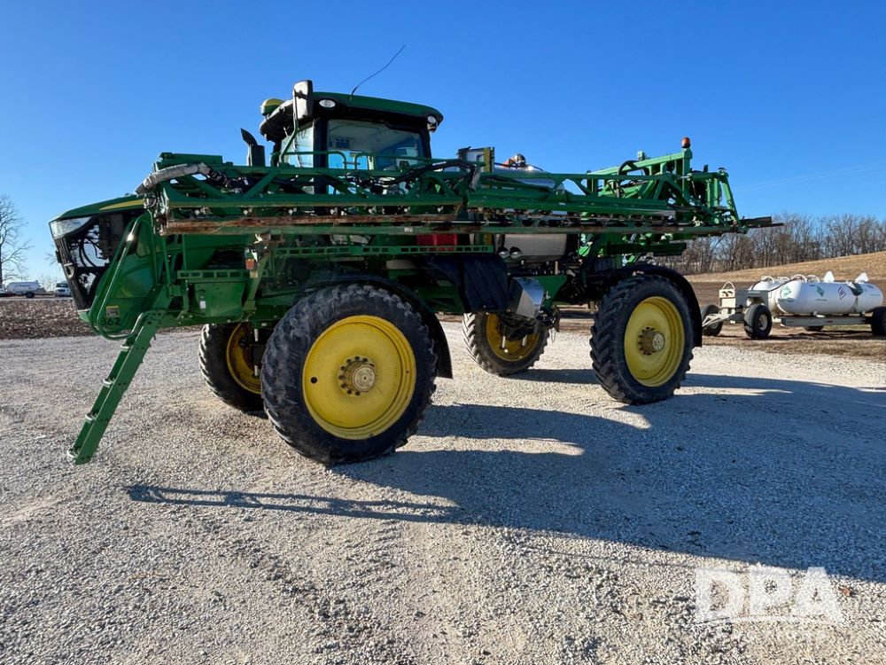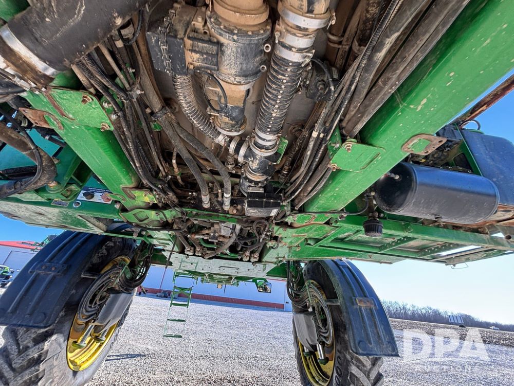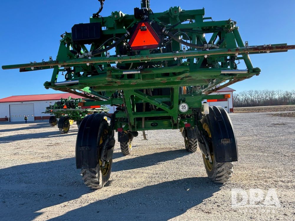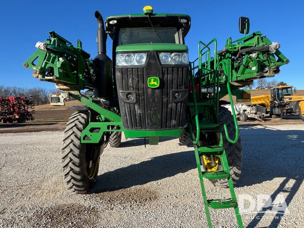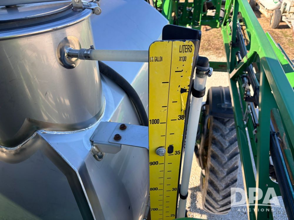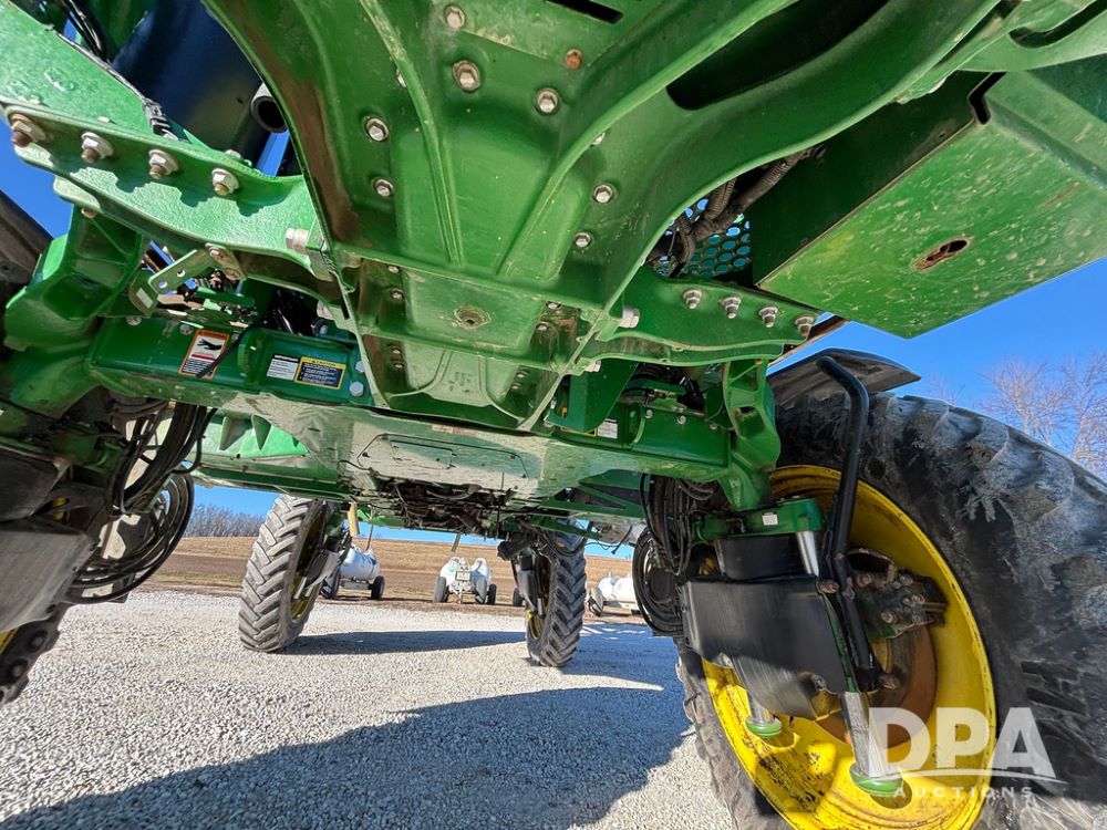 2015 John Deere R4038 Sprayer (GP12538, Unit 362), John Deere diesel engine, hydrostatic transmission, air conditioning, heat, Am/Fm radio, beacon light, 1000 gallon stainless steel liquid system, 100' boom, rear poly rinse tank, stainless steel chemical inductor, automatic solution control, Mitas HC1000 & Michelin VF380/90R46 tires, fenders, John Deere StarFire 6000 globe, John Deere monitor, shows 4,050 hours.