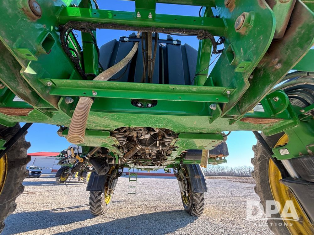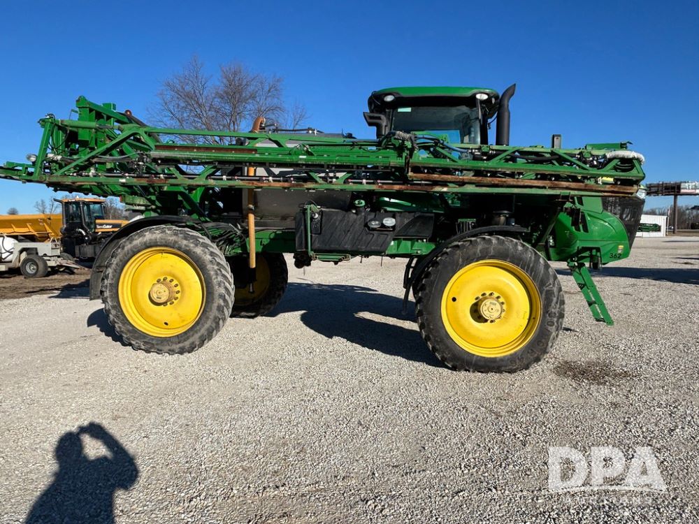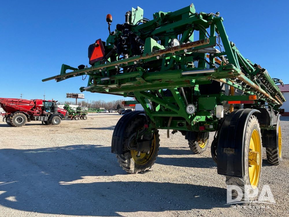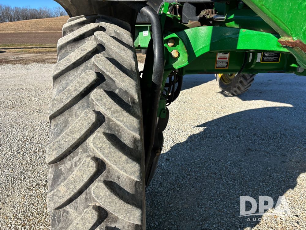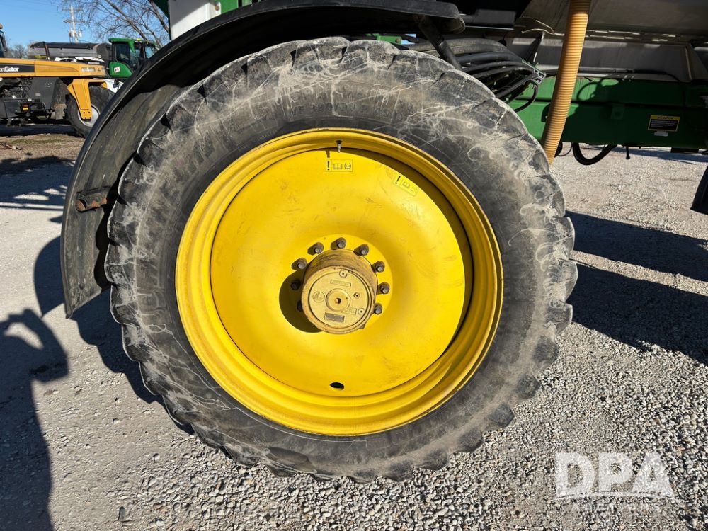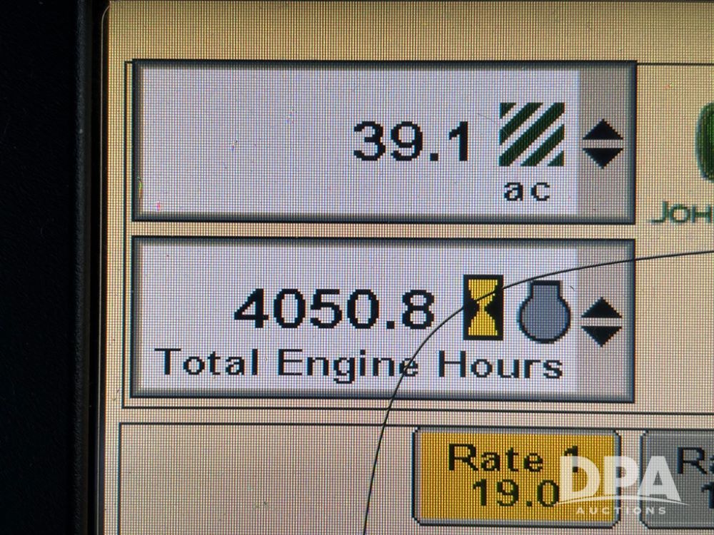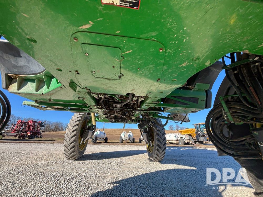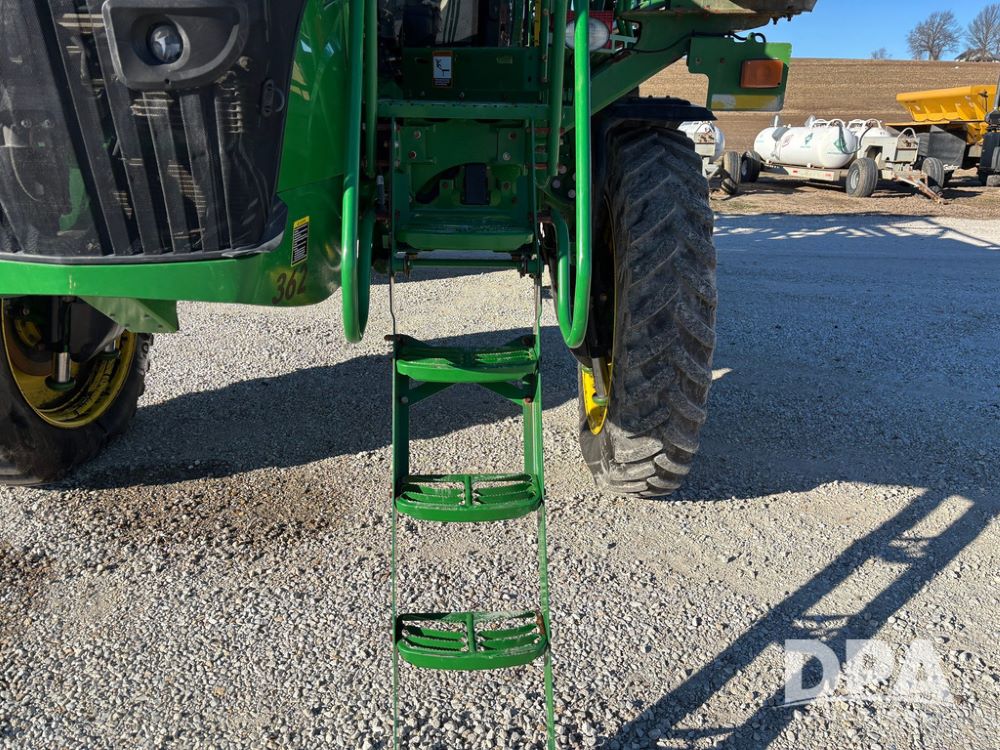 2015 John Deere R4038 Sprayer (GP12538, Unit 362), John Deere diesel engine, hydrostatic transmission, air conditioning, heat, Am/Fm radio, beacon light, 1000 gallon stainless steel liquid system, 100' boom, rear poly rinse tank, stainless steel chemical inductor, automatic solution control, Mitas HC1000 & Michelin VF380/90R46 tires, fenders, John Deere StarFire 6000 globe, John Deere monitor, shows 4,050 hours.