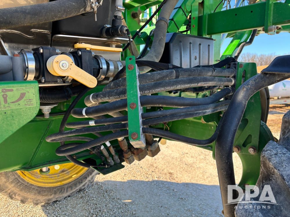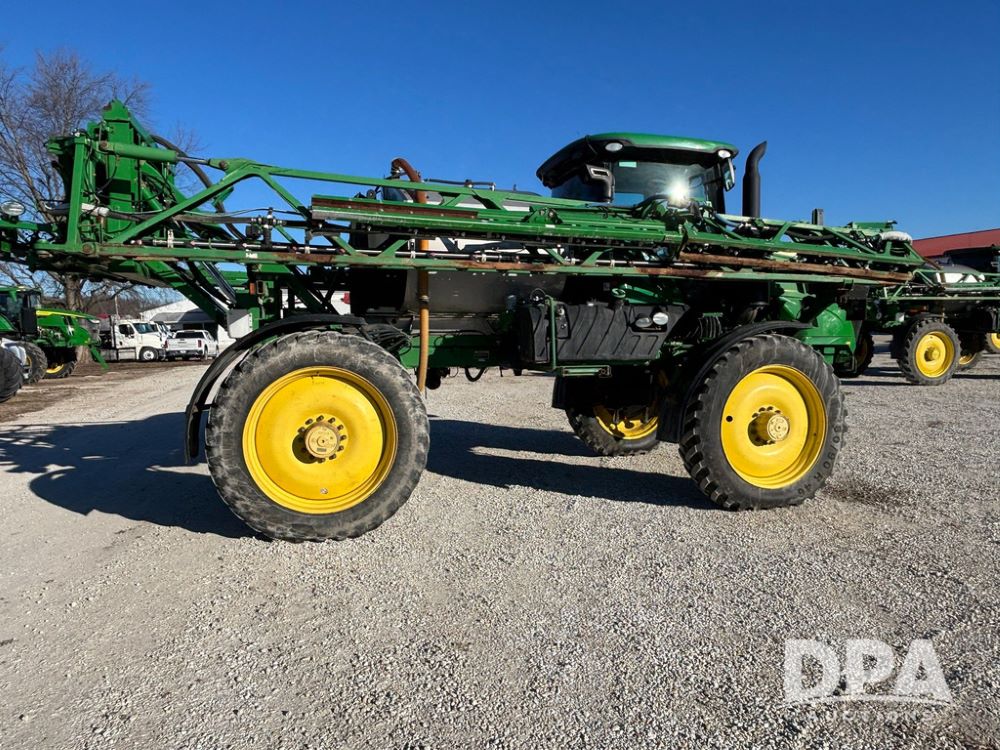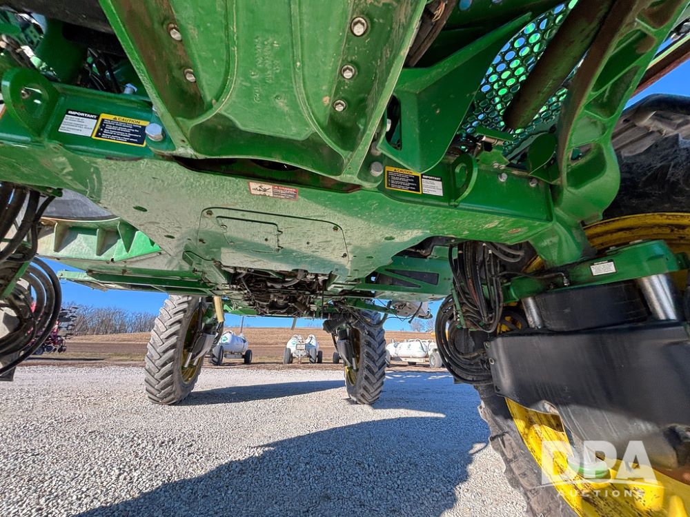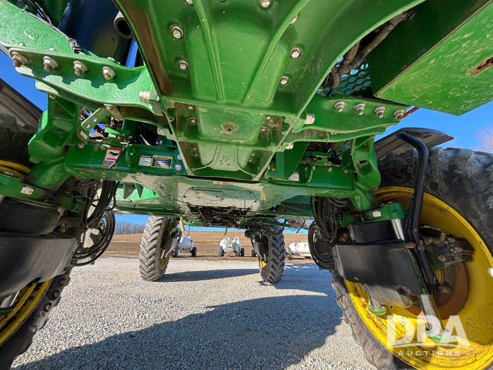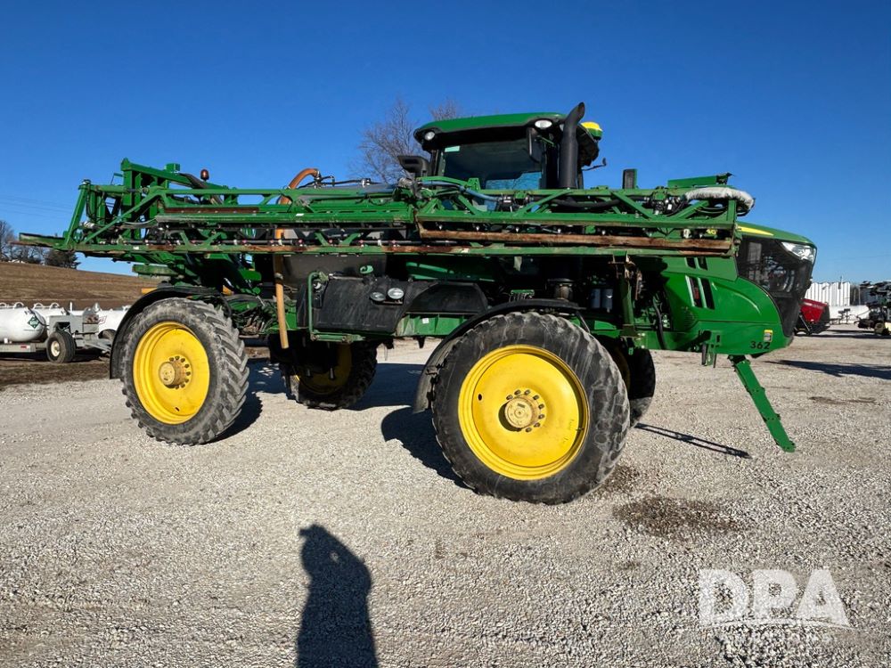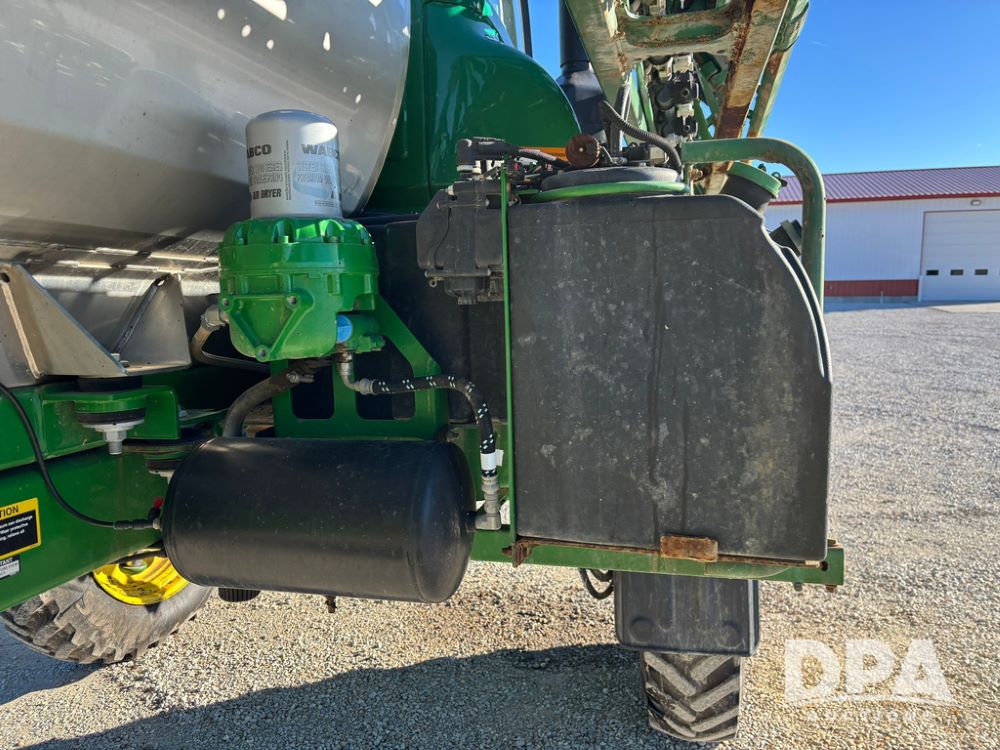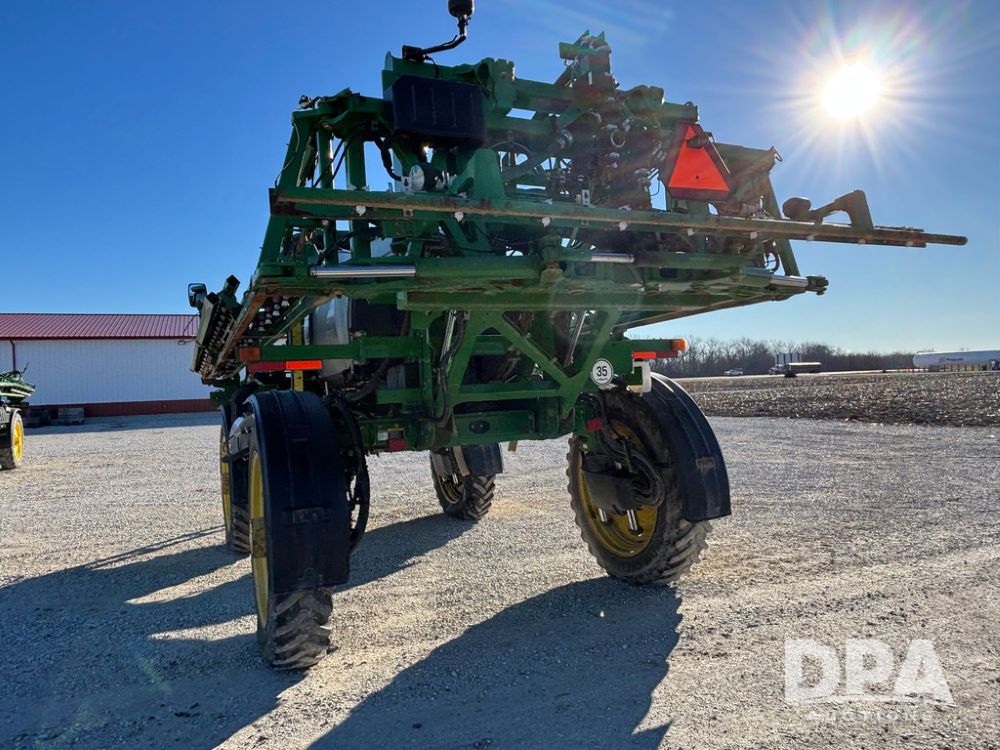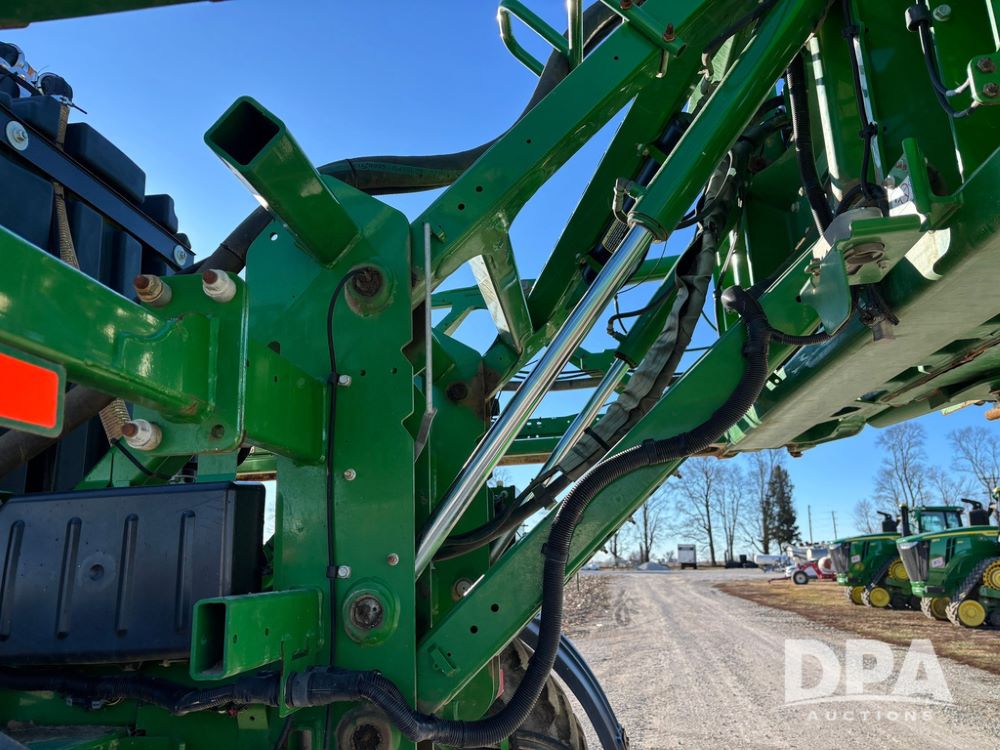 2015 John Deere R4038 Sprayer (GP12538, Unit 362), John Deere diesel engine, hydrostatic transmission, air conditioning, heat, Am/Fm radio, beacon light, 1000 gallon stainless steel liquid system, 100' boom, rear poly rinse tank, stainless steel chemical inductor, automatic solution control, Mitas HC1000 & Michelin VF380/90R46 tires, fenders, John Deere StarFire 6000 globe, John Deere monitor, shows 4,050 hours.