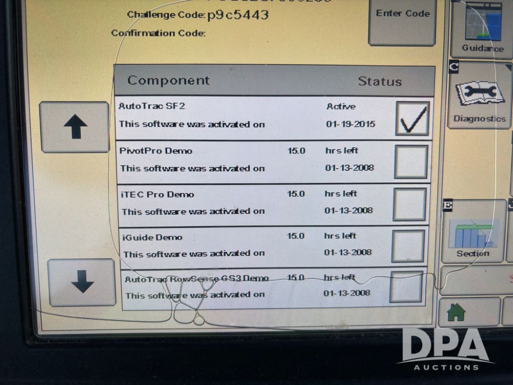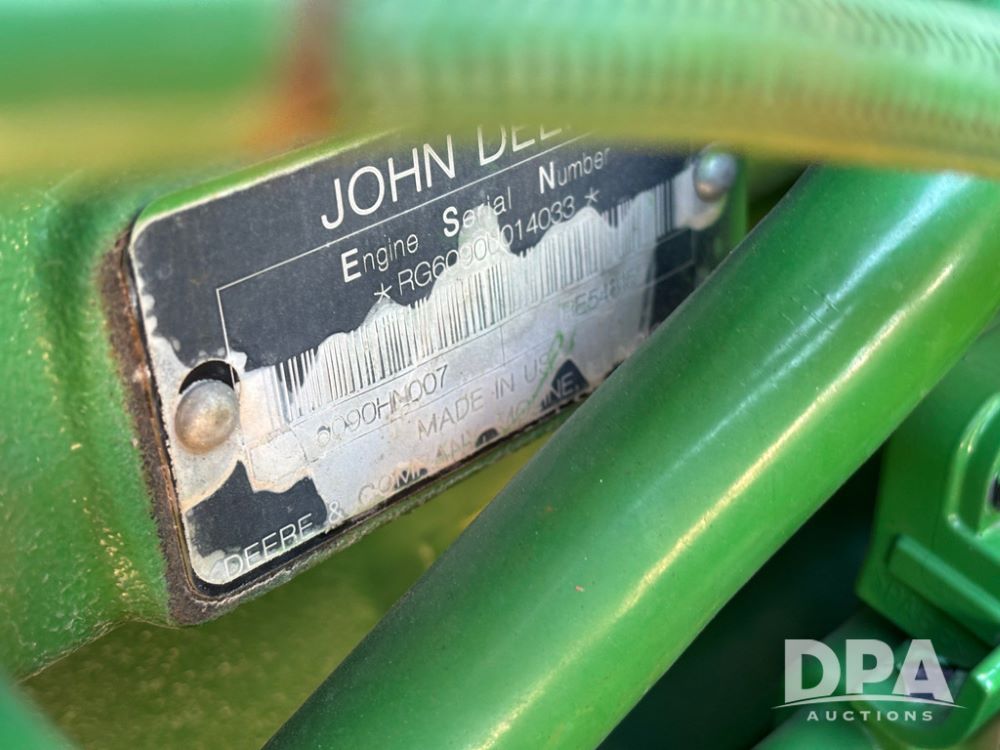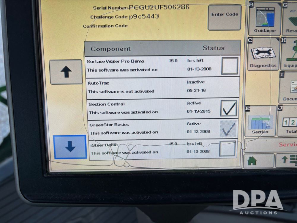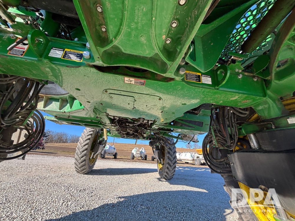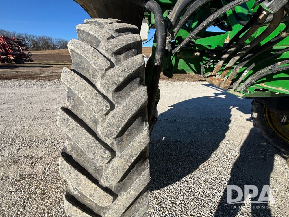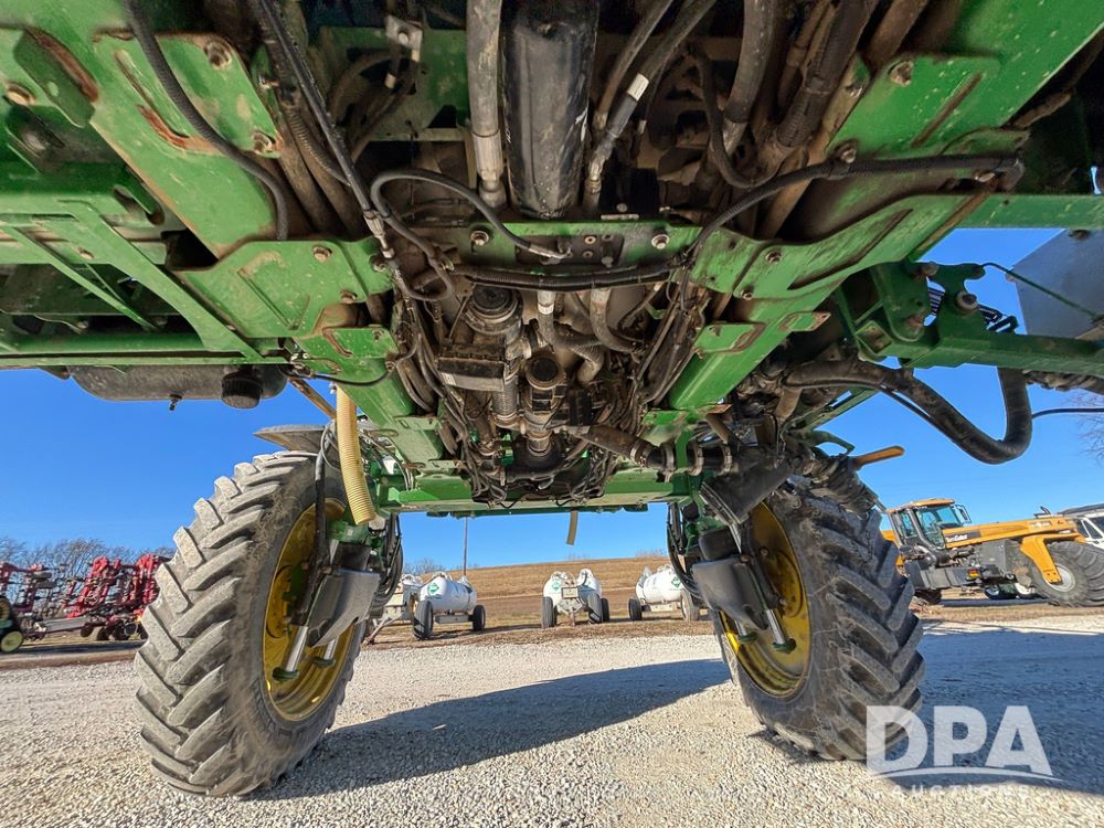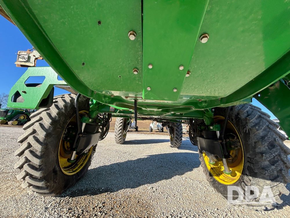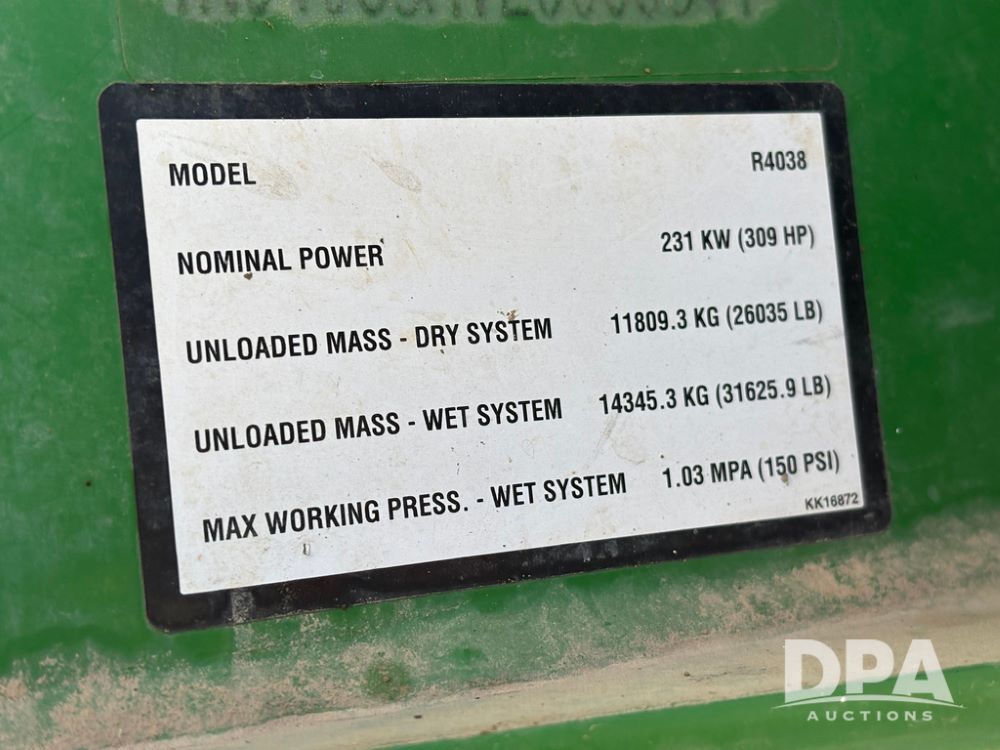 2015 John Deere R4038 Sprayer (GP12538, Unit 362), John Deere diesel engine, hydrostatic transmission, air conditioning, heat, Am/Fm radio, beacon light, 1000 gallon stainless steel liquid system, 100' boom, rear poly rinse tank, stainless steel chemical inductor, automatic solution control, Mitas HC1000 & Michelin VF380/90R46 tires, fenders, John Deere StarFire 6000 globe, John Deere monitor, shows 4,050 hours.