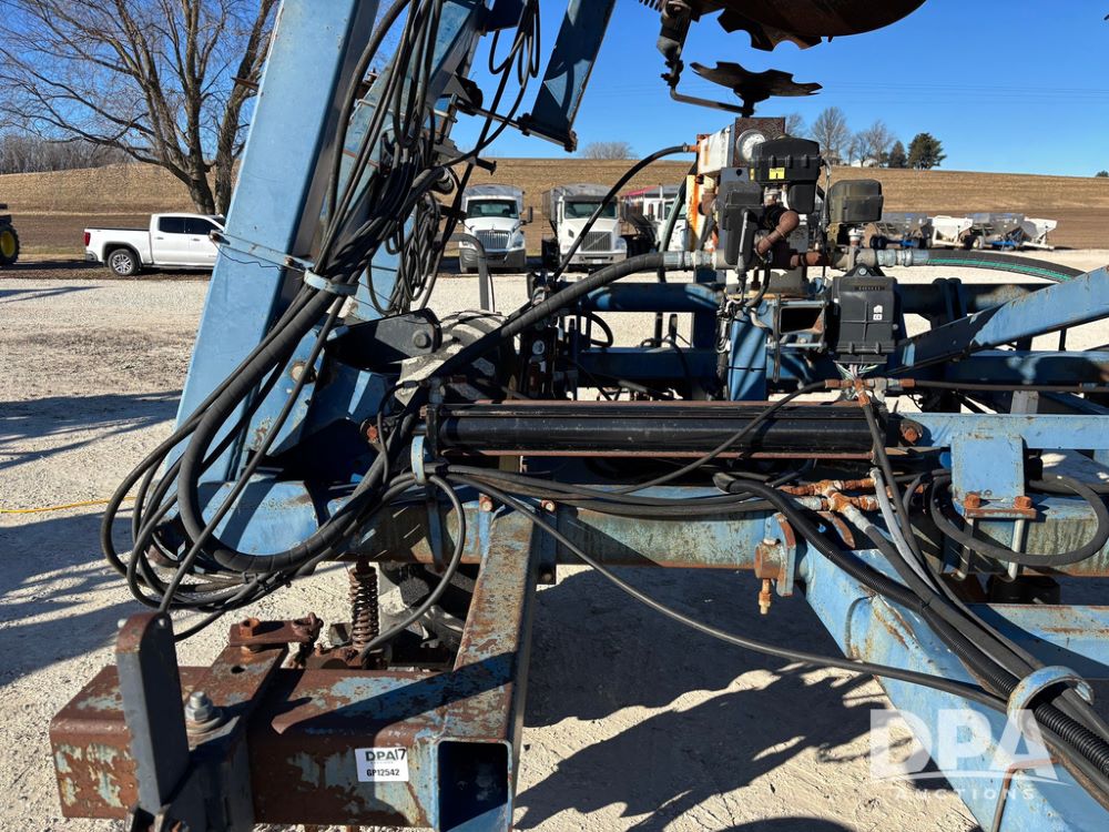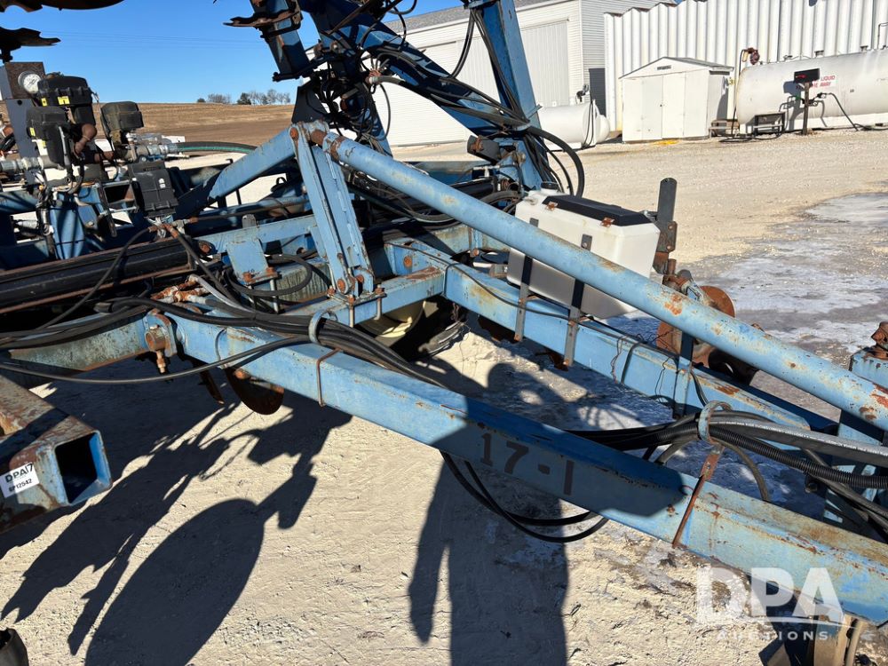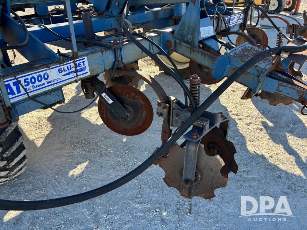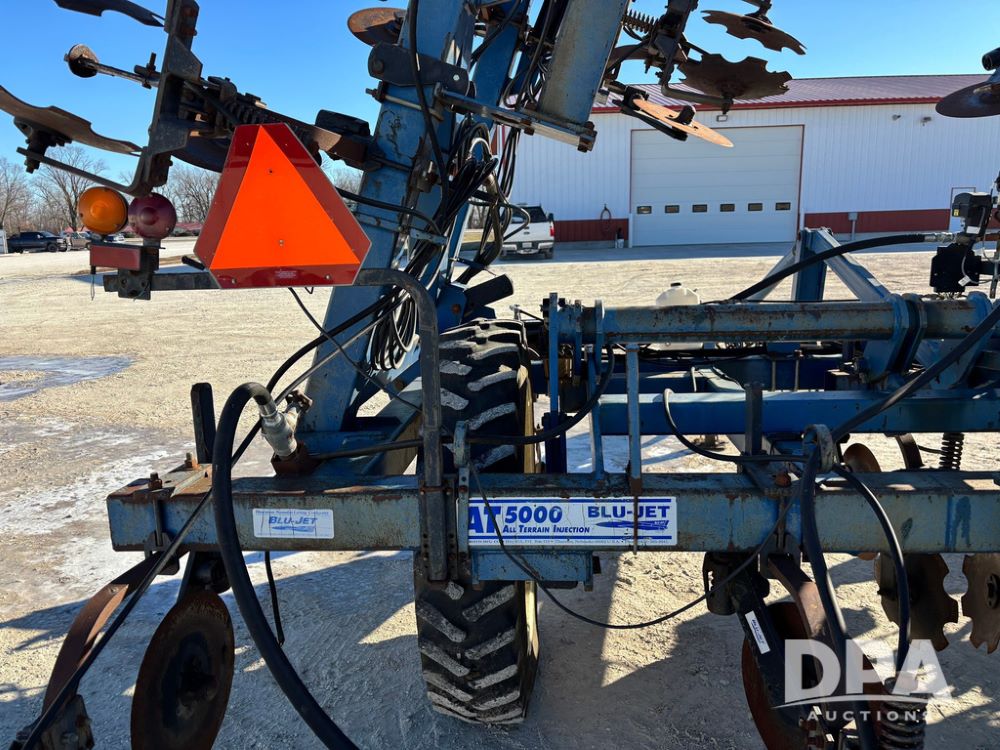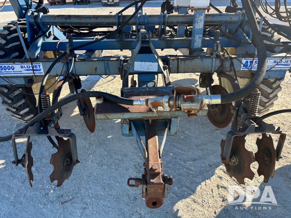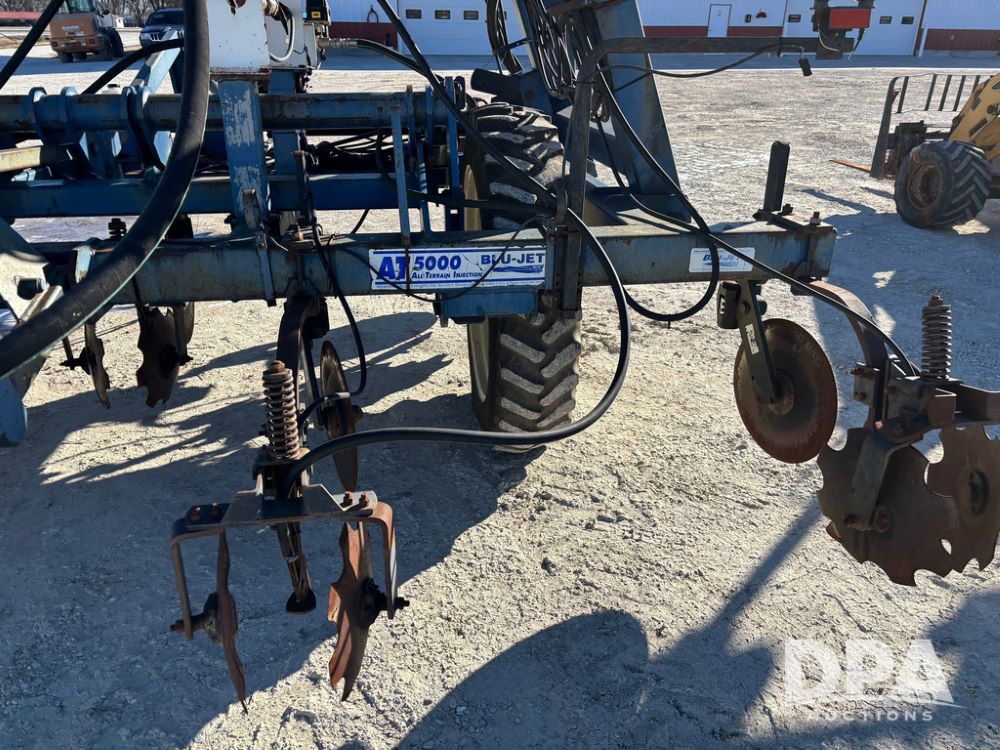 Blu Jet AT5000 NH3 Tool Bar (GP12542, Unit 17-1), Blu Jet AT5000 17 knife pull type tool bar, coulters, notched double disc sealers, Raven Super cooler, hydraulic wings, rear hitch, Firestone tires.
