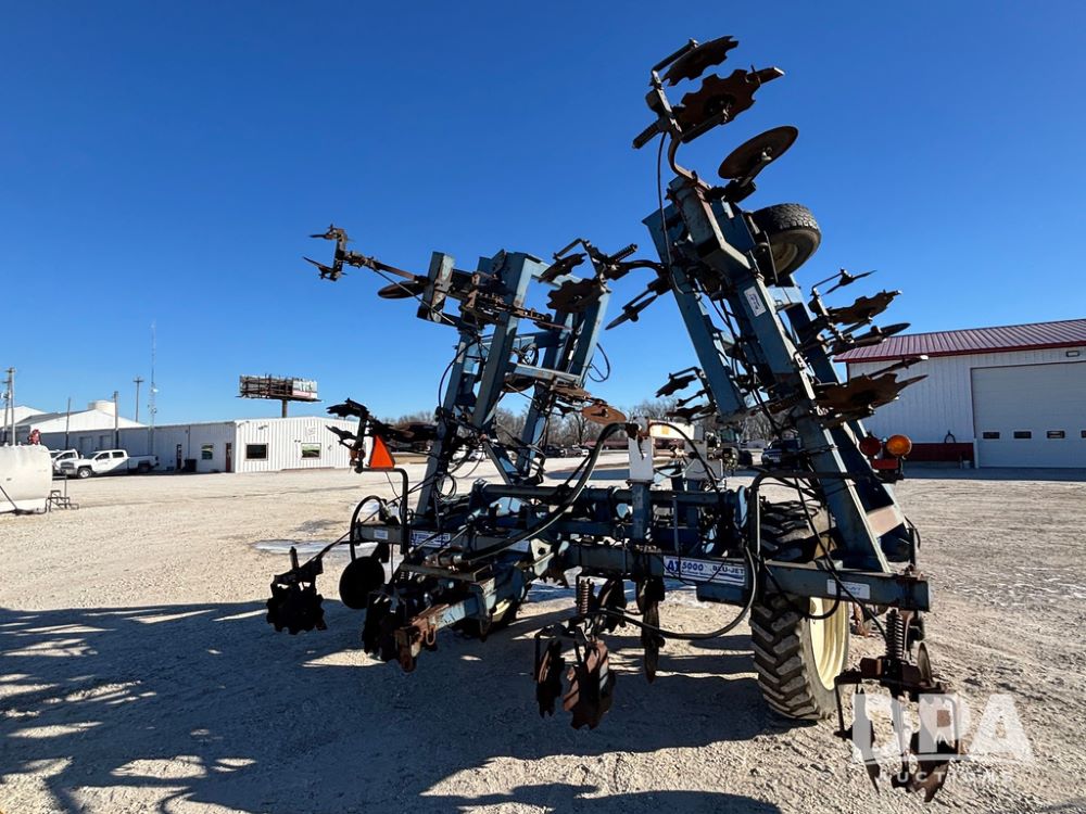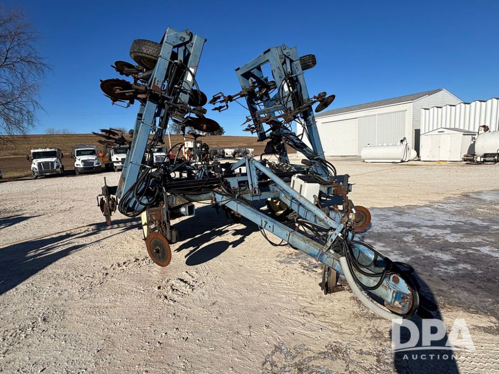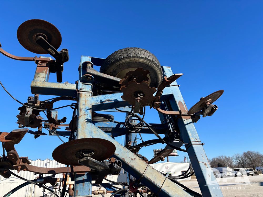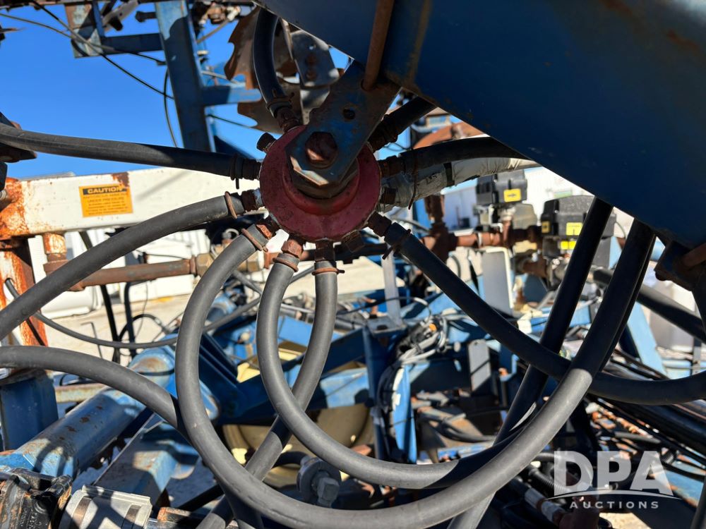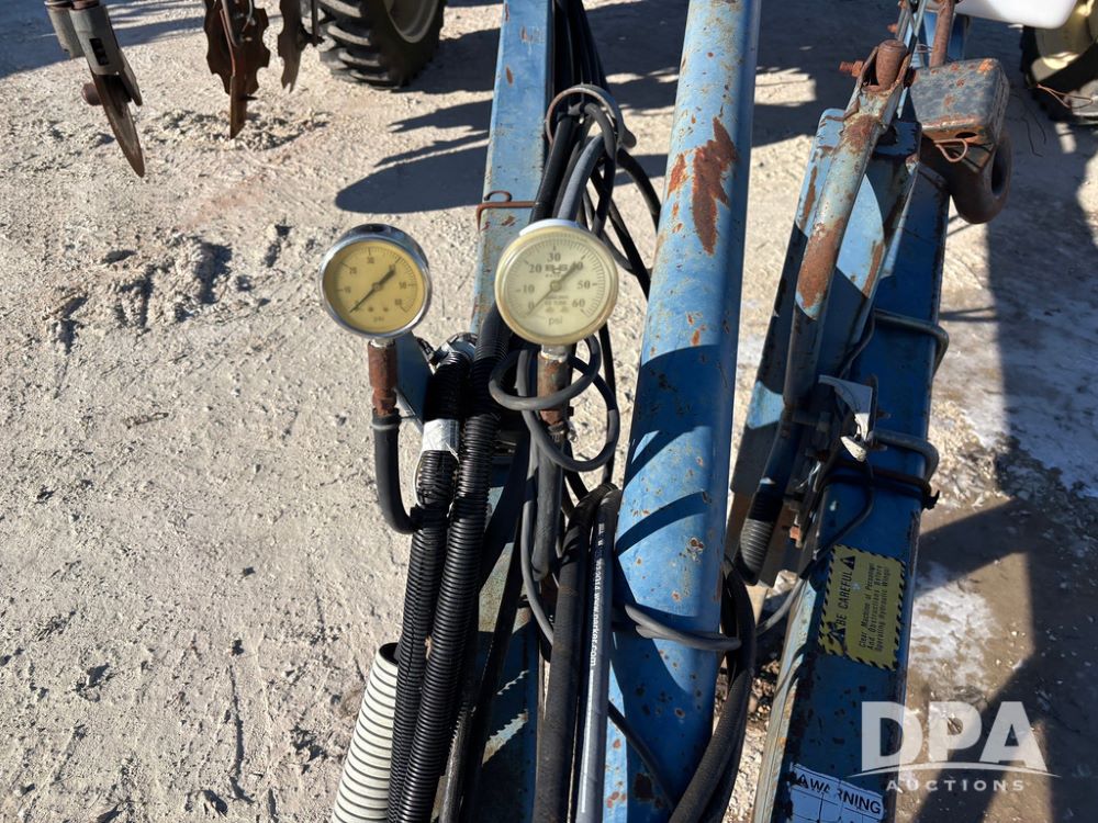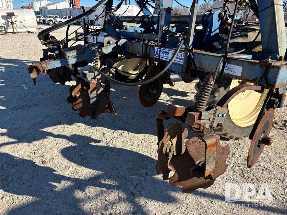 Blu Jet AT5000 NH3 Tool Bar (GP12542, Unit 17-1), Blu Jet AT5000 17 knife pull type tool bar, coulters, notched double disc sealers, Raven Super cooler, hydraulic wings, rear hitch, Firestone tires.