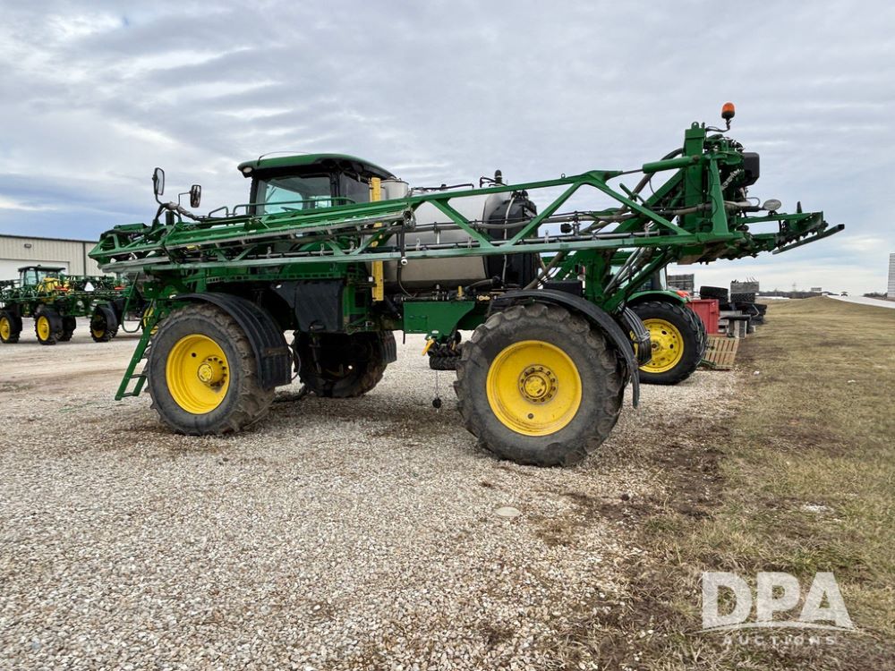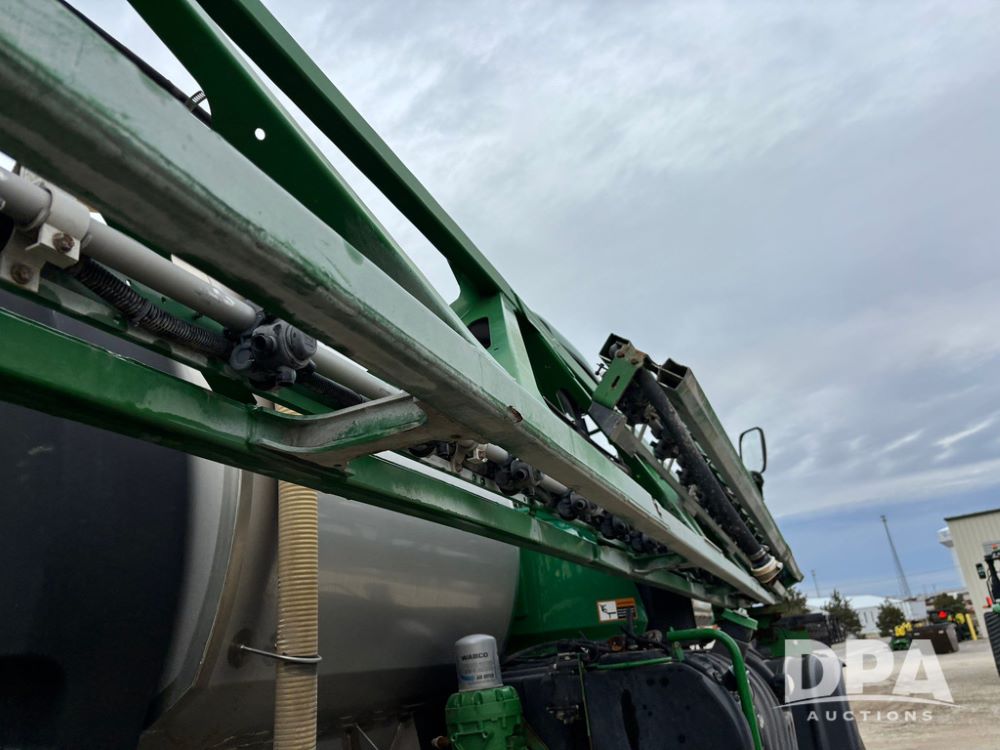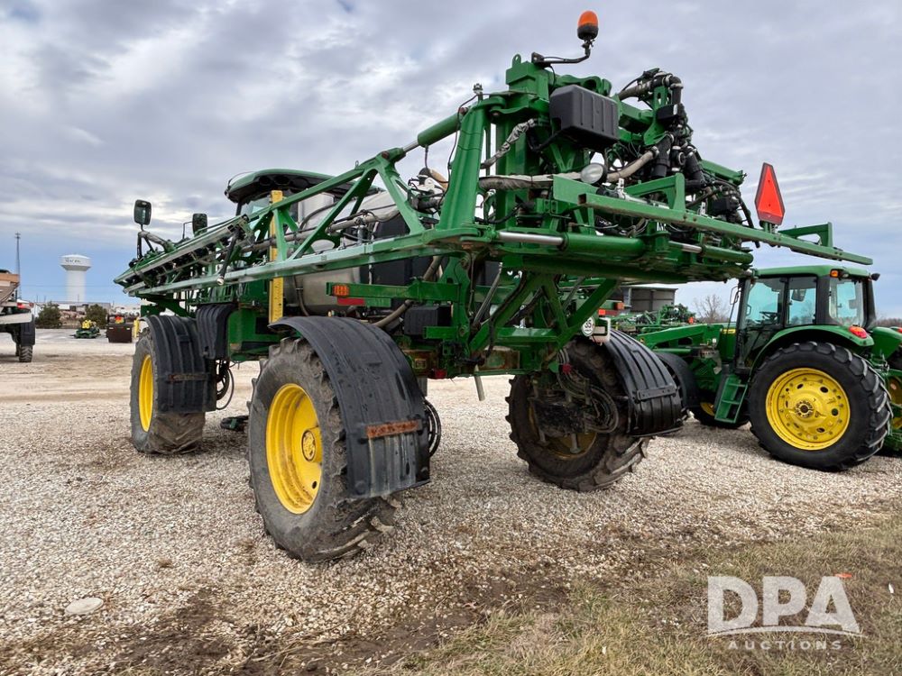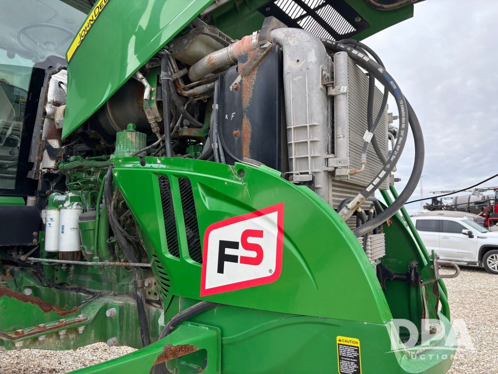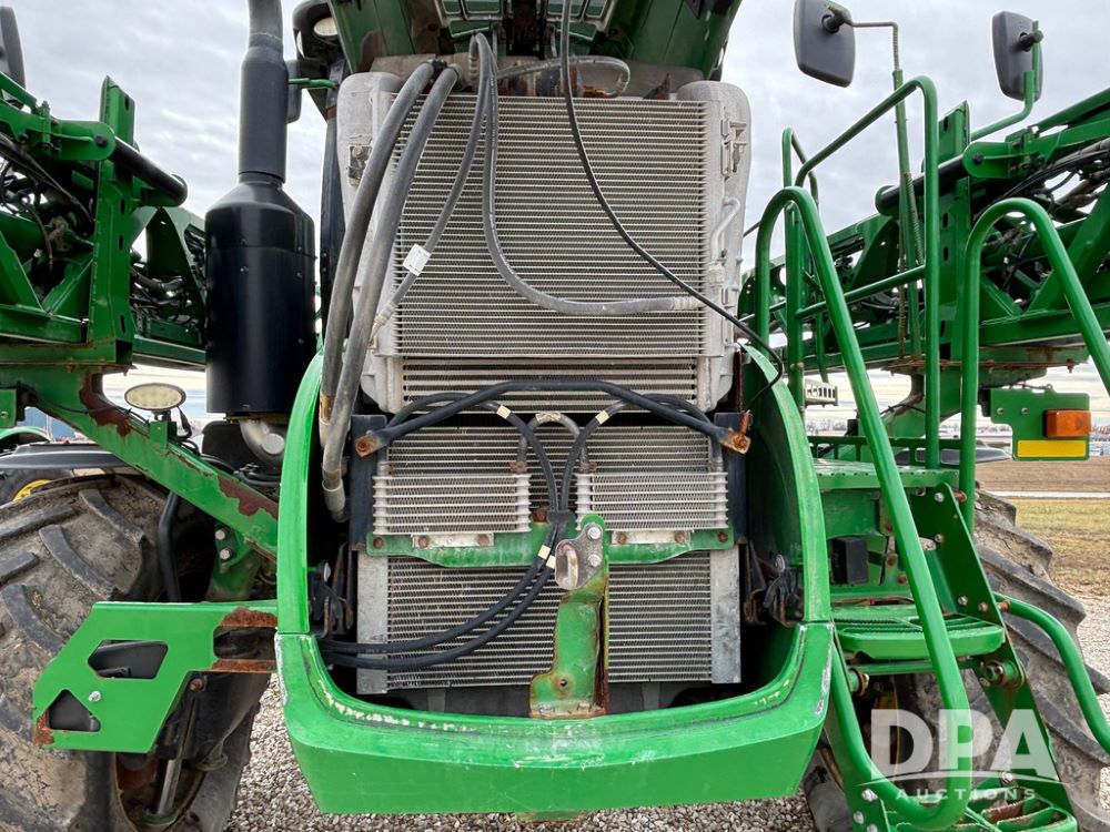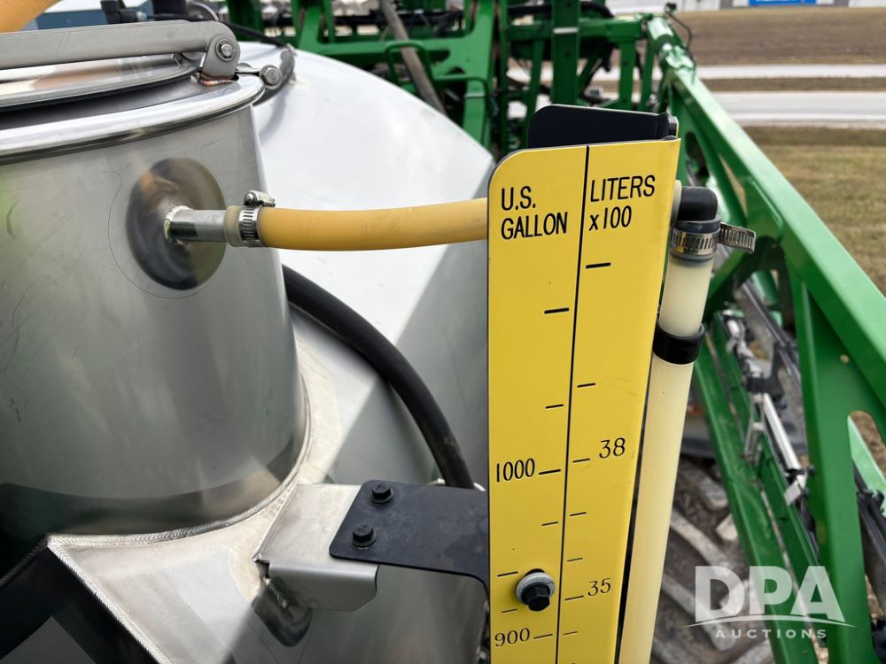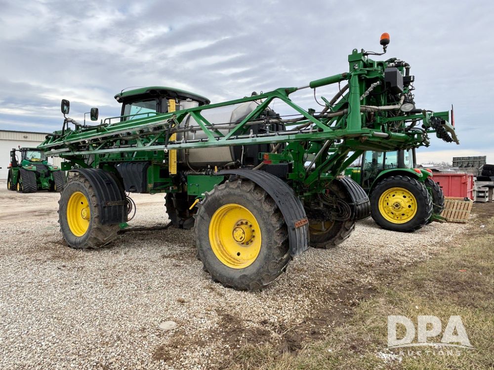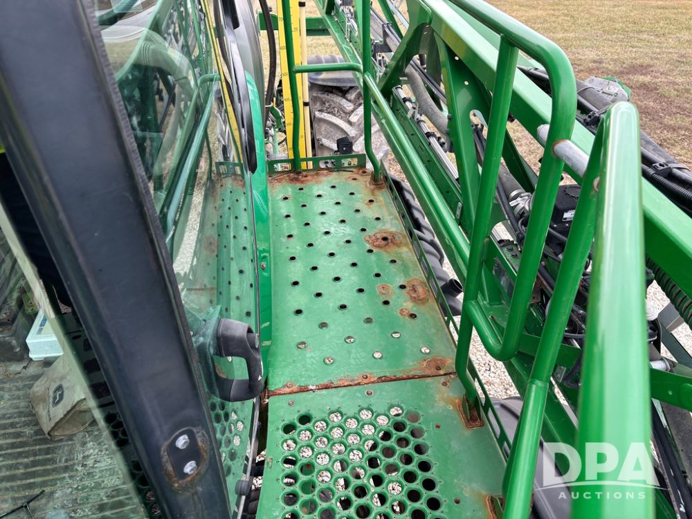 2014 John Deere R4038 Sprayer (GP12503, Unit 279), John Deere diesel engine (S/N RG6090U003536), hydrostatic transmission, air conditioning, heat, Am/Fm radio, leather seat, buddy seat, beacon light, 1000 gallon stainless steel liquid system, 100' boom, rear poly rinse tank, automatic solution control, front fill, Mitas AC65 650/65R38 flotation tires, fenders, John Deere monitor, approx. 4,366 hours.