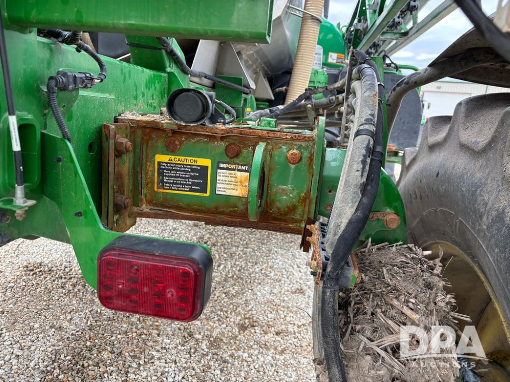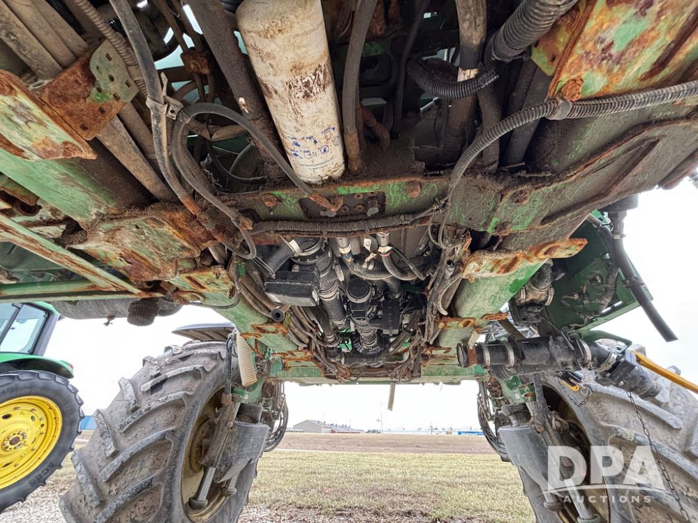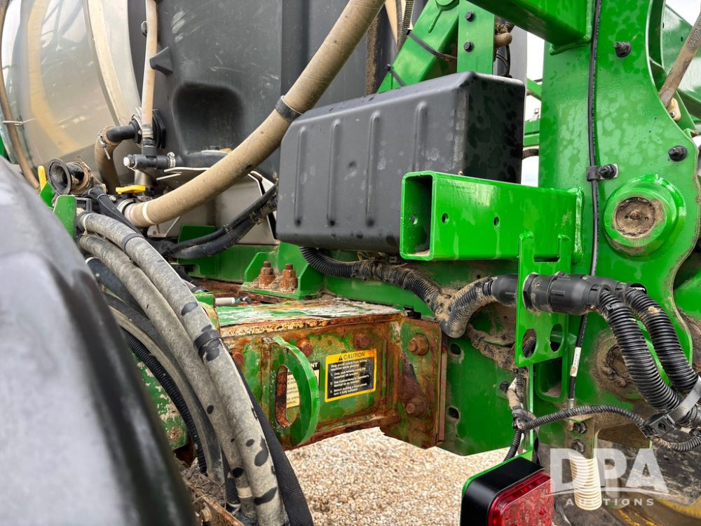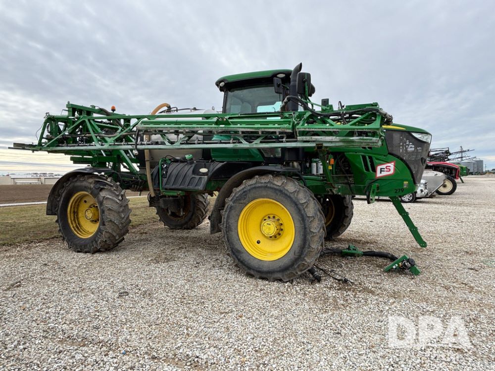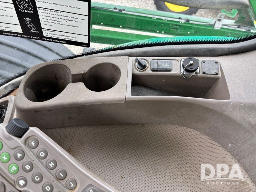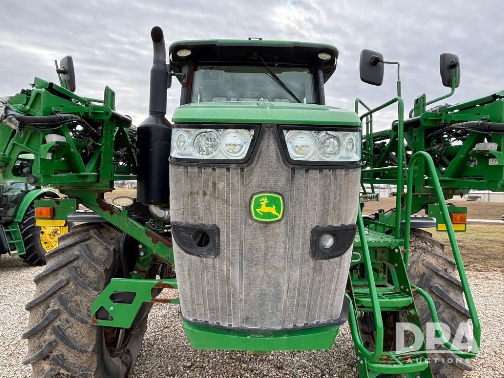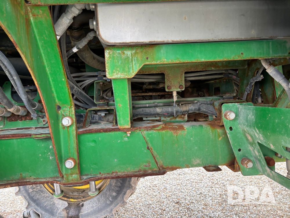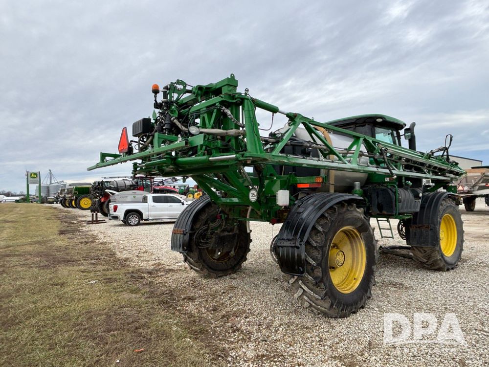 2014 John Deere R4038 Sprayer (GP12503, Unit 279), John Deere diesel engine (S/N RG6090U003536), hydrostatic transmission, air conditioning, heat, Am/Fm radio, leather seat, buddy seat, beacon light, 1000 gallon stainless steel liquid system, 100' boom, rear poly rinse tank, automatic solution control, front fill, Mitas AC65 650/65R38 flotation tires, fenders, John Deere monitor, approx. 4,366 hours.
