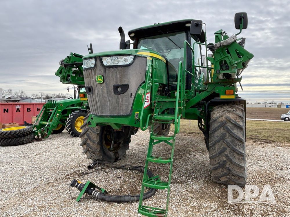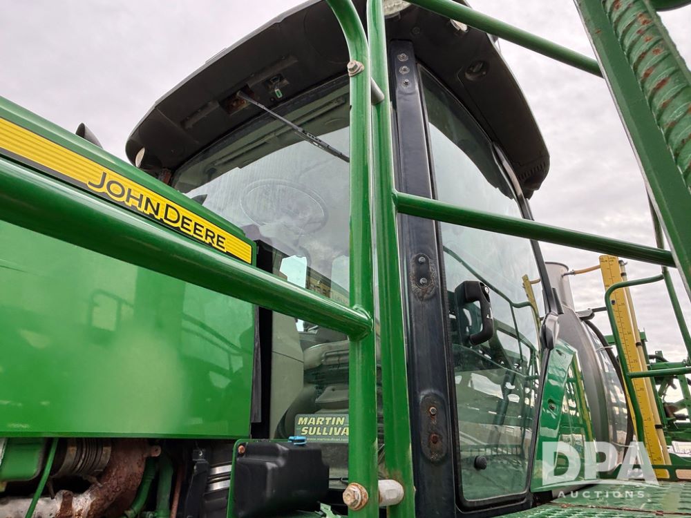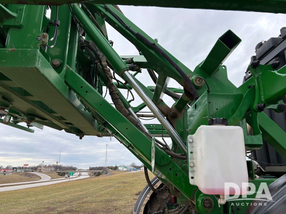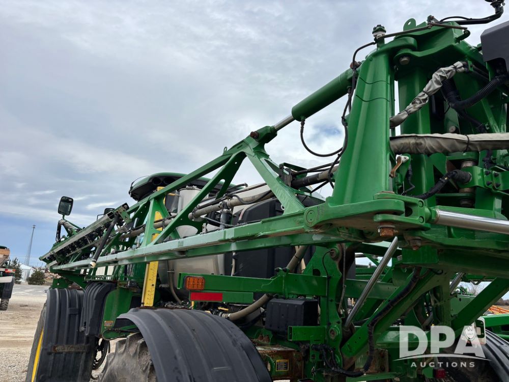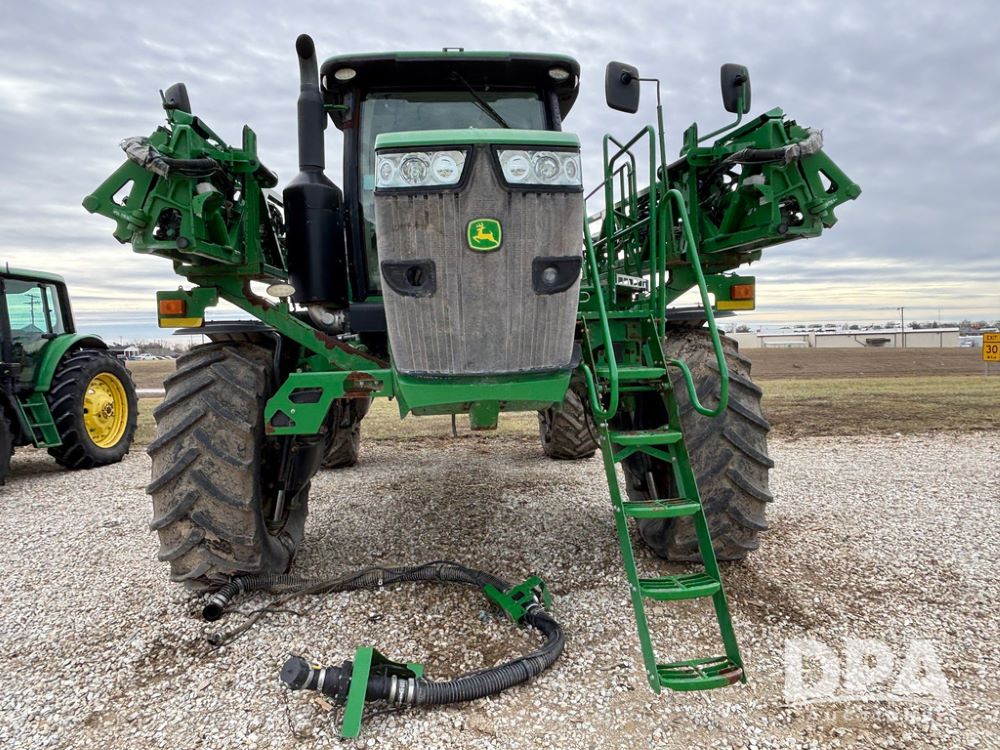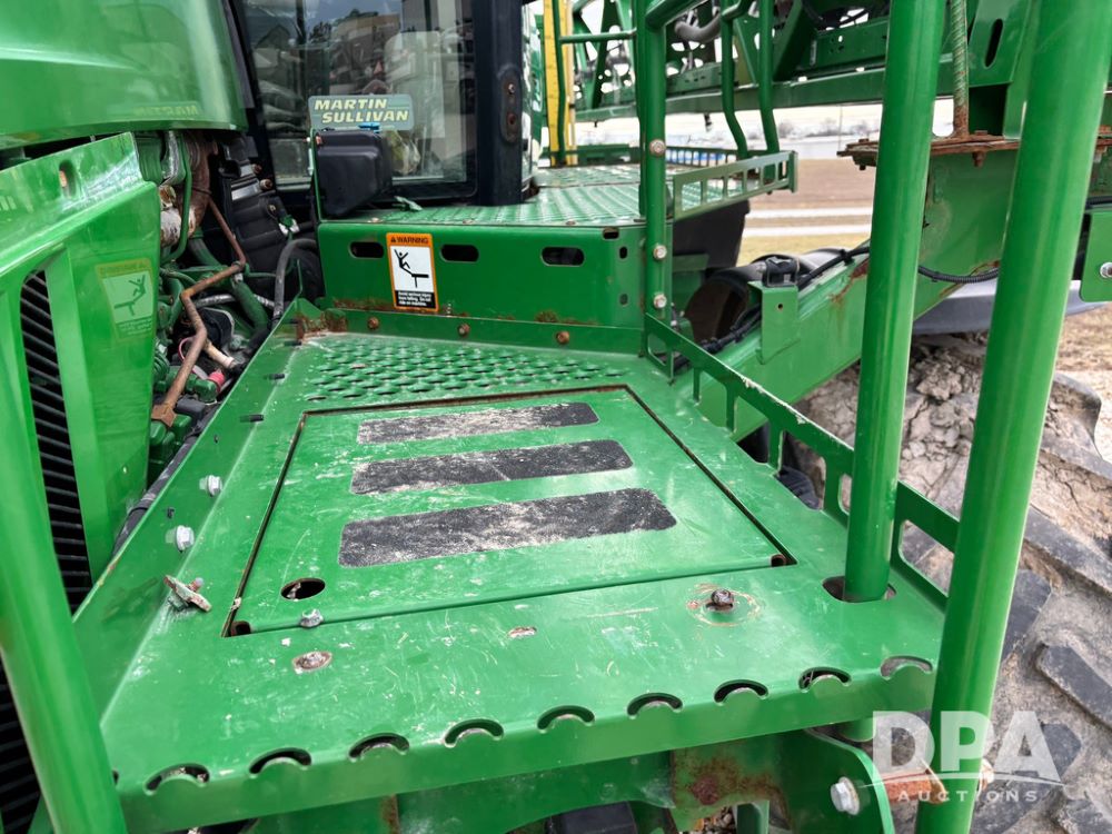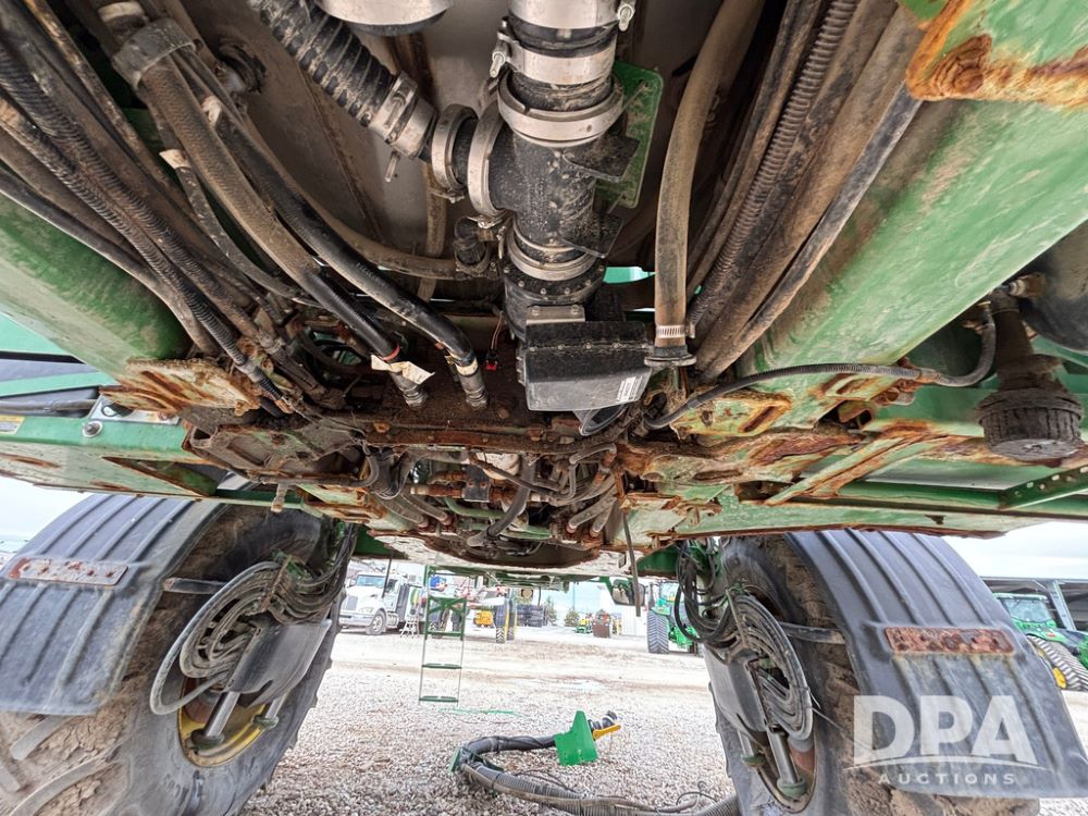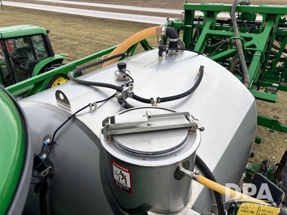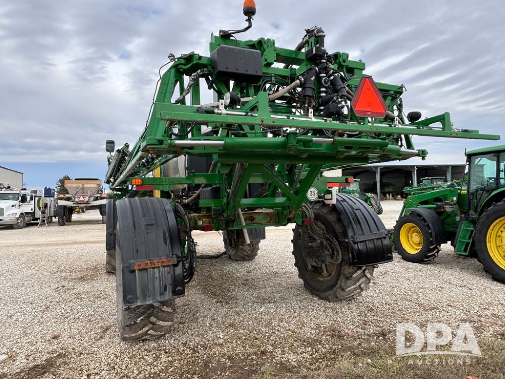 2014 John Deere R4038 Sprayer (GP12503, Unit 279), John Deere diesel engine (S/N RG6090U003536), hydrostatic transmission, air conditioning, heat, Am/Fm radio, leather seat, buddy seat, beacon light, 1000 gallon stainless steel liquid system, 100' boom, rear poly rinse tank, automatic solution control, front fill, Mitas AC65 650/65R38 flotation tires, fenders, John Deere monitor, approx. 4,366 hours.