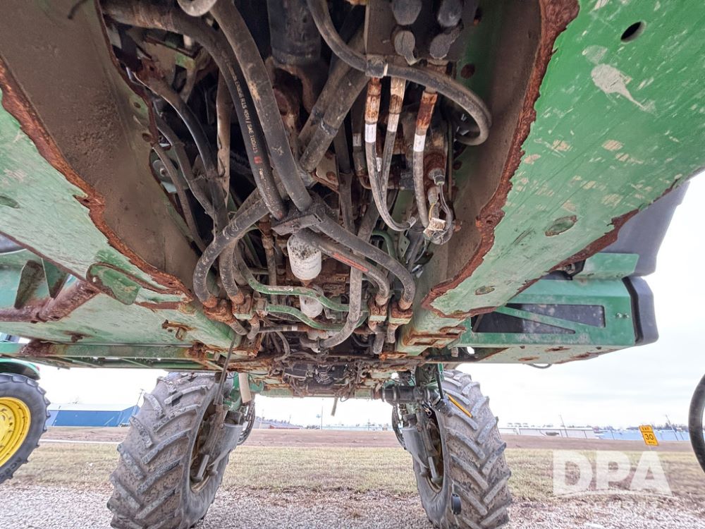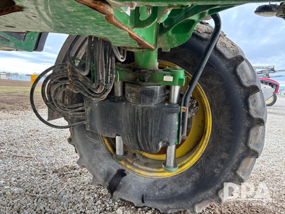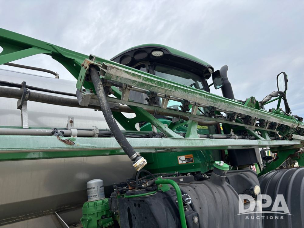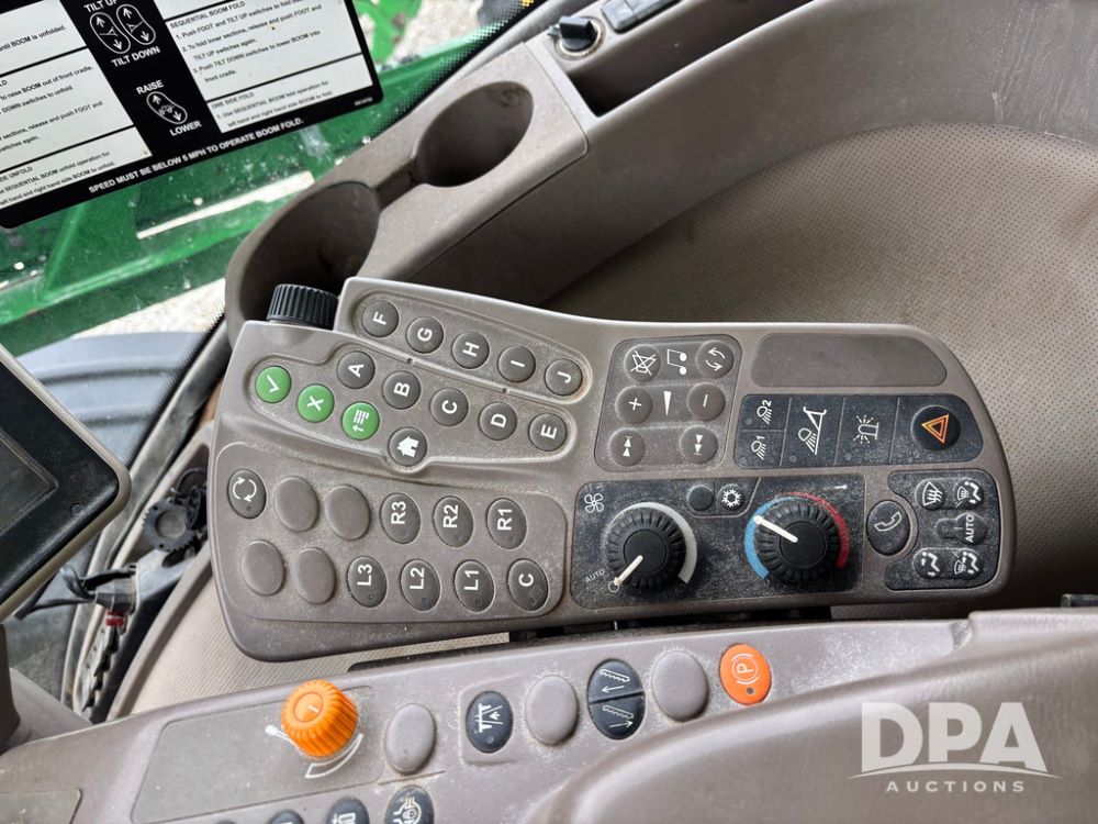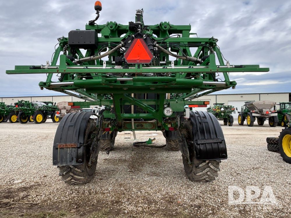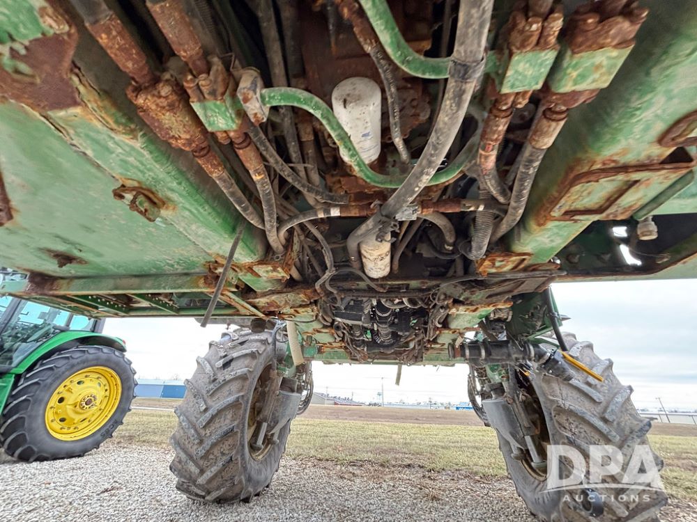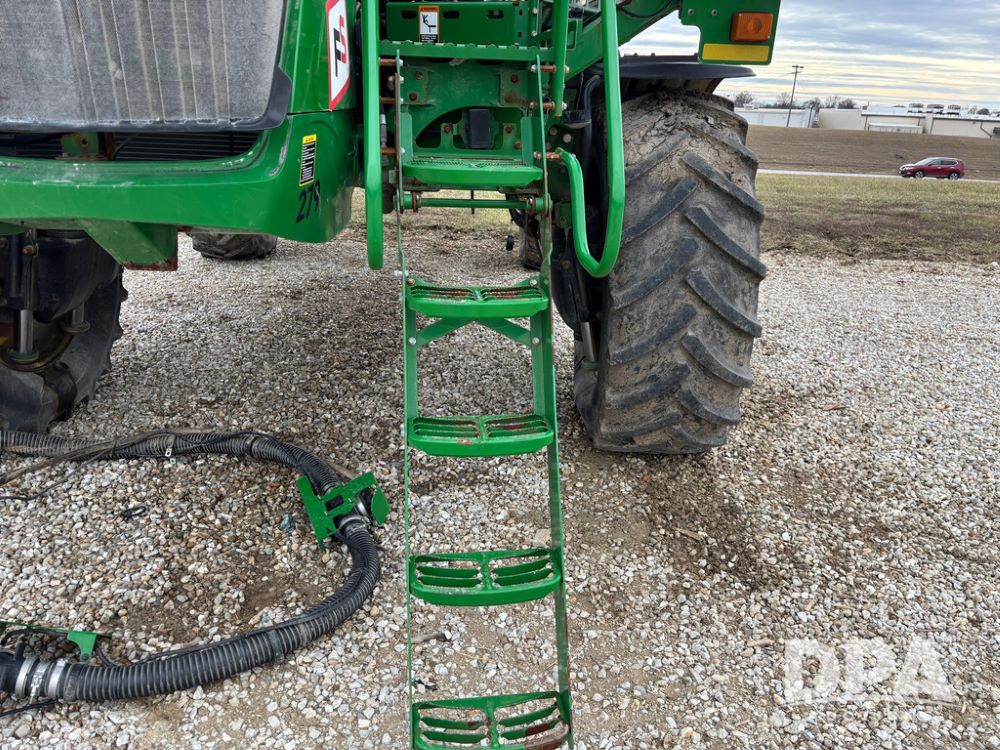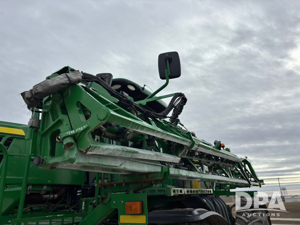 2014 John Deere R4038 Sprayer (GP12503, Unit 279), John Deere diesel engine (S/N RG6090U003536), hydrostatic transmission, air conditioning, heat, Am/Fm radio, leather seat, buddy seat, beacon light, 1000 gallon stainless steel liquid system, 100' boom, rear poly rinse tank, automatic solution control, front fill, Mitas AC65 650/65R38 flotation tires, fenders, John Deere monitor, approx. 4,366 hours.