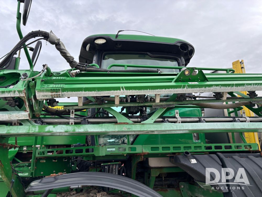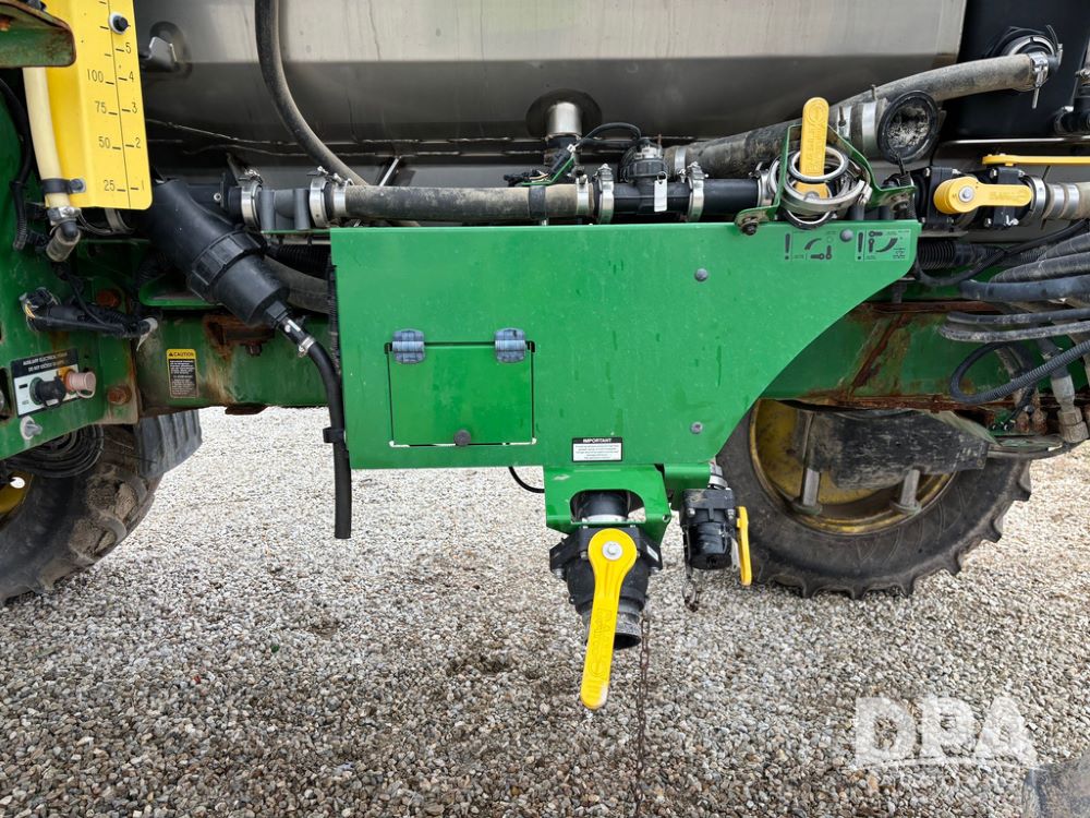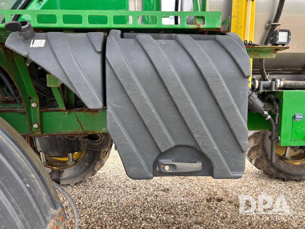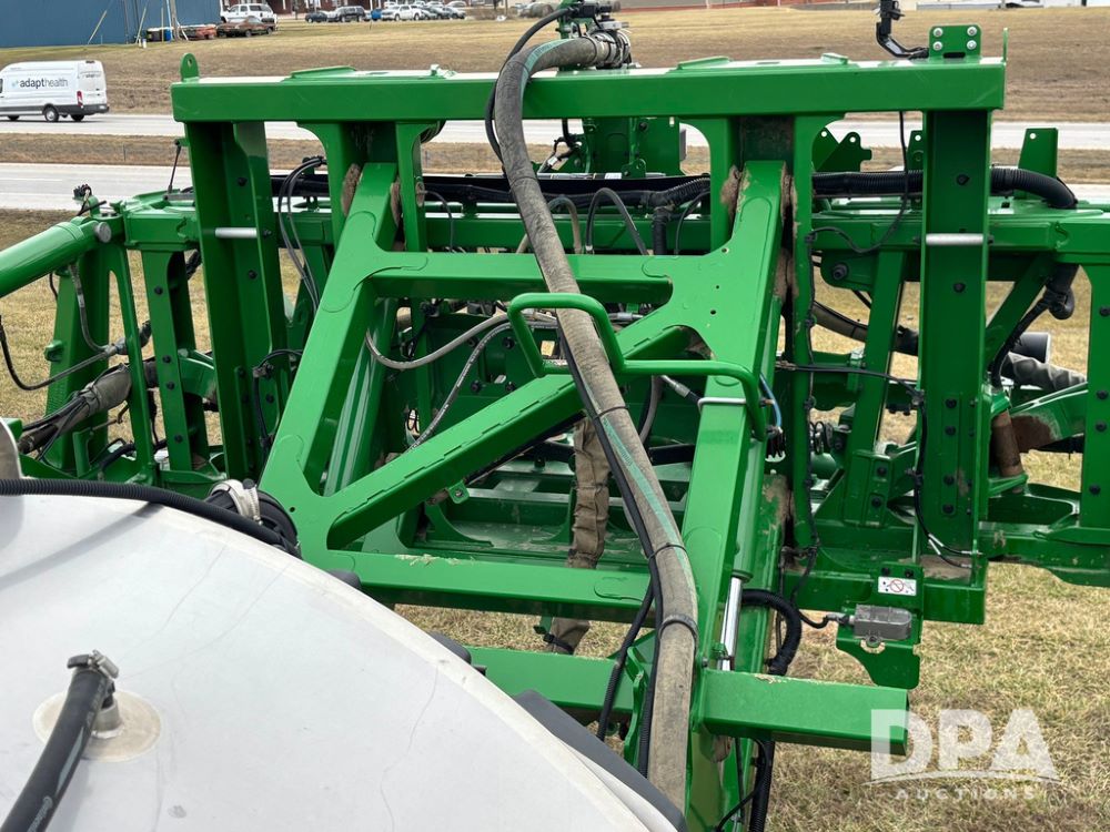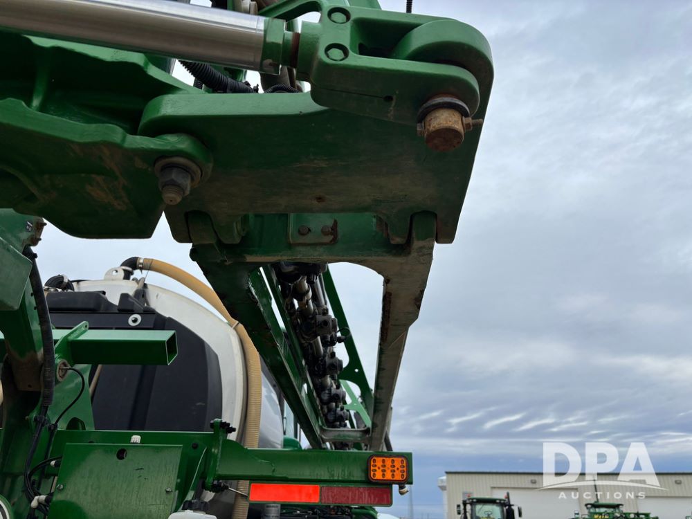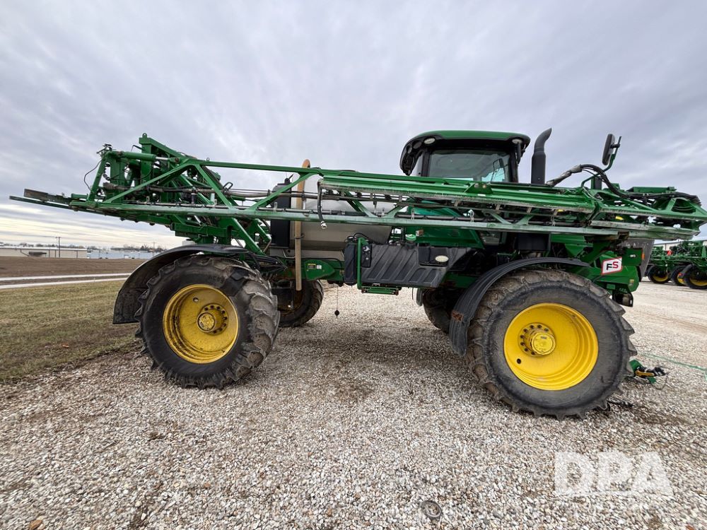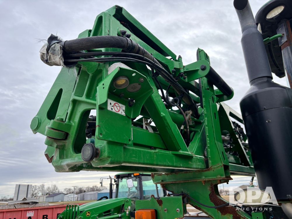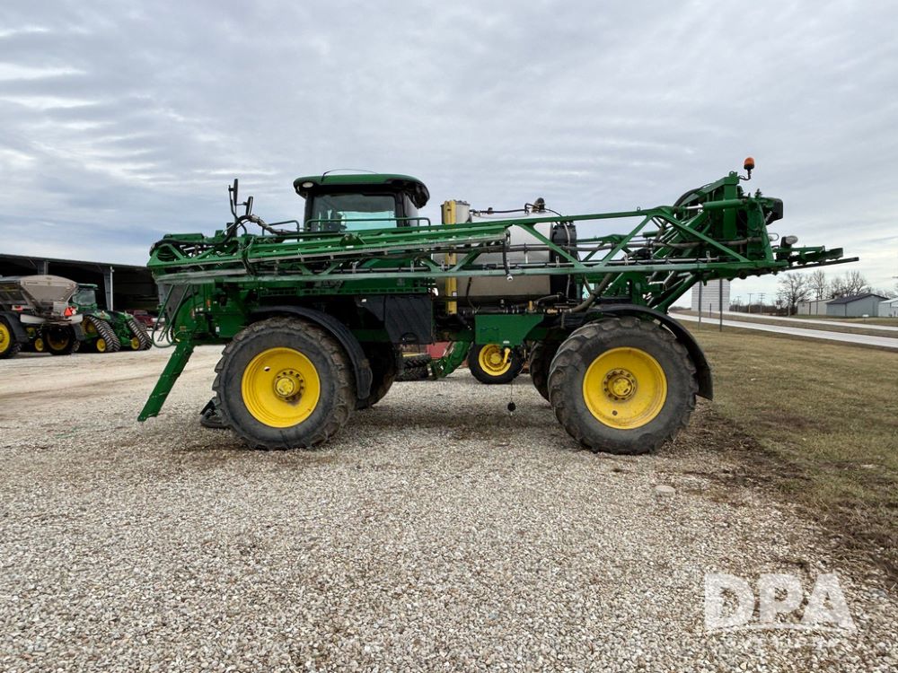 2014 John Deere R4038 Sprayer (GP12503, Unit 279), John Deere diesel engine (S/N RG6090U003536), hydrostatic transmission, air conditioning, heat, Am/Fm radio, leather seat, buddy seat, beacon light, 1000 gallon stainless steel liquid system, 100' boom, rear poly rinse tank, automatic solution control, front fill, Mitas AC65 650/65R38 flotation tires, fenders, John Deere monitor, approx. 4,366 hours.