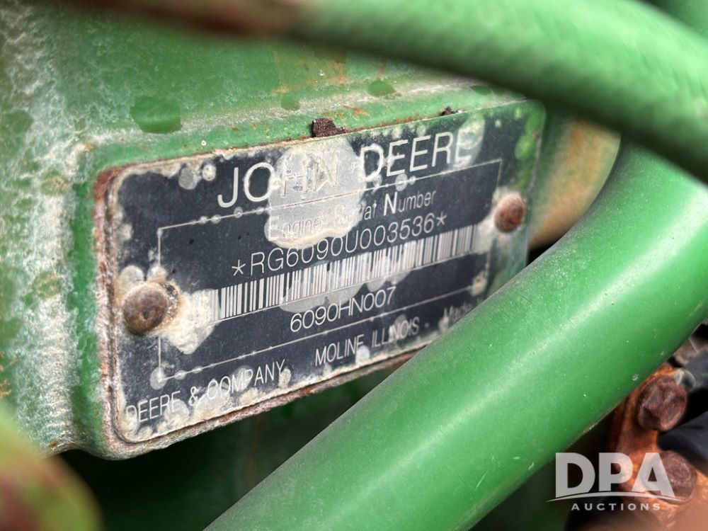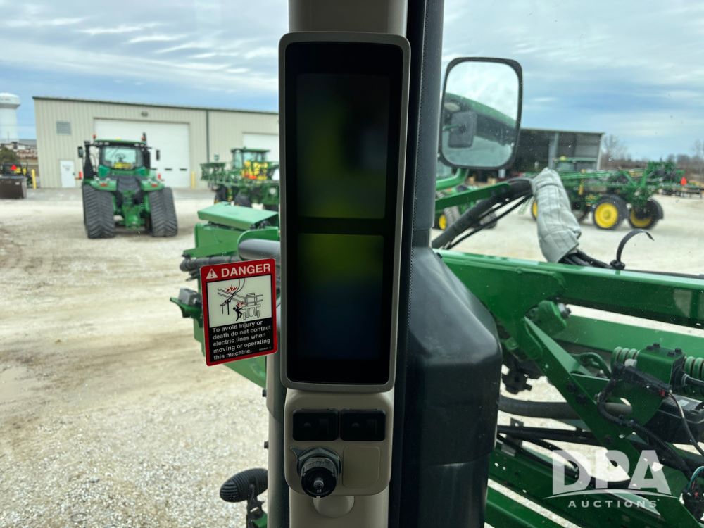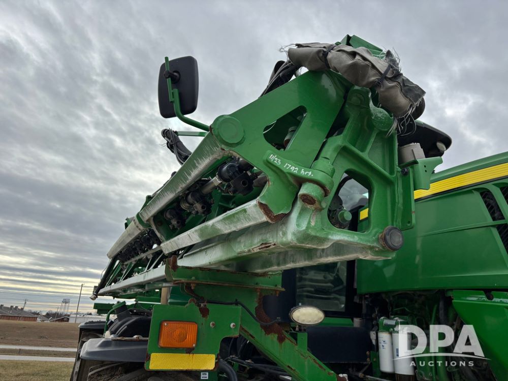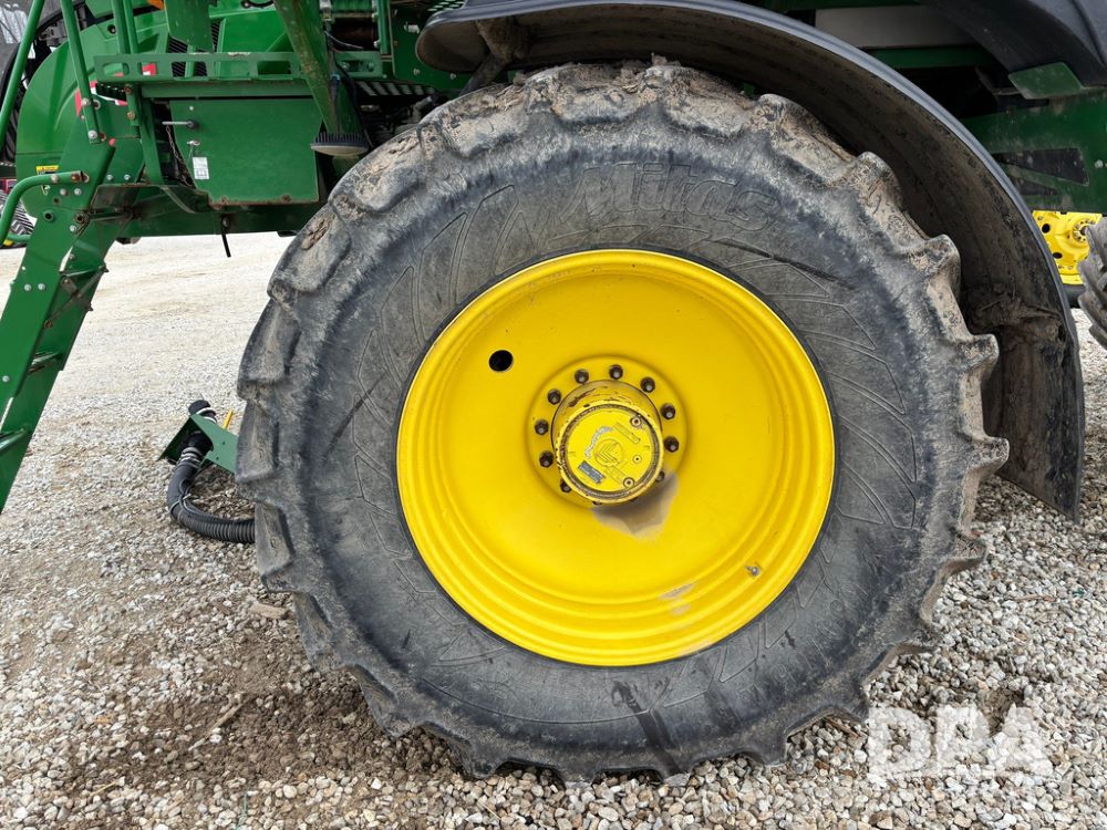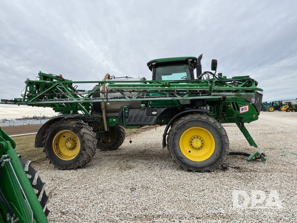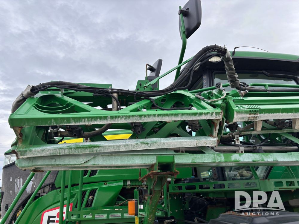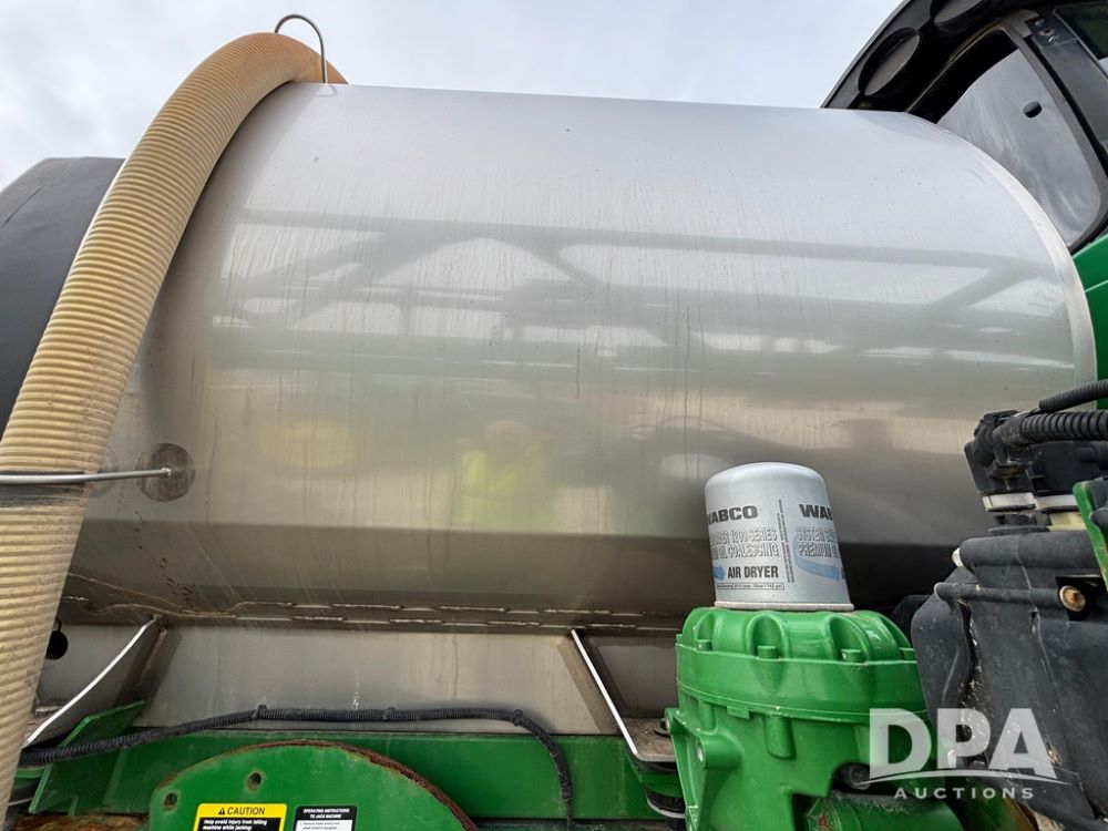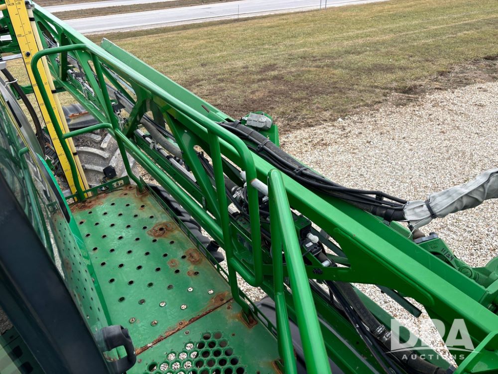 2014 John Deere R4038 Sprayer (GP12503, Unit 279), John Deere diesel engine (S/N RG6090U003536), hydrostatic transmission, air conditioning, heat, Am/Fm radio, leather seat, buddy seat, beacon light, 1000 gallon stainless steel liquid system, 100' boom, rear poly rinse tank, automatic solution control, front fill, Mitas AC65 650/65R38 flotation tires, fenders, John Deere monitor, approx. 4,366 hours.