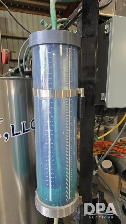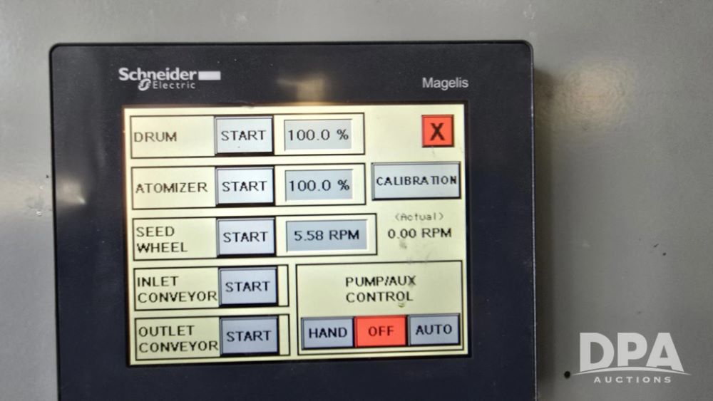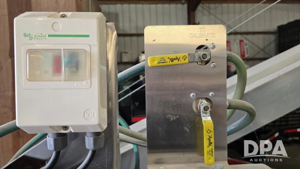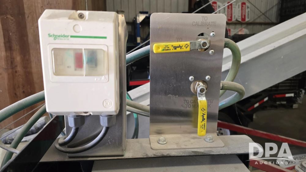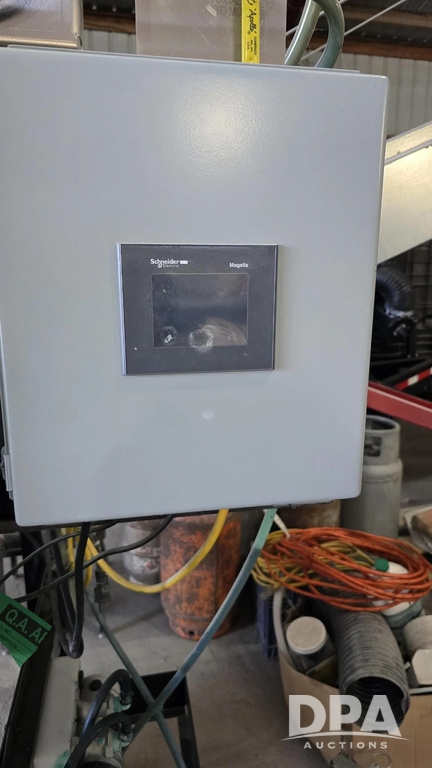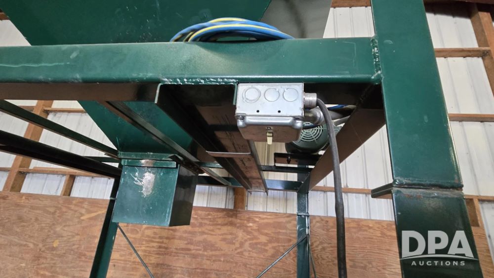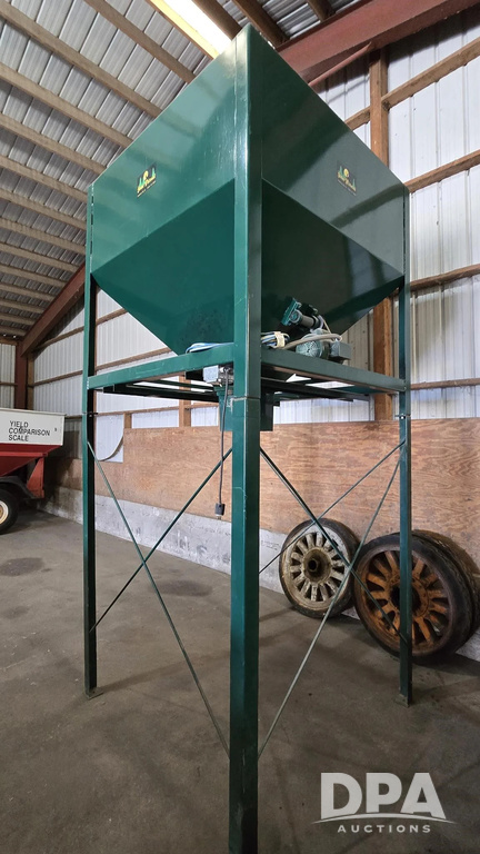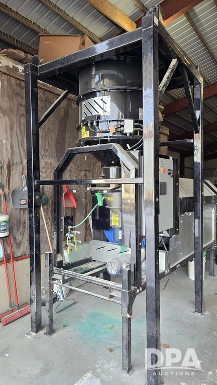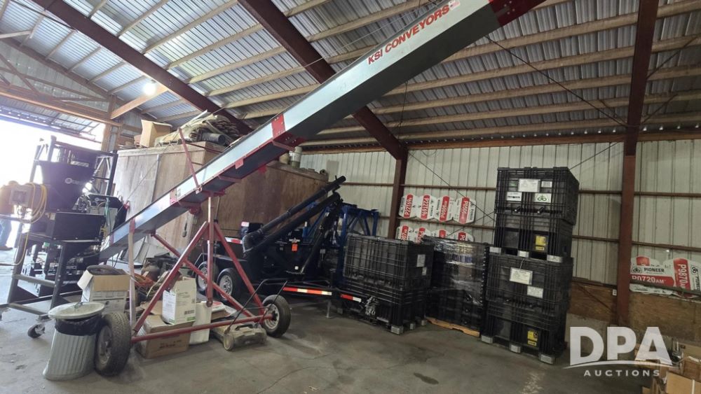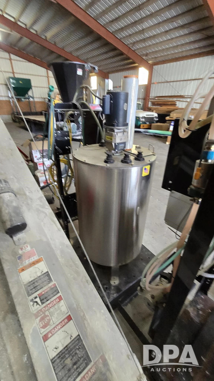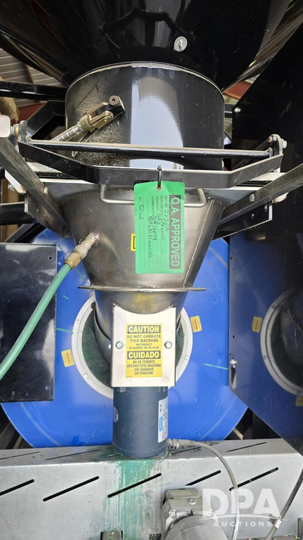 USC LPX2000 Drum Seed Treater Setup (NP6418), USC LPX2000 8' drum seed treater (S/N 12079), seed wheel, Ace Roto-Mold 30 gallon poly innoculant tank w/ poly calibration tube, stainless steel mix tank w/ poly calibration tube, digital screen, KSI Model 1212 31' Series II portable discharge conveyor (S/N 12369), electric motor, hopper with electric vibrator, automated box opener is included, USC dry talc applicator.