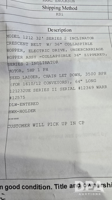 Equipment Sold "AS IS, WHERE IS": All equipment/property is sold "AS IS, WHERE IS" with no warranty or guarantees, expressed or implied, No operational assessments have been made by DPA Auctions on this item, it has been photographed ONLY.