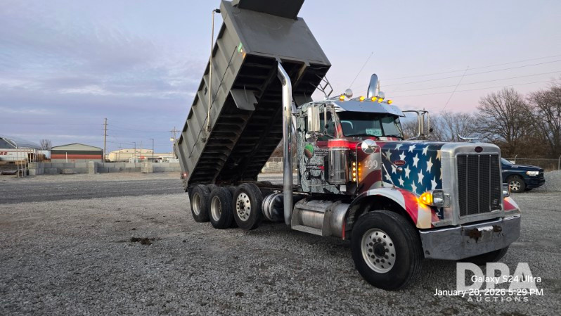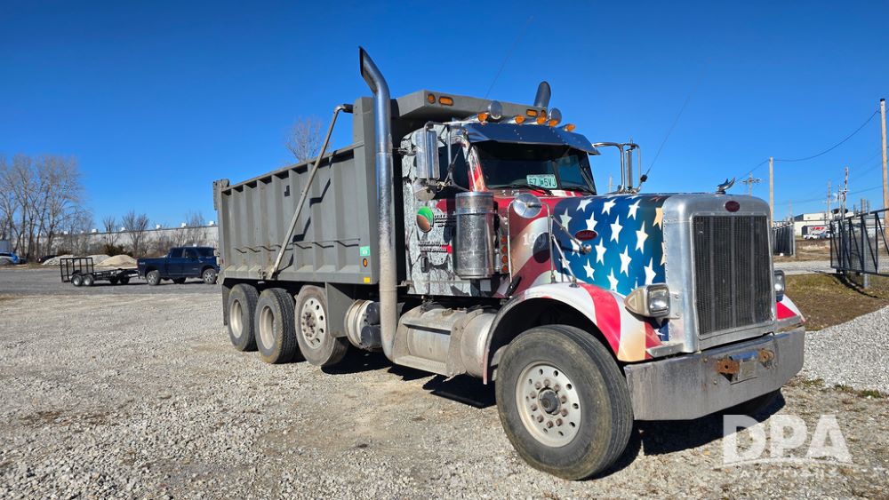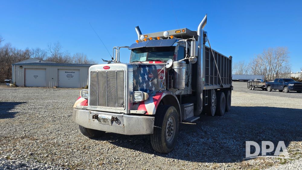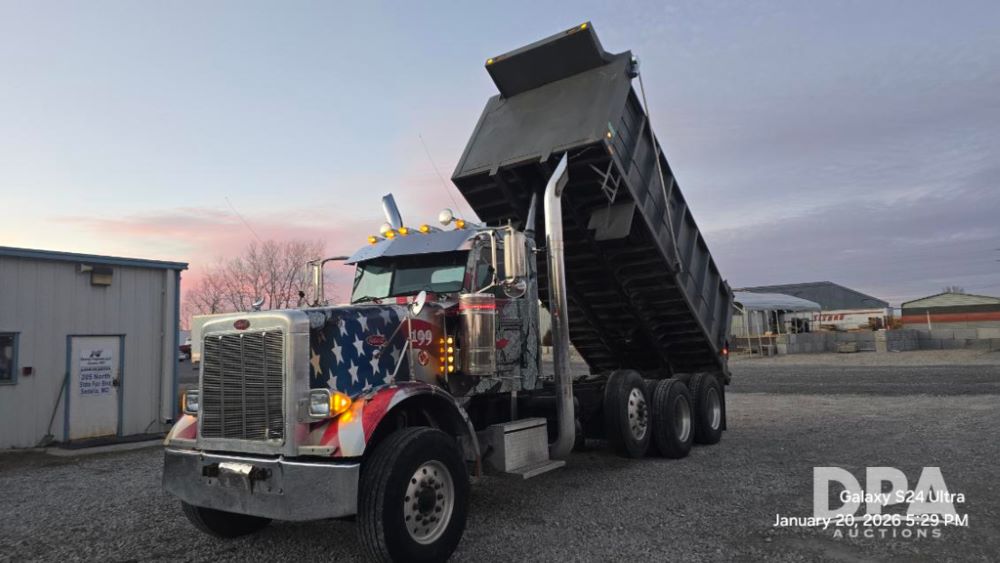 2006 Peterbilt Dump Truck (JM750), CAT diesel engine, 8LL manual transmission, 20 ton pay loud box, air conditioning, heat, AM/FM/CD, Bluetooth radio, automatic control driver's seat, shows 349,981 miles.