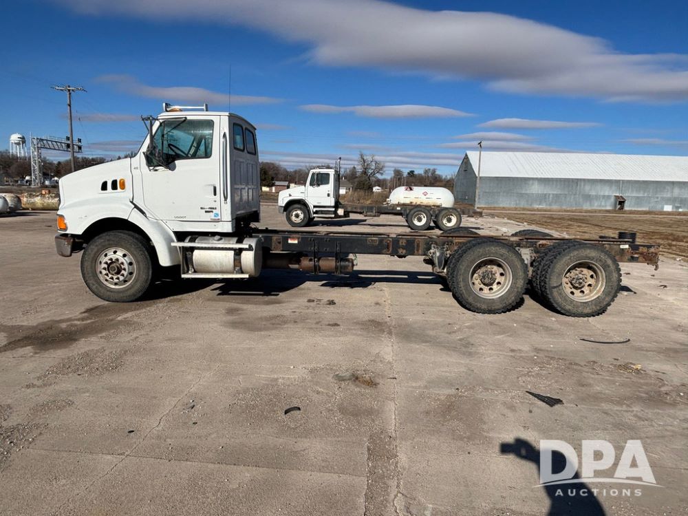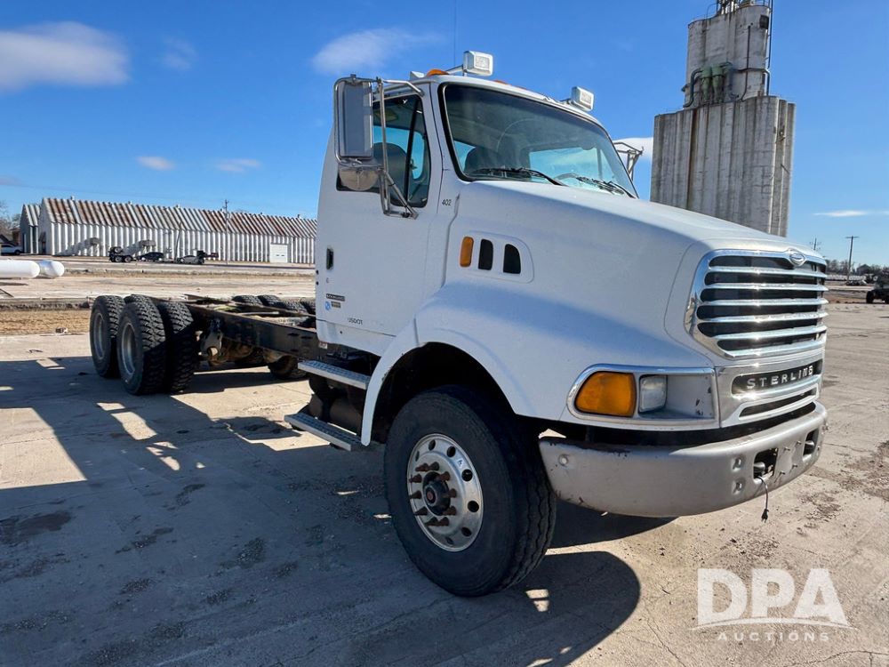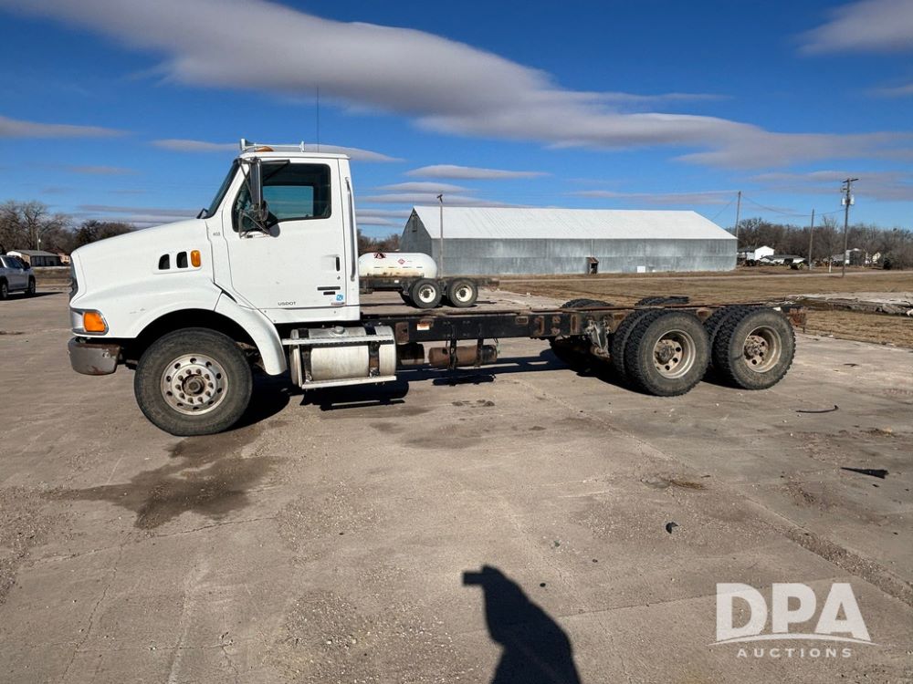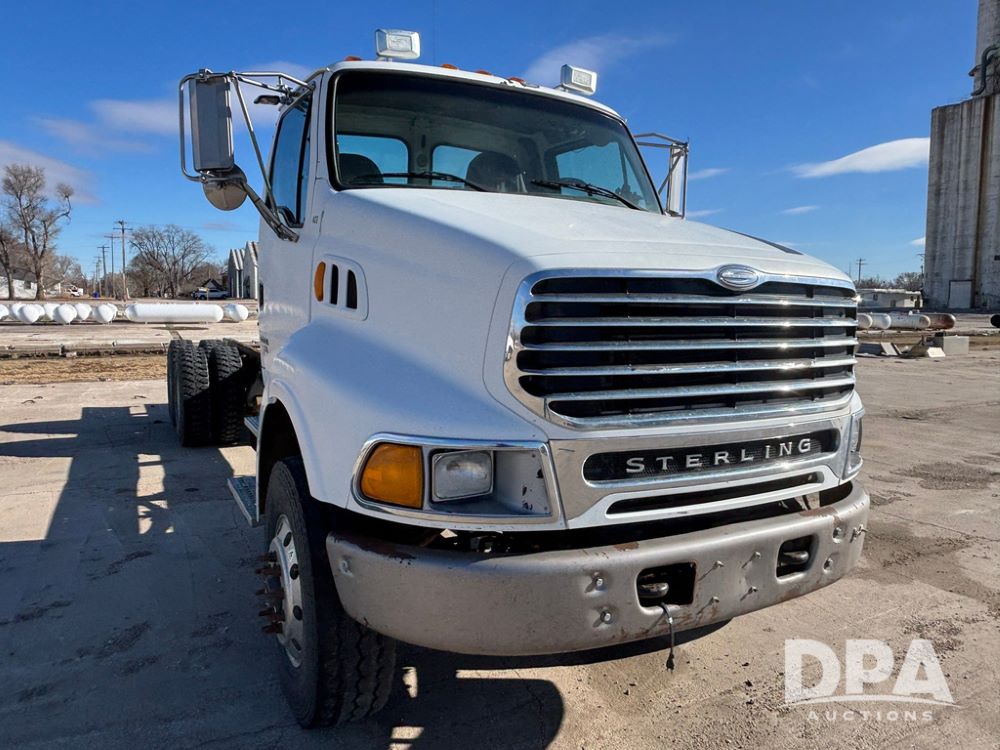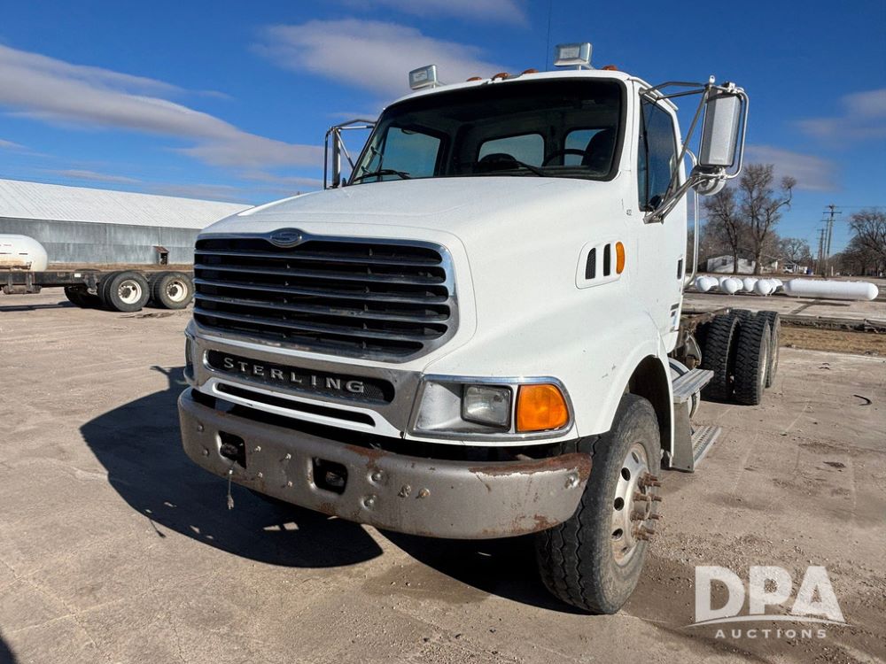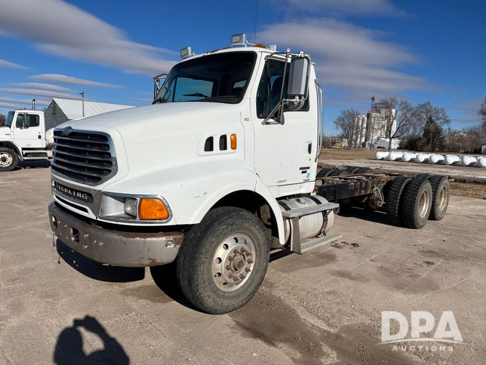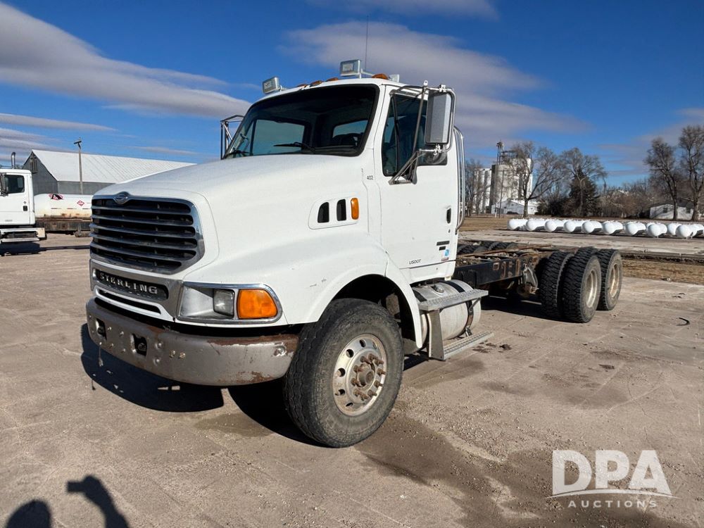 2005 Sterling Truck (GP12549, Unit 402), Mercedes Benz diesel engine, Roadranger 10 speed transmission, air conditioning, heat, Am/Fm radio, cruise control, tandem axle, full screw, air ride suspension, 315/80R22.5 front tires, aluminum rims, 11R22.5 rear tires, aluminum rims, shows 437,445 miles.