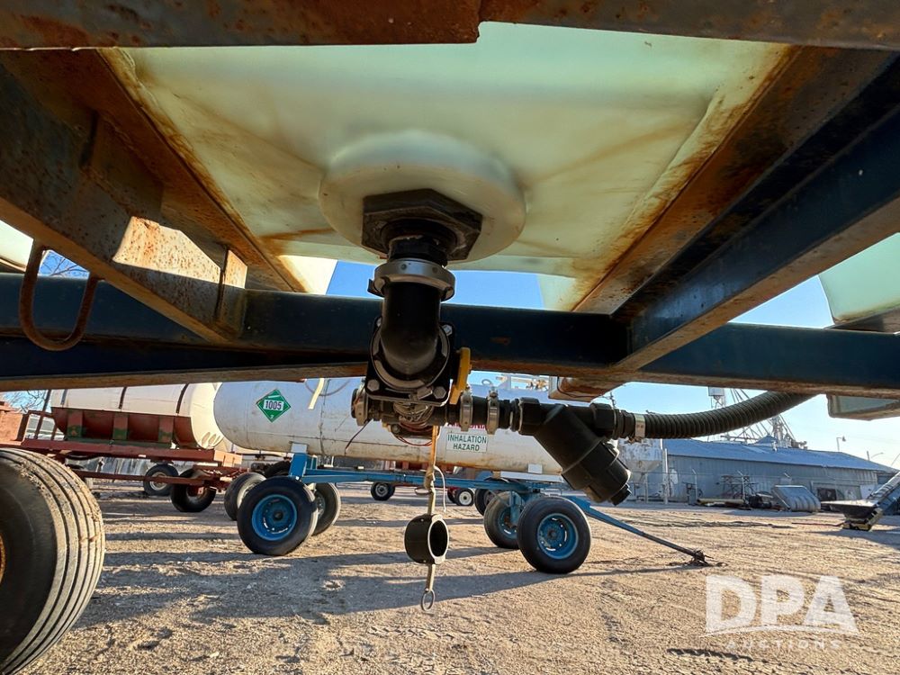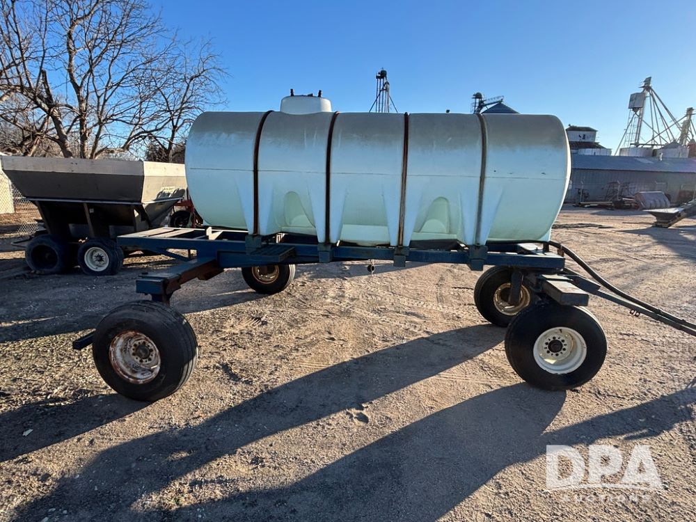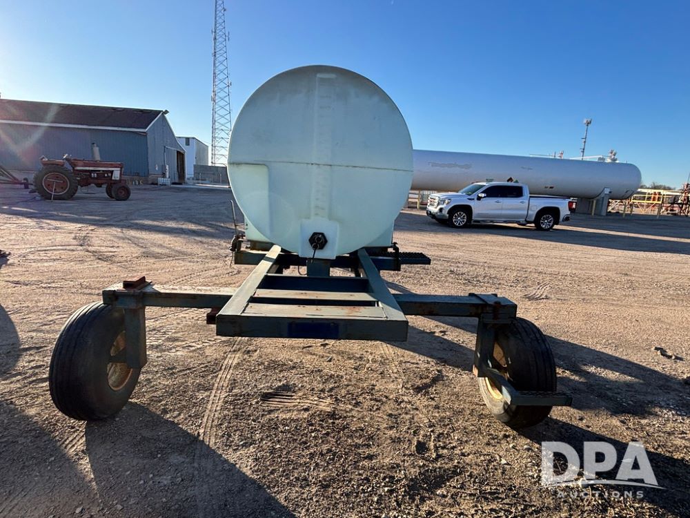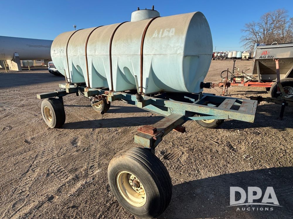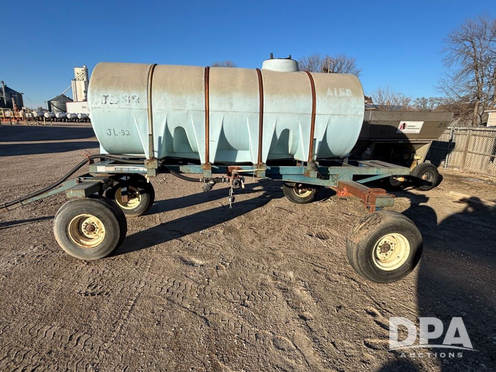 Liquid Nurse Tank (GP12551, Unit JL32), 1,000 gallon poly liquid nurse tank, 5th wheel running gear, adjustable axles, 12.5L-15 flotation tires.