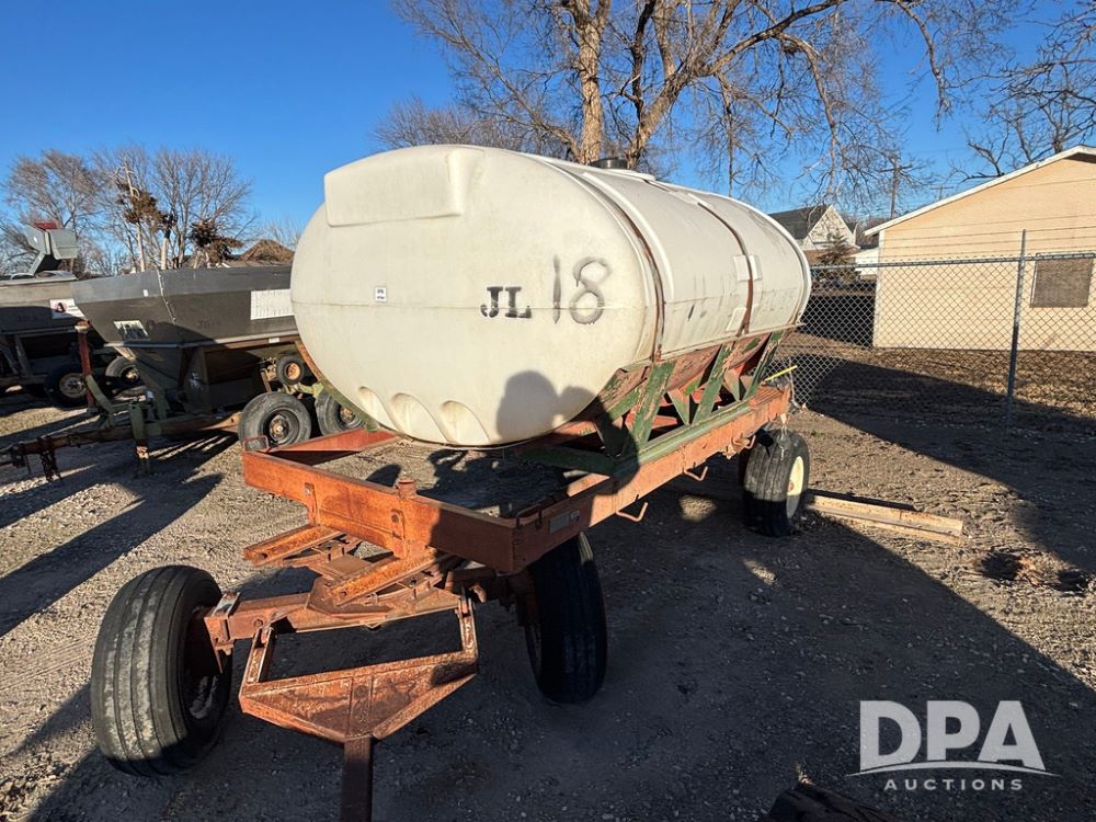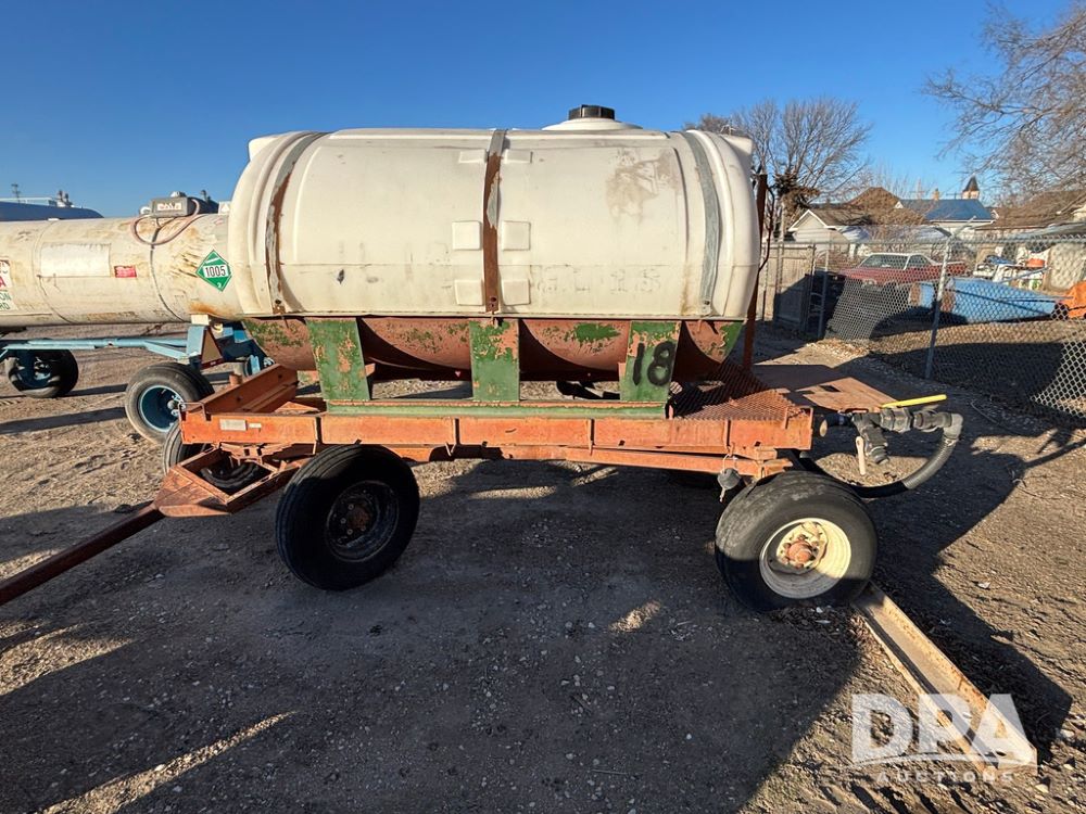 Liquid Nurse Tank (GP12554, Unit JA18), 1000 gallon poly liquid nurse tank, 5th wheel running gear, 11L-15 flotation tires.