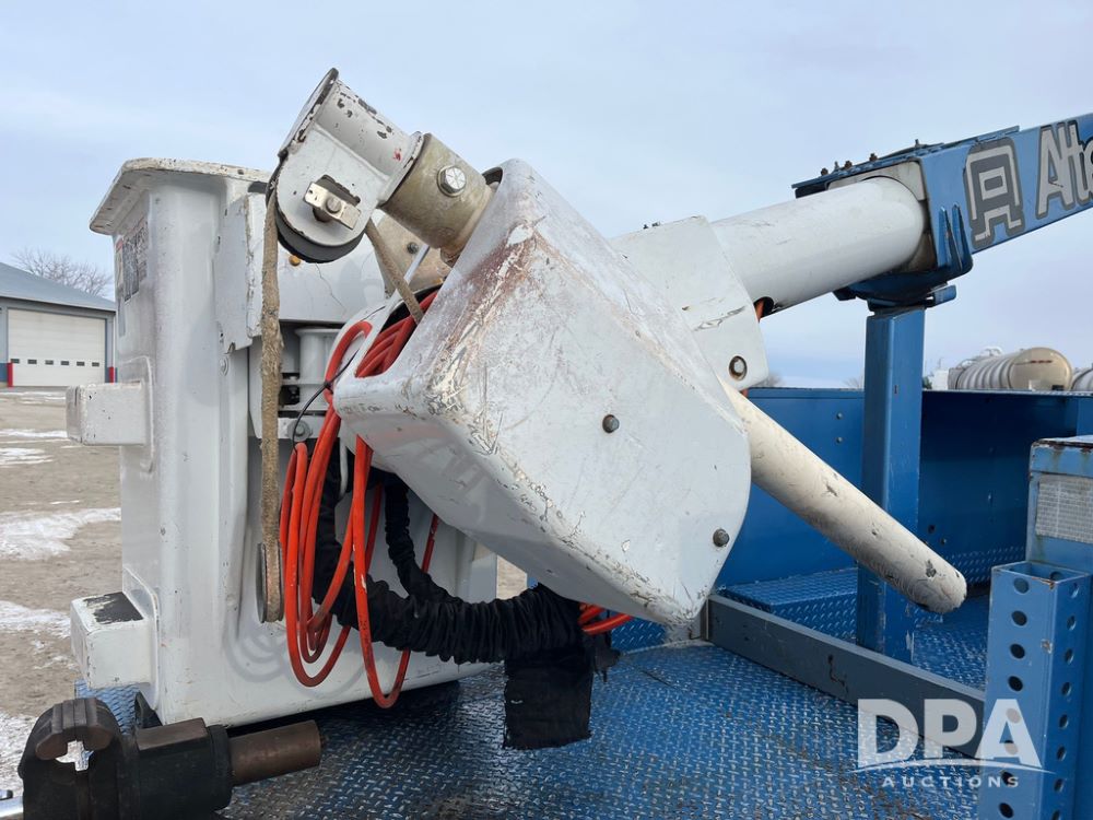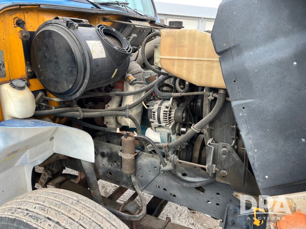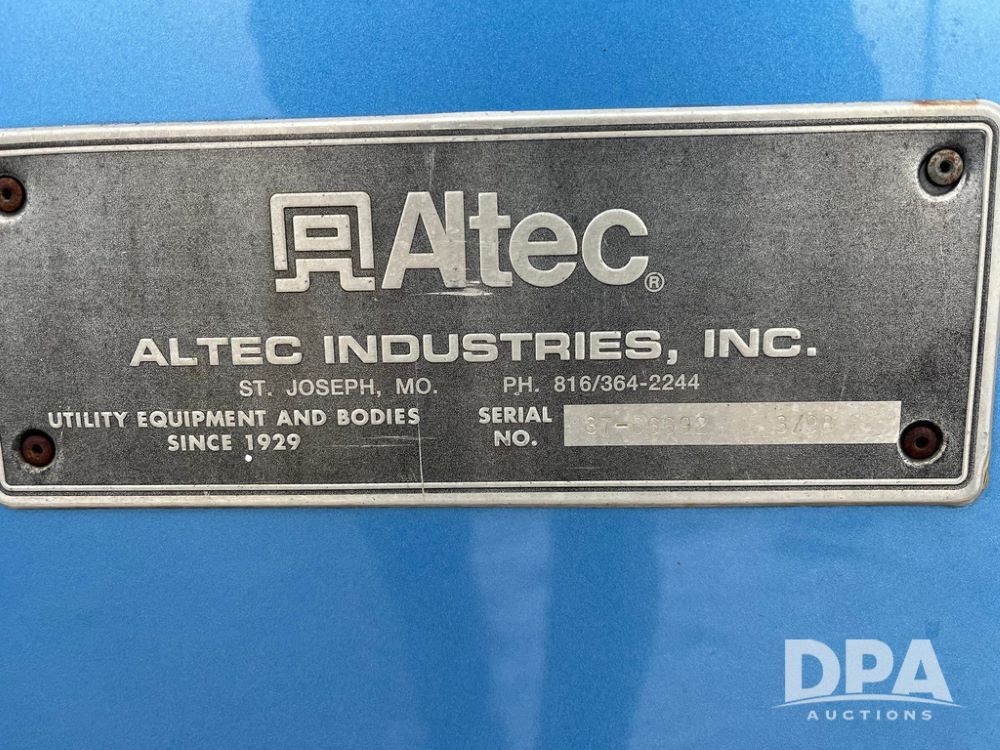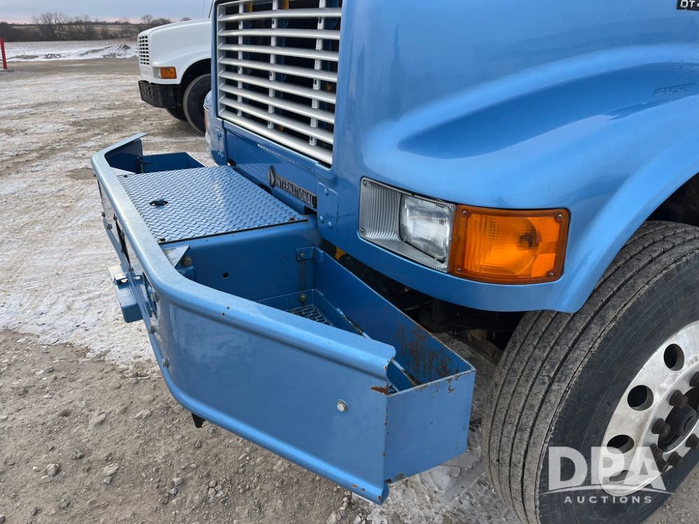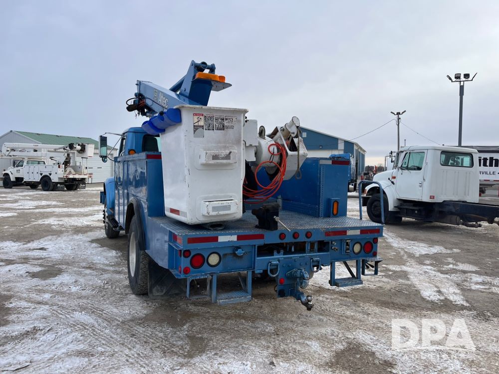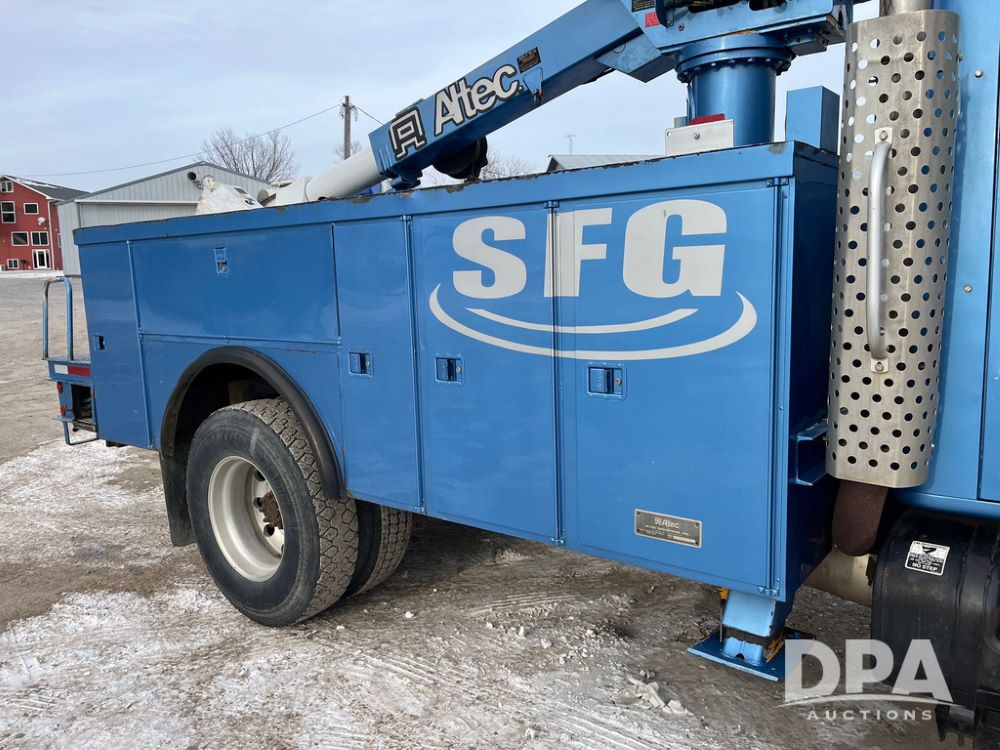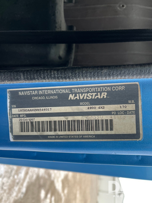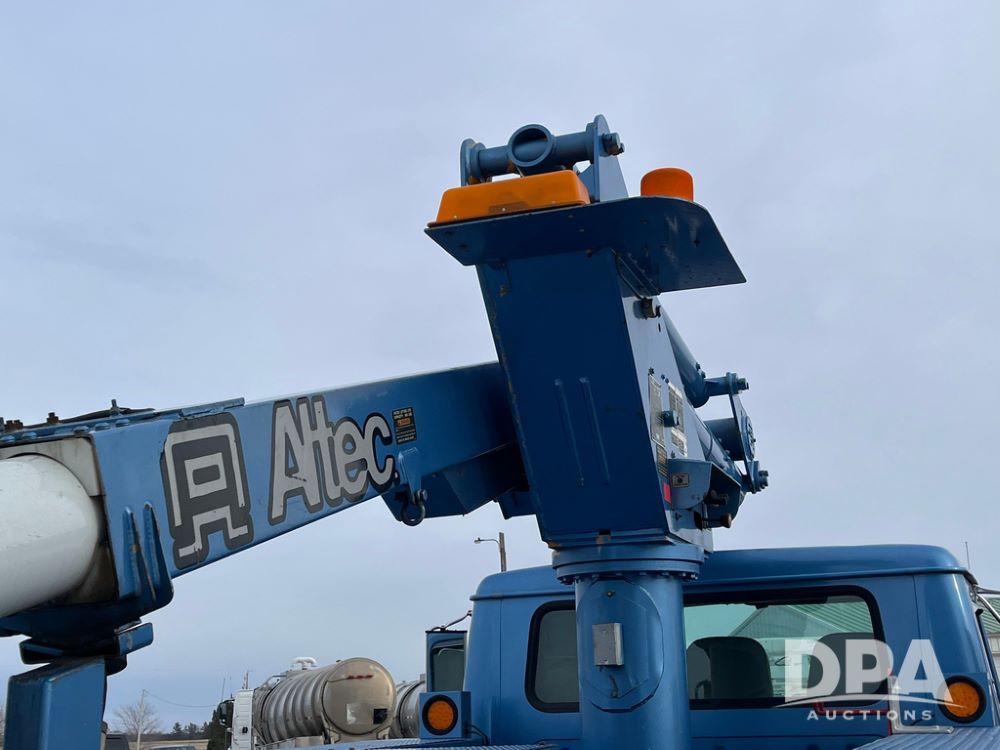 1998 IHC 4900 Bucket Truck (JN3723), DT466E diesel engine, Allison automatic transmission, air conditioning, heat, Am/Fm radio, cruise control, tandem axle, spring suspension, 1998 Altec Service body with bucket (S/N 37-66692), down riggers, pintal hitch, 11R22.5 tires, aluminum rims, shows 243,855 miles.