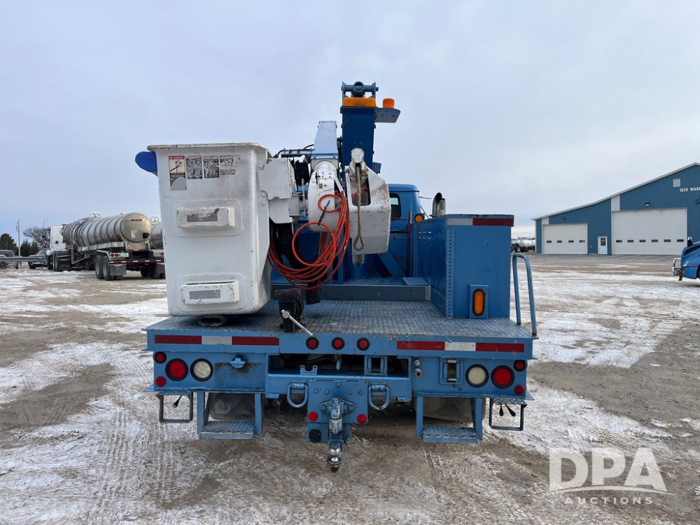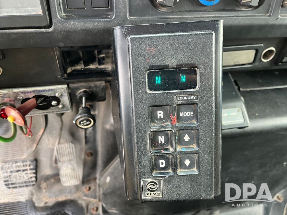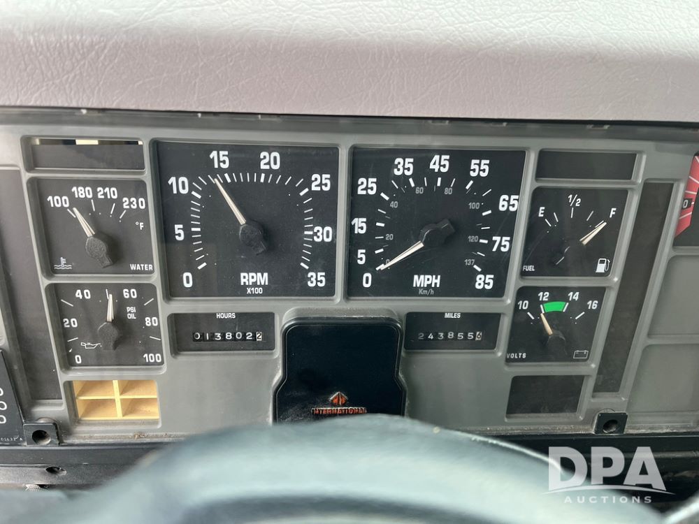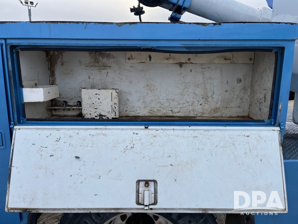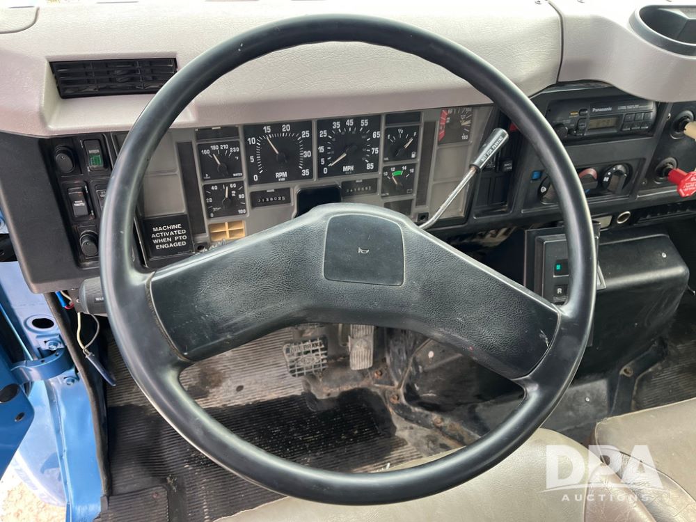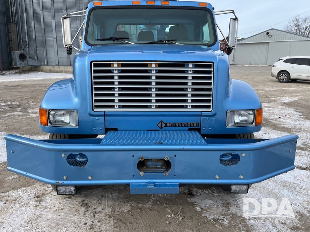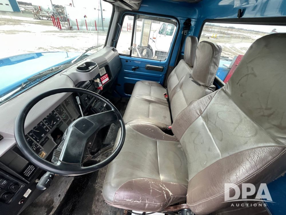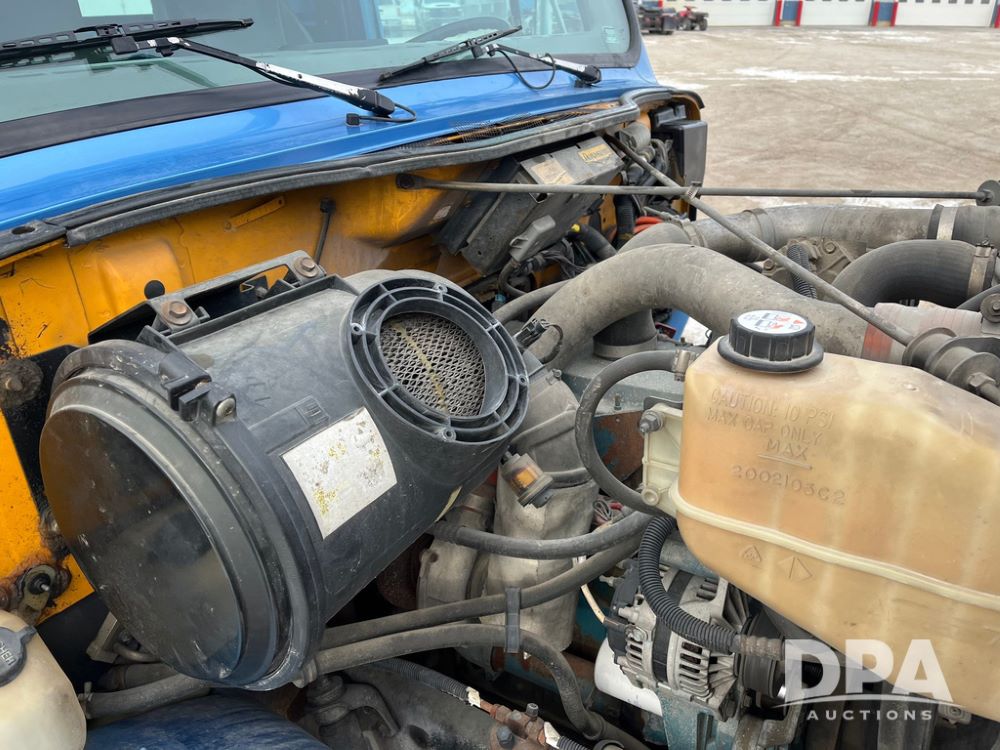 1998 IHC 4900 Bucket Truck (JN3723), DT466E diesel engine, Allison automatic transmission, air conditioning, heat, Am/Fm radio, cruise control, tandem axle, spring suspension, 1998 Altec Service body with bucket (S/N 37-66692), down riggers, pintal hitch, 11R22.5 tires, aluminum rims, shows 243,855 miles.