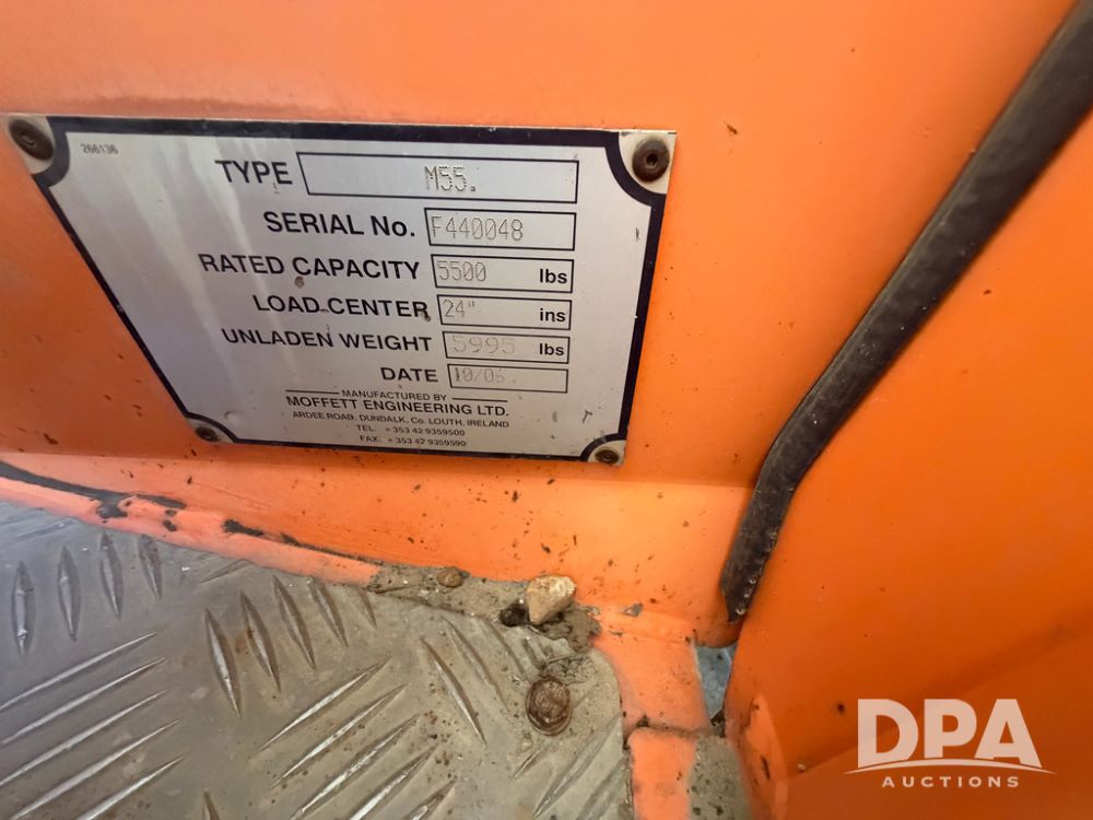 2006 Moffett Model M55 Forklift (PZ14340, Unit 37929), diesel engine, shuttle shift transmission, canopy, lights, forks, rated capacity 5,500 lbs, load center 24", unladen weight 5,995lbs, shows 1,509 hours.