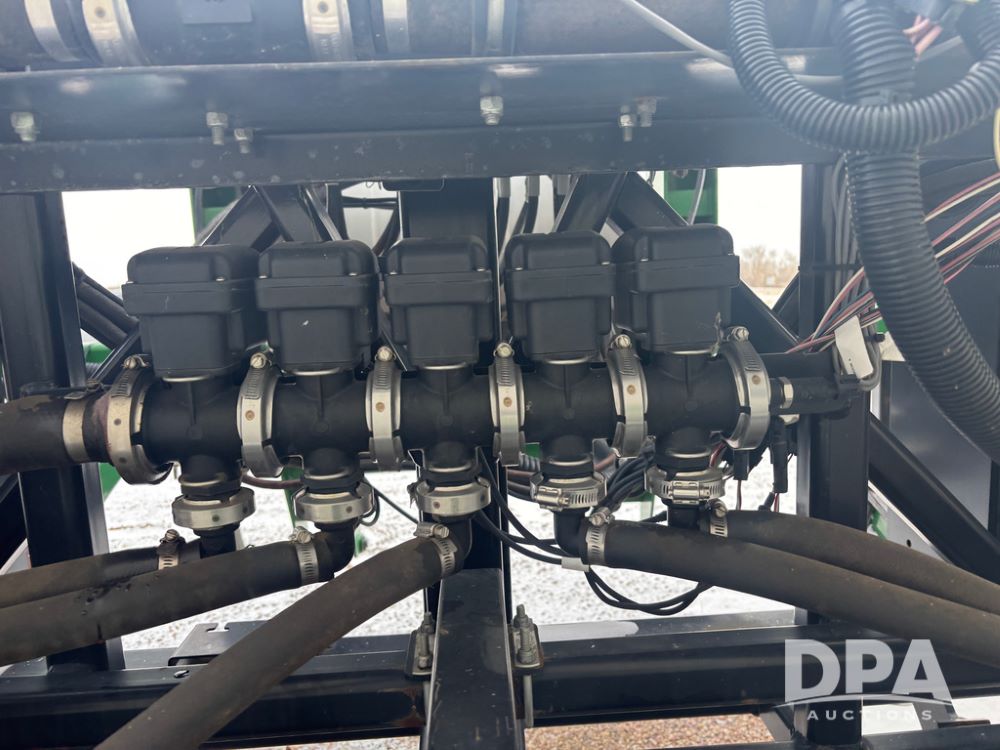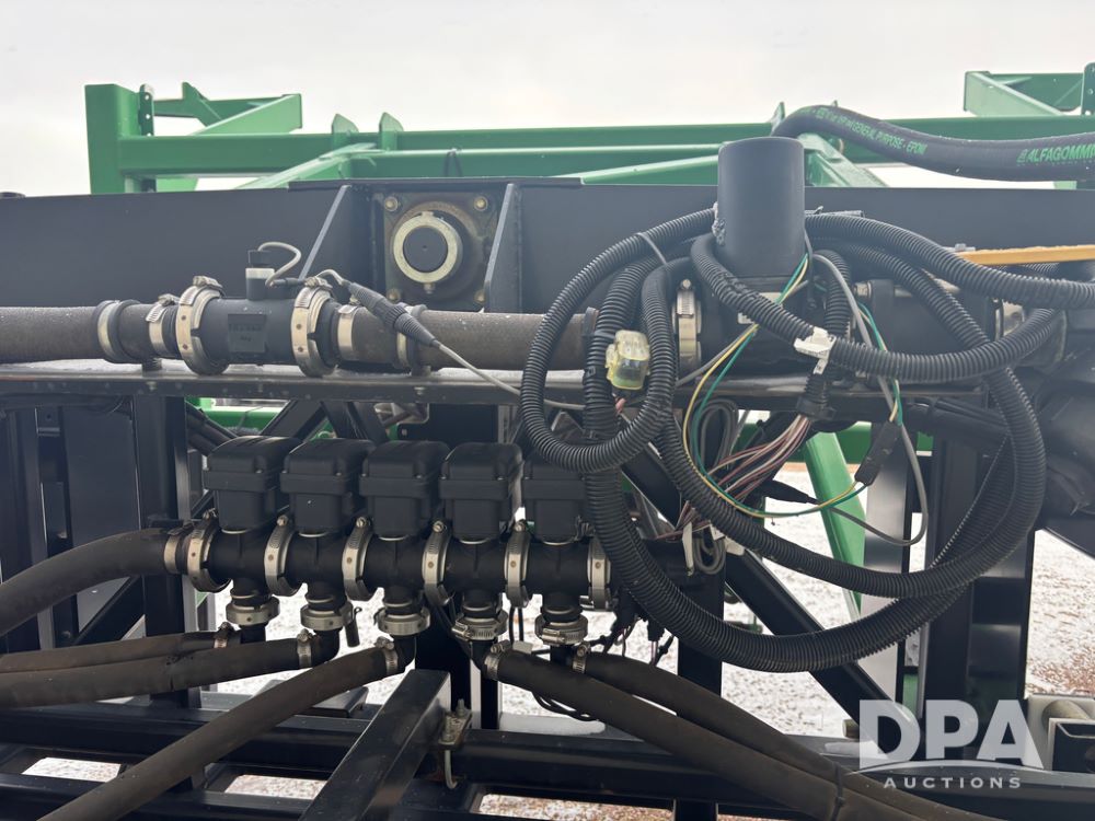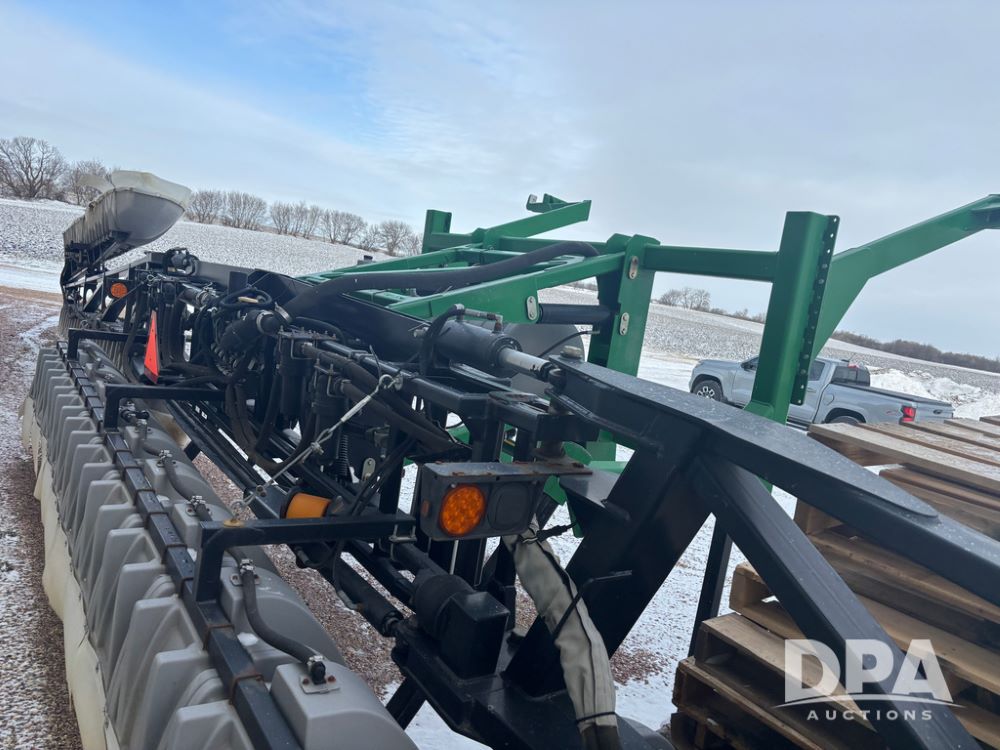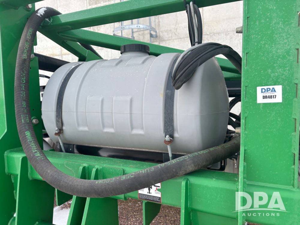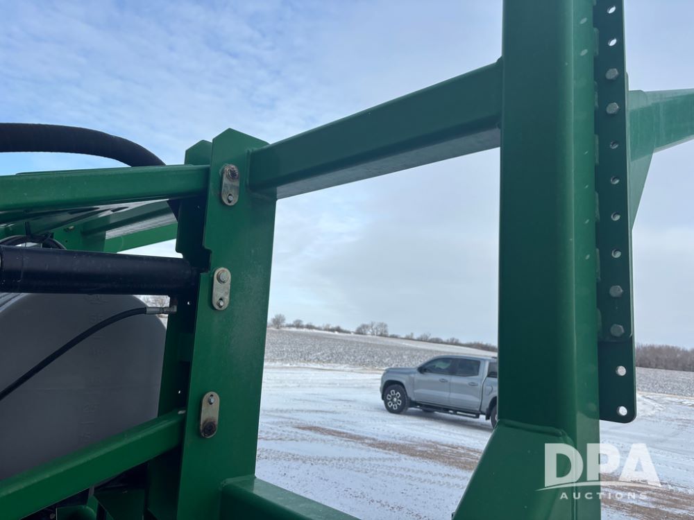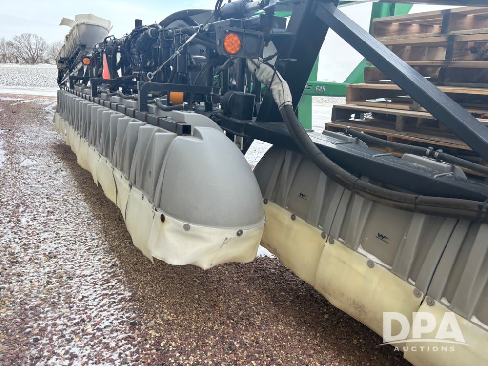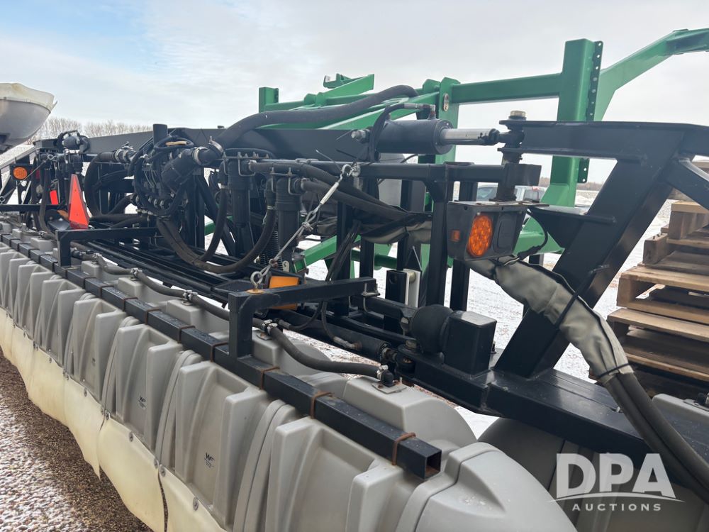 WF Hooded Sprayer (DR4817), 90' hooded band sprayer, Redball hoods, 4 way nozzle bodies, wired for Raven monitor, poly rinse tank, hydraulic fold, 3 point mount, was mounted on John Deere 8R Series tractor.
