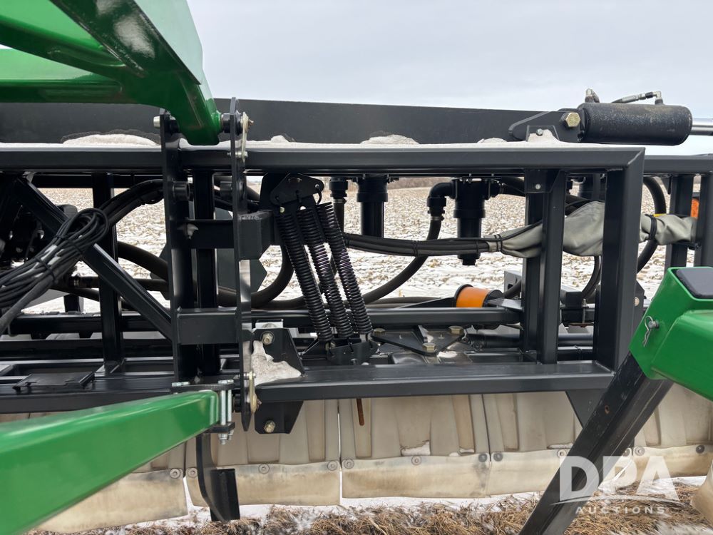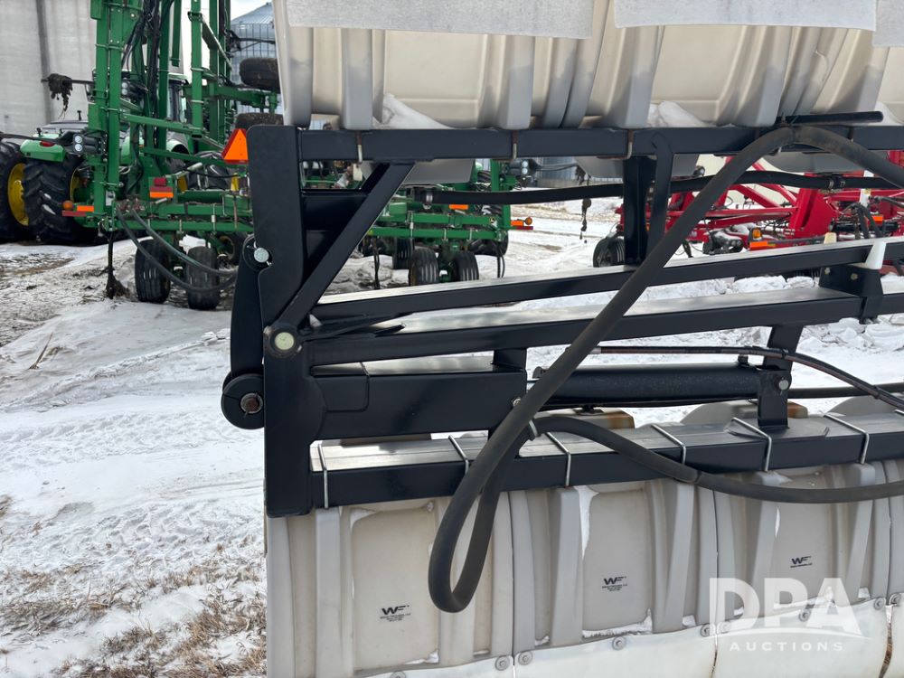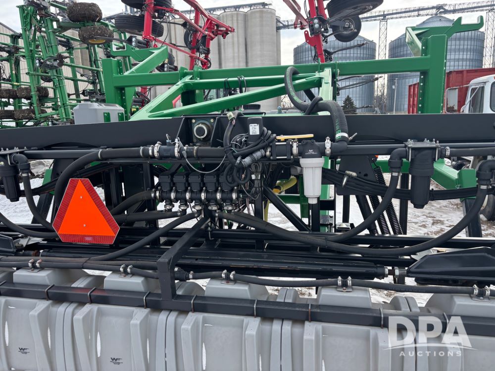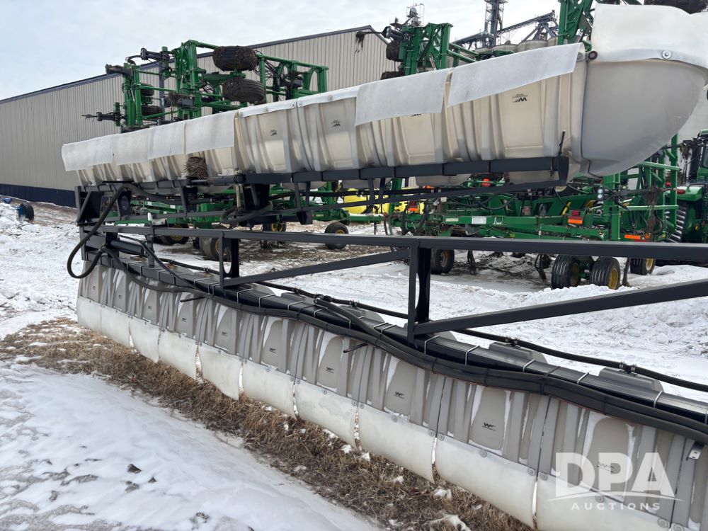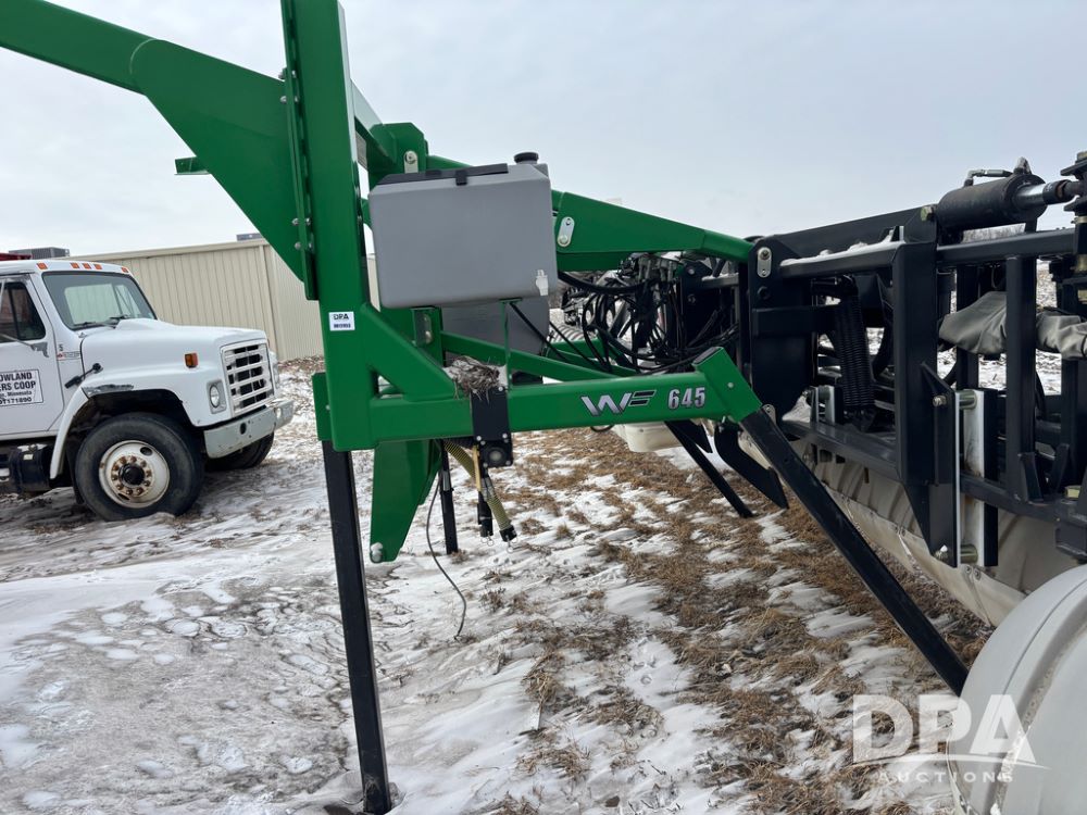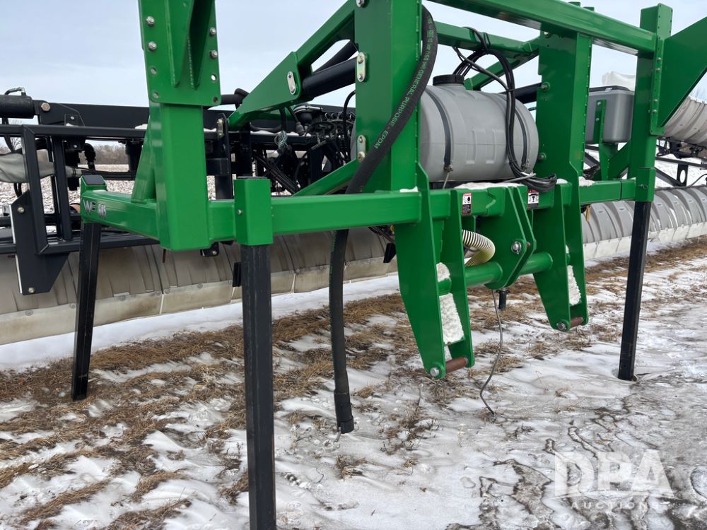 WF Hooded Sprayer (DR12953), 90' hooded band sprayer, Redball hoods, 4 way nozzle bodies, wired for Raven monitor, poly rinse tank, hydraulic fold, 3 point mount, was mounted on John Deere 8R Series tractor.