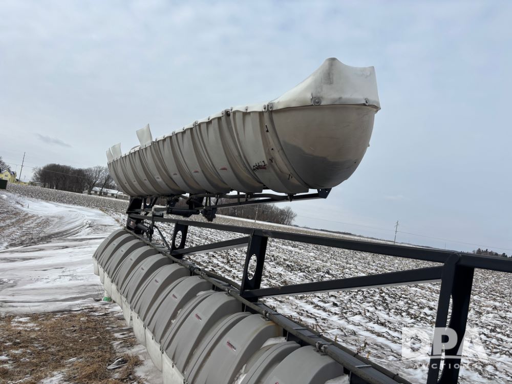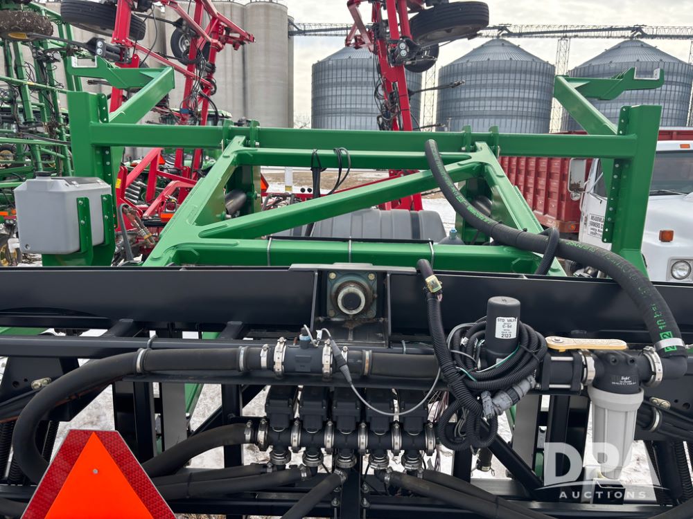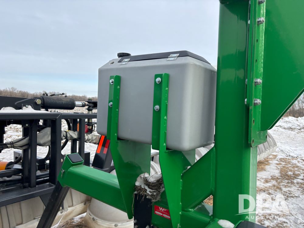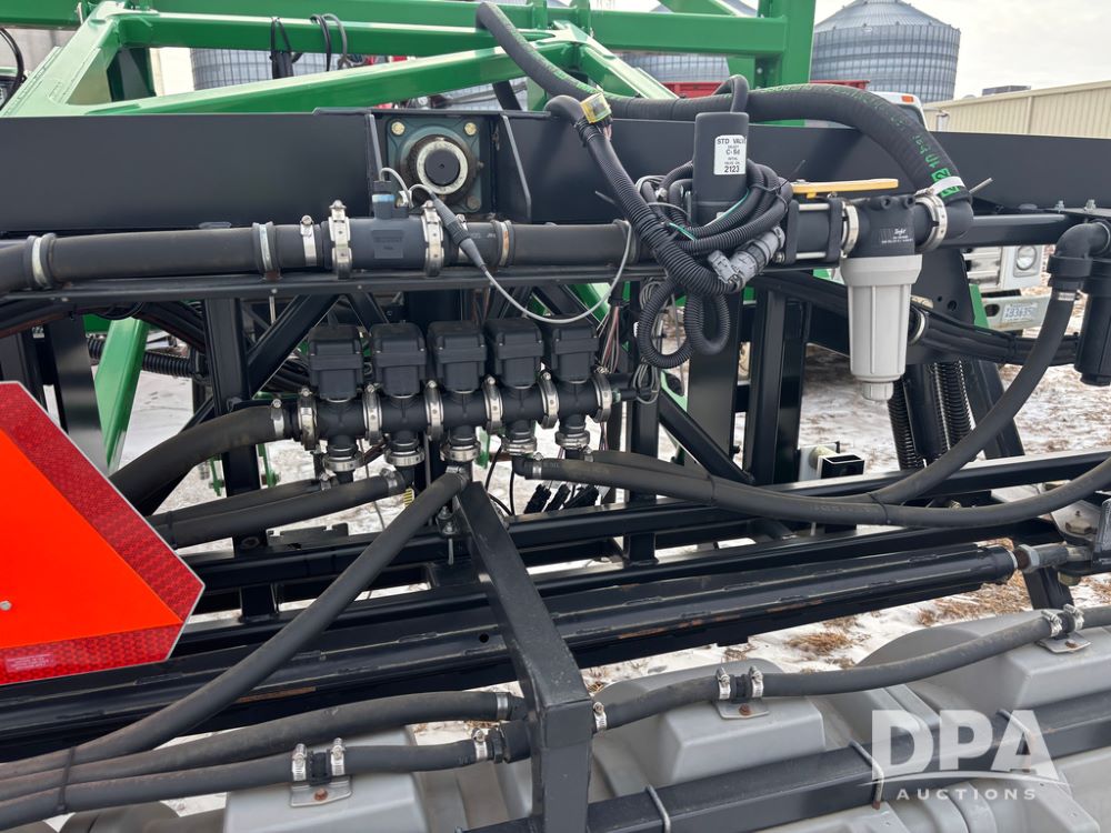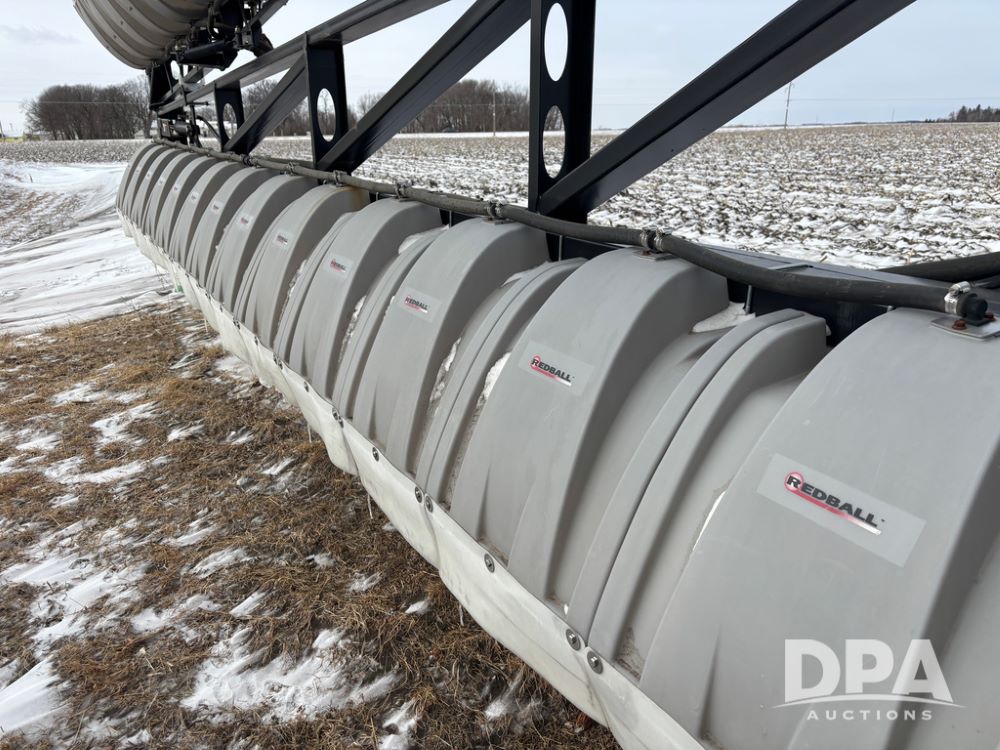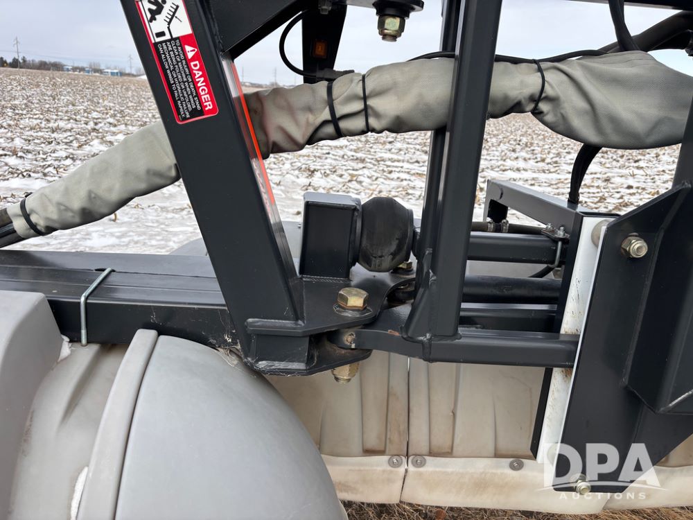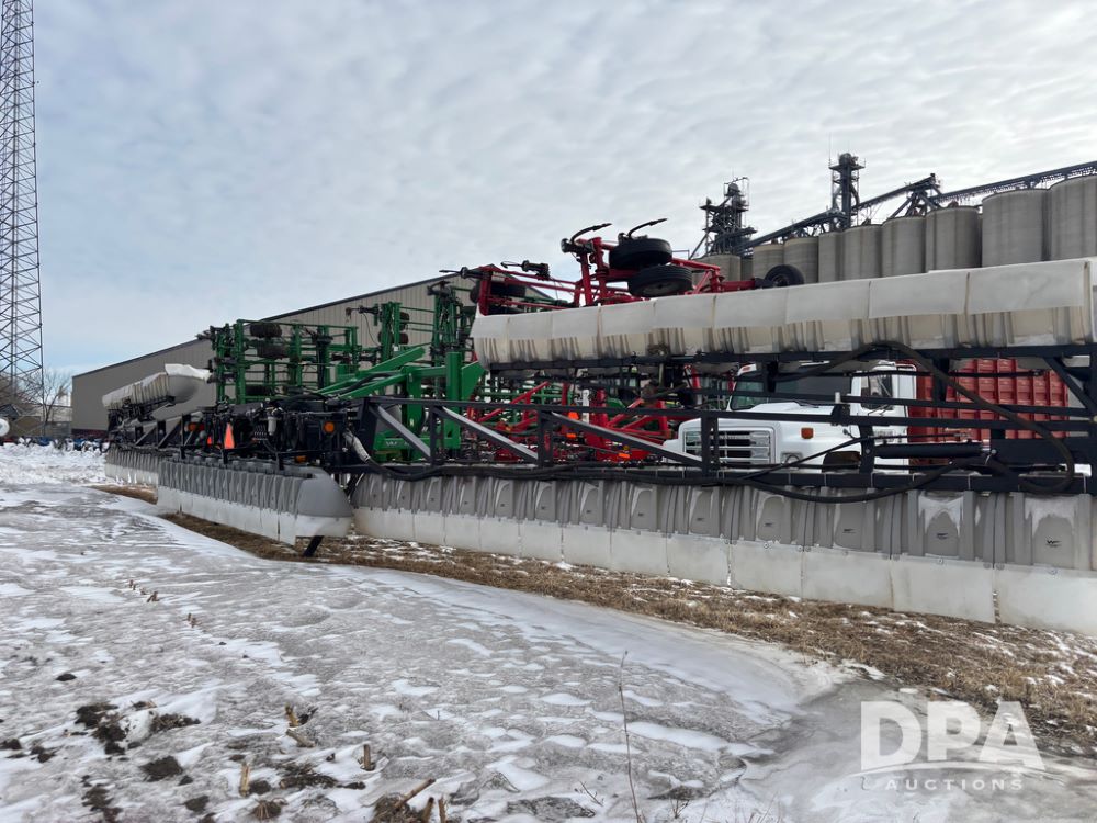 WF Hooded Sprayer (DR12953), 90' hooded band sprayer, Redball hoods, 4 way nozzle bodies, wired for Raven monitor, poly rinse tank, hydraulic fold, 3 point mount, was mounted on John Deere 8R Series tractor.