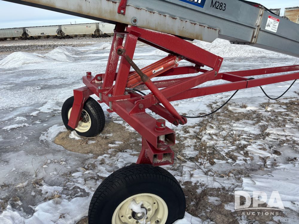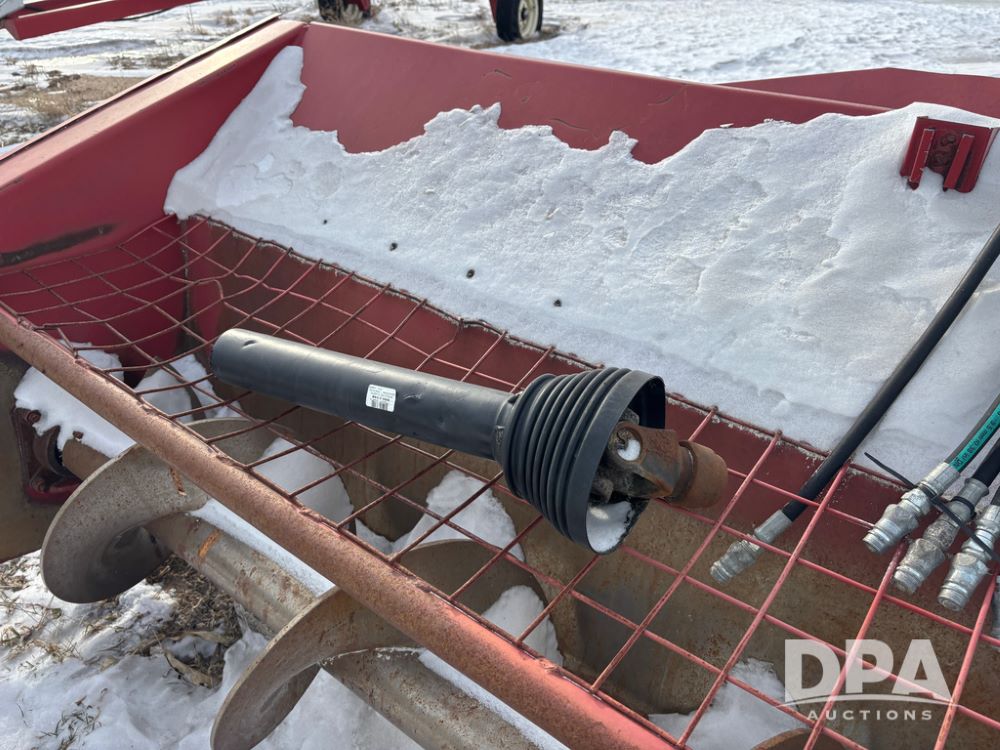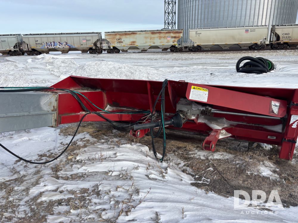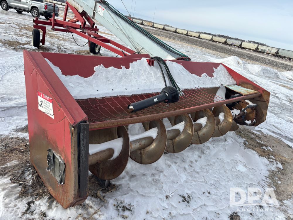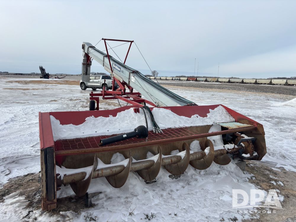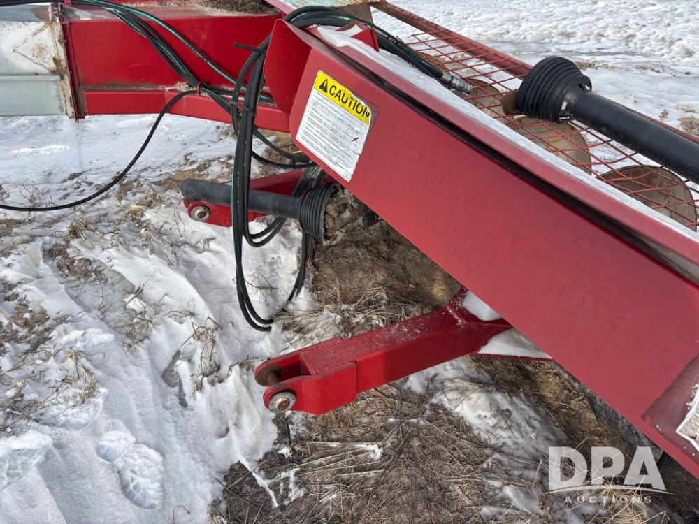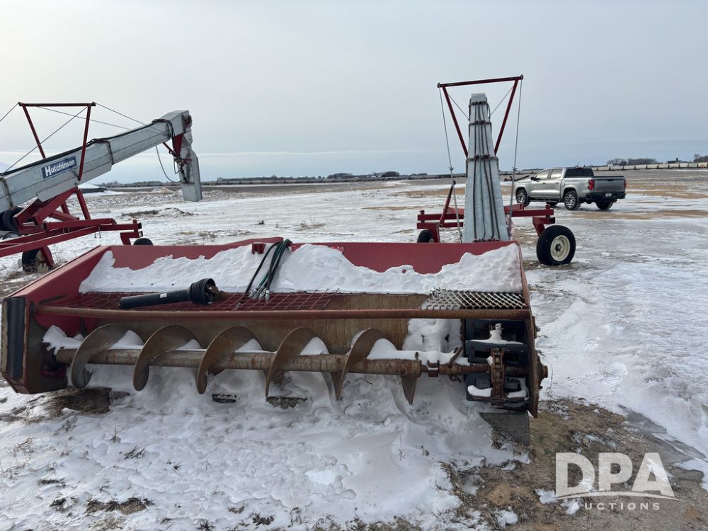 Hutchinson Pile Reclaimer (DR12962 Unit M283), model hydraulic end grain slinger, 3 point mount, hydraulic raise, PTO drive, steerable gauge wheels.